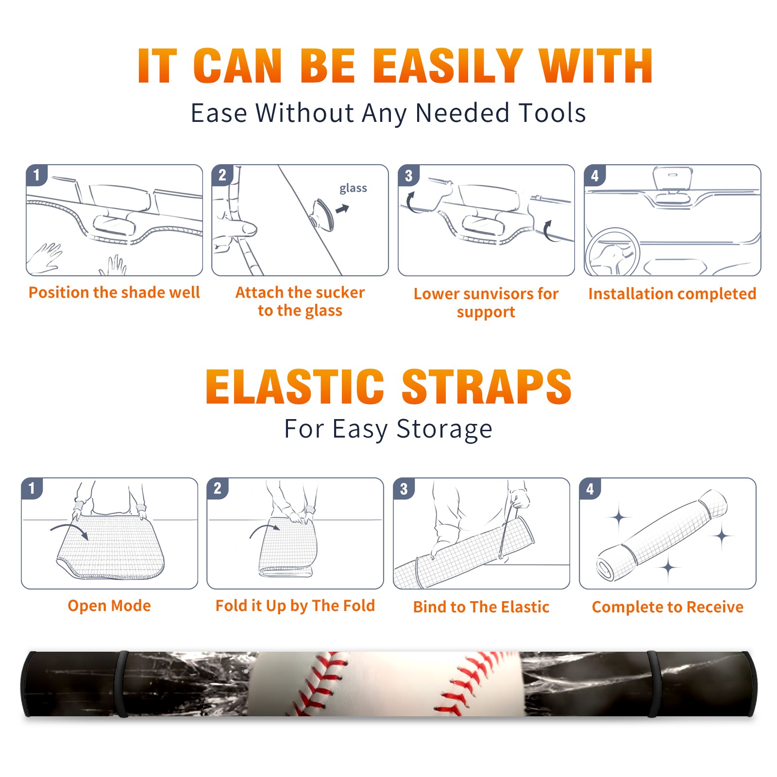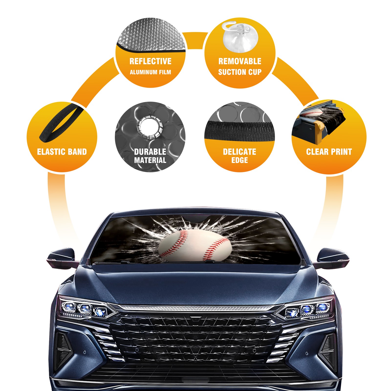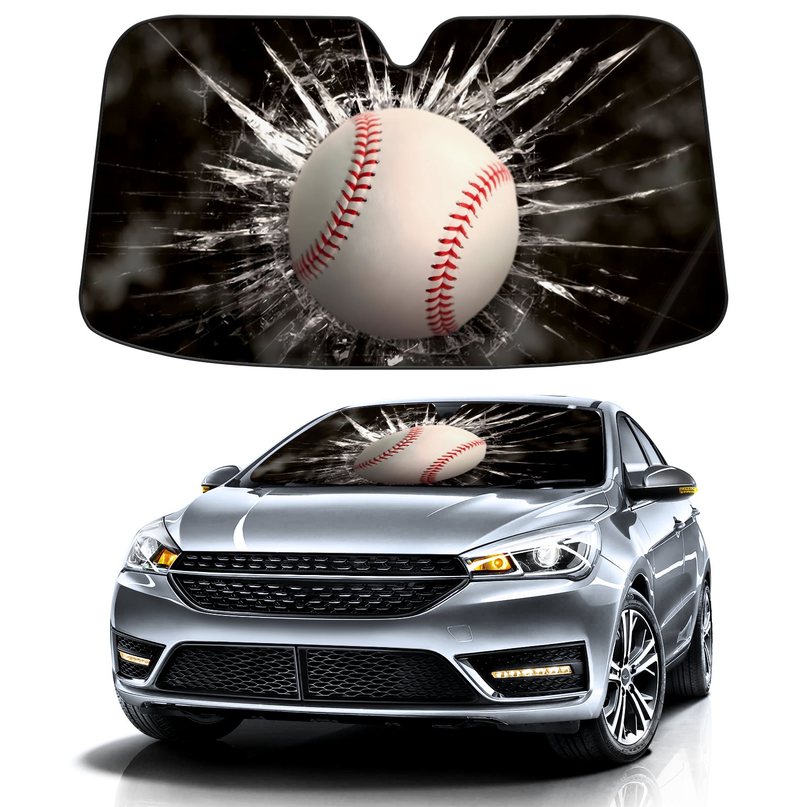 Car Windshield Sun Shade for Front Window Baseball Broken Cracks Glass Foldable Vehicle Windshield Car Sun Visor Covers Automotive Window Protector Car Camping Privacy Sun Blocker