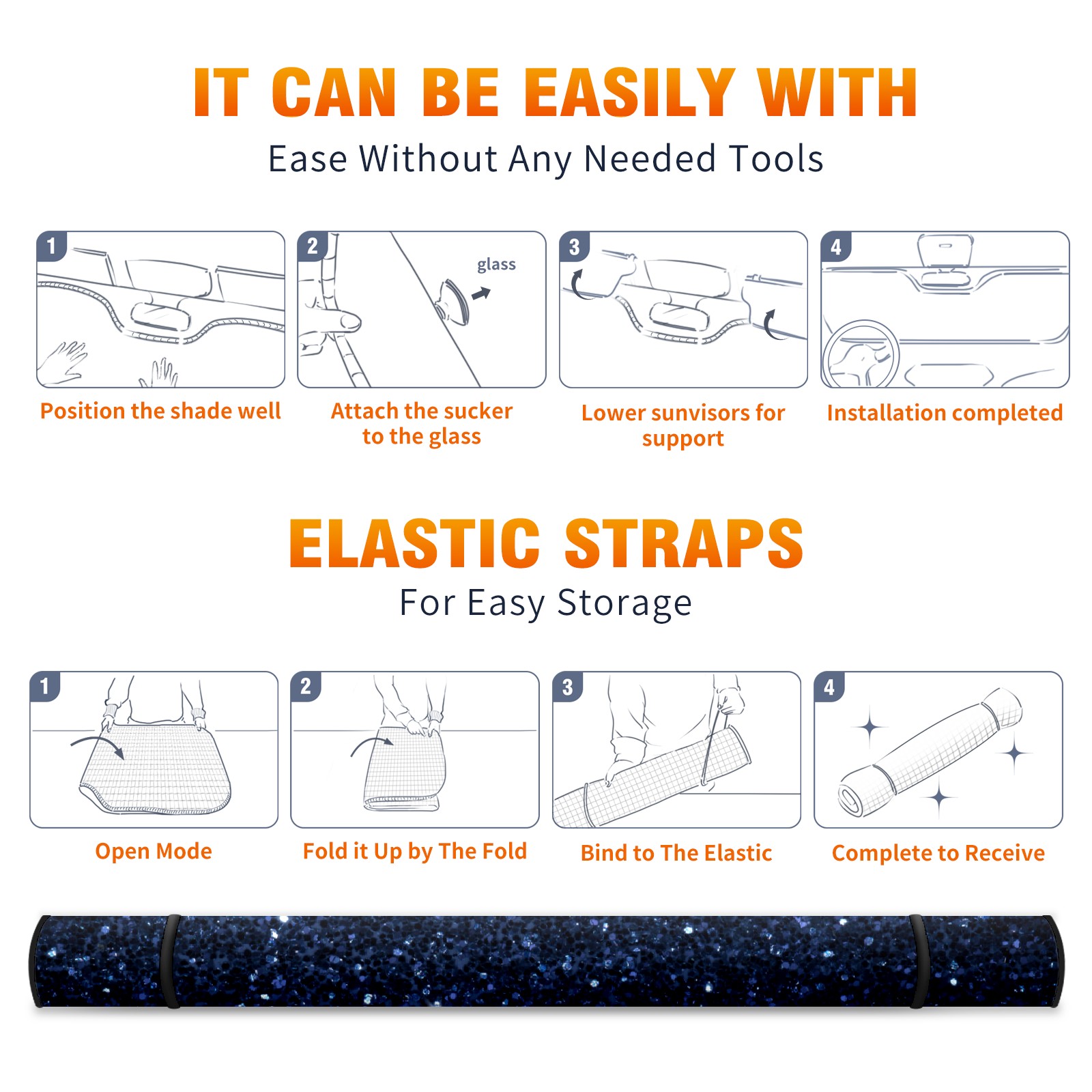 • Diameter /Size 63"L x 33.5"W Made from excellent materials which makes it sturdy and protects the car from the sun. Easy to use and pack. Makes the interior of the car cooler.You can easily stash the sunshade in the storage bag or store long term.It open and closes easy. Also the leather storage bag is durable and easy to put the umbrella back into.This windshield sunshade provides complete coverage and keeps your car interior cool under direct sun. It is easy to open and position under the windshield and around the rear-view mirror. Makes Your Car Easy To Identify, Perfect For Finding Your Car In Crowded Parking Lots And Garages.Great Choice: It Is A Great Gift For Dad, Boyfriend, Brother, Brother And Uncle, Friends, Classmates, Family And So On. Notice: Due To Difference Computer Monitors, The Color Maybe Slightly Different From Picture. As Different Measurement Methods, Measurement Data Will Float Within 2%.I Hope You Understand. If You Have Any Question About The Item Please Do Not Hesitate To Contact Us Immediately And We Will Give You A Satisfactory Reply Within 24 Hours.