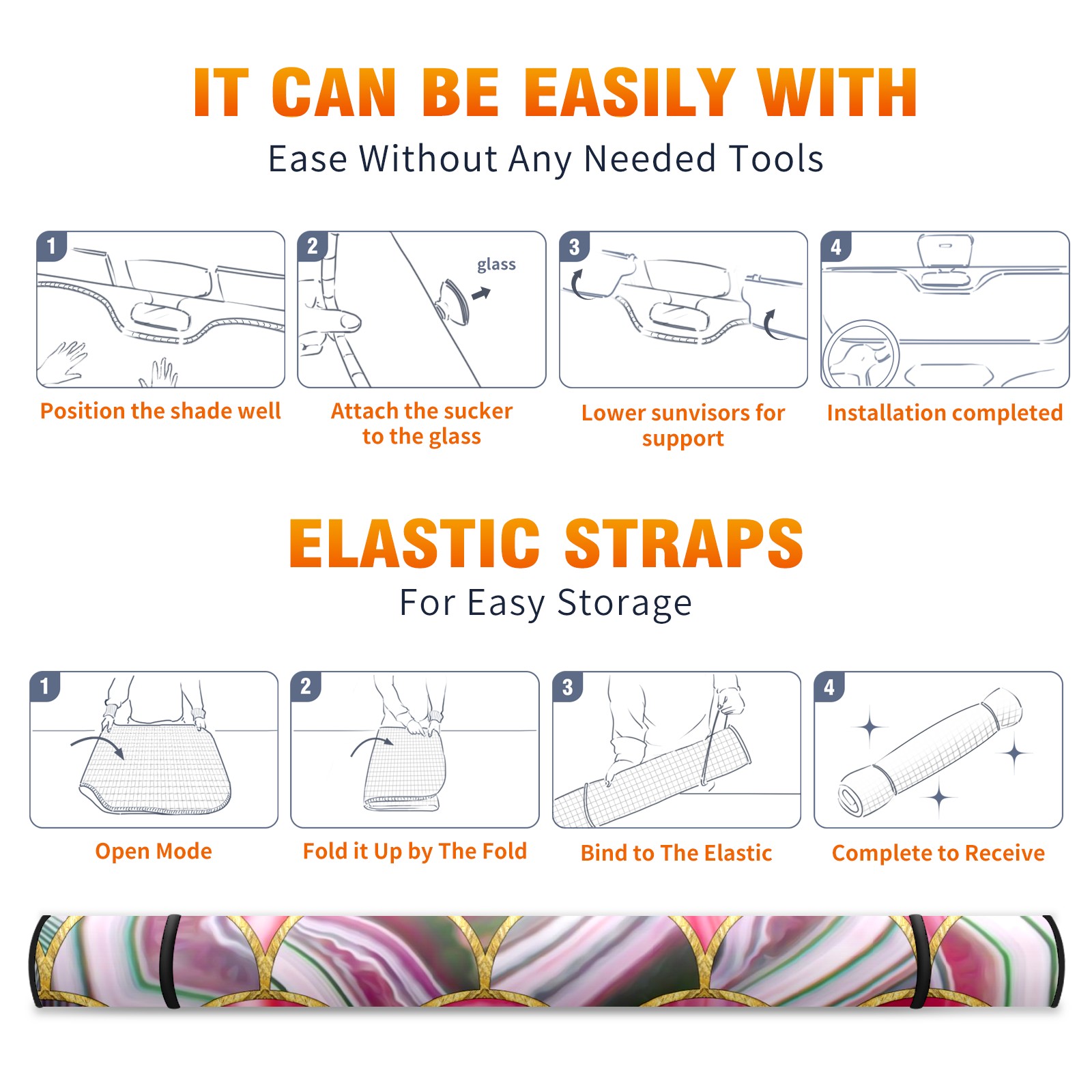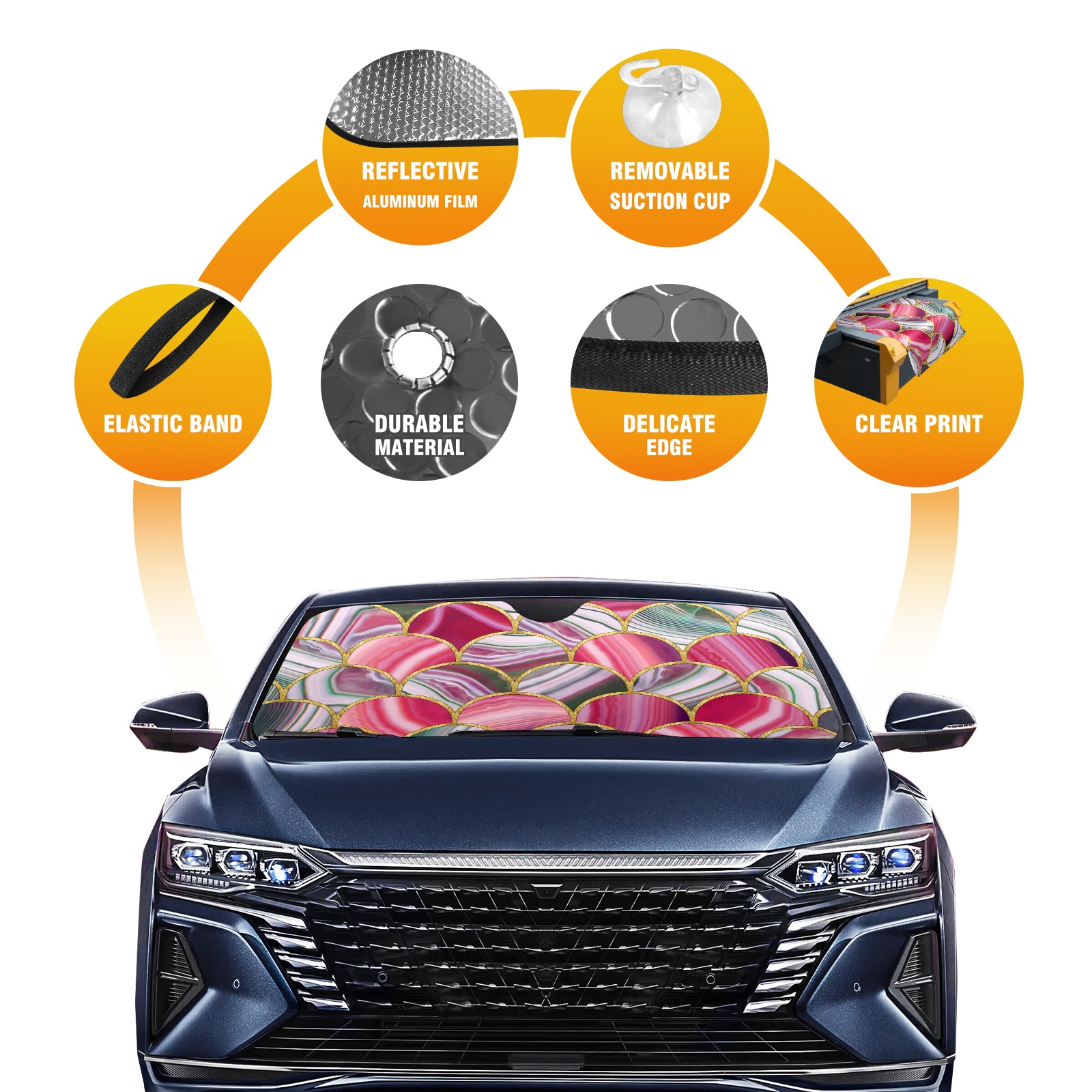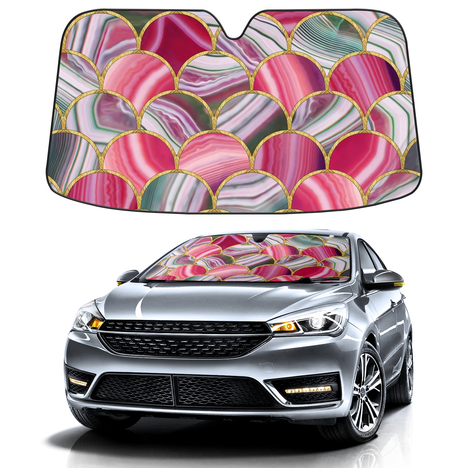 Car Windshield Sun Shade for Front Window Colorful Marble Stained Glass Foldable Vehicle Windshield Car Sun Visor Covers Automotive Window Protector Car Camping Privacy Sun Blocker