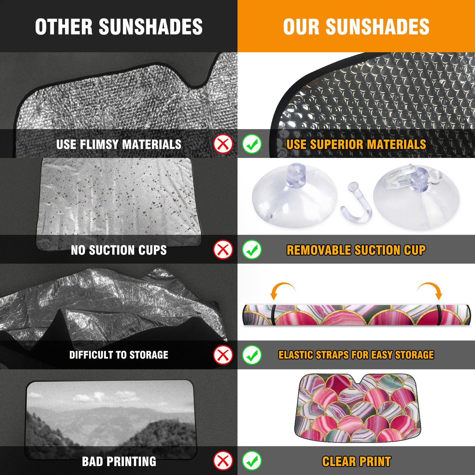 • Diameter /Size 63"L x 33.5"W Made from excellent materials which makes it sturdy and protects the car from the sun. Easy to use and pack. Makes the interior of the car cooler.You can easily stash the sunshade in the storage bag or store long term.It open and closes easy. Also the leather storage bag is durable and easy to put the umbrella back into.This windshield sunshade provides complete coverage and keeps your car interior cool under direct sun. It is easy to open and position under the windshield and around the rear-view mirror. Makes Your Car Easy To Identify, Perfect For Finding Your Car In Crowded Parking Lots And Garages.Great Choice: It Is A Great Gift For Dad, Boyfriend, Brother, Brother And Uncle, Friends, Classmates, Family And So On. Notice: Due To Difference Computer Monitors, The Color Maybe Slightly Different From Picture. As Different Measurement Methods, Measurement Data Will Float Within 2%.I Hope You Understand. If You Have Any Question About The Item Please Do Not Hesitate To Contact Us Immediately And We Will Give You A Satisfactory Reply Within 24 Hours.