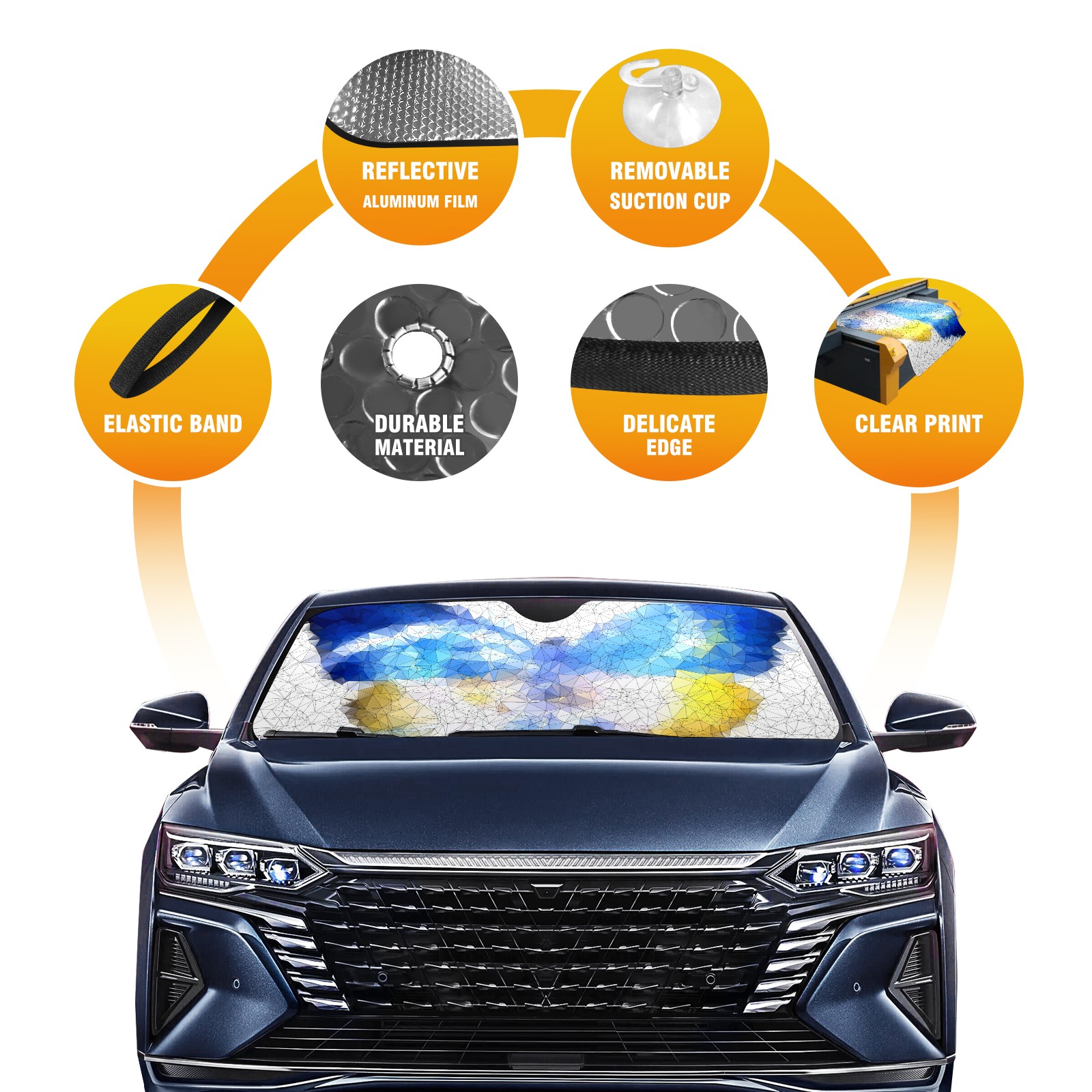 • Diameter /Size 63"L x 33.5"W Made from excellent materials which makes it sturdy and protects the car from the sun. Easy to use and pack. Makes the interior of the car cooler.You can easily stash the sunshade in the storage bag or store long term.It open and closes easy. Also the leather storage bag is durable and easy to put the umbrella back into.This windshield sunshade provides complete coverage and keeps your car interior cool under direct sun. It is easy to open and position under the windshield and around the rear-view mirror. Makes Your Car Easy To Identify, Perfect For Finding Your Car In Crowded Parking Lots And Garages.Great Choice: It Is A Great Gift For Dad, Boyfriend, Brother, Brother And Uncle, Friends, Classmates, Family And So On. Notice: Due To Difference Computer Monitors, The Color Maybe Slightly Different From Picture. As Different Measurement Methods, Measurement Data Will Float Within 2%.I Hope You Understand. If You Have Any Question About The Item Please Do Not Hesitate To Contact Us Immediately And We Will Give You A Satisfactory Reply Within 24 Hours.
