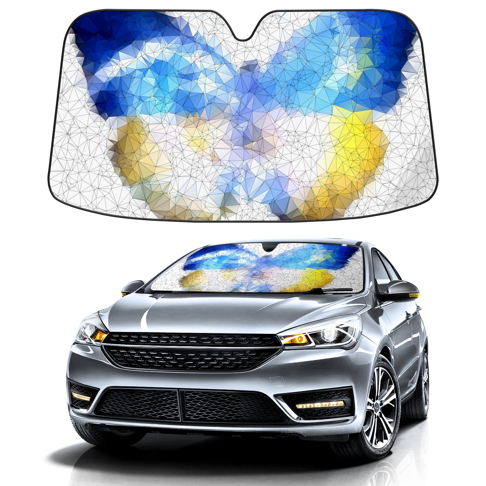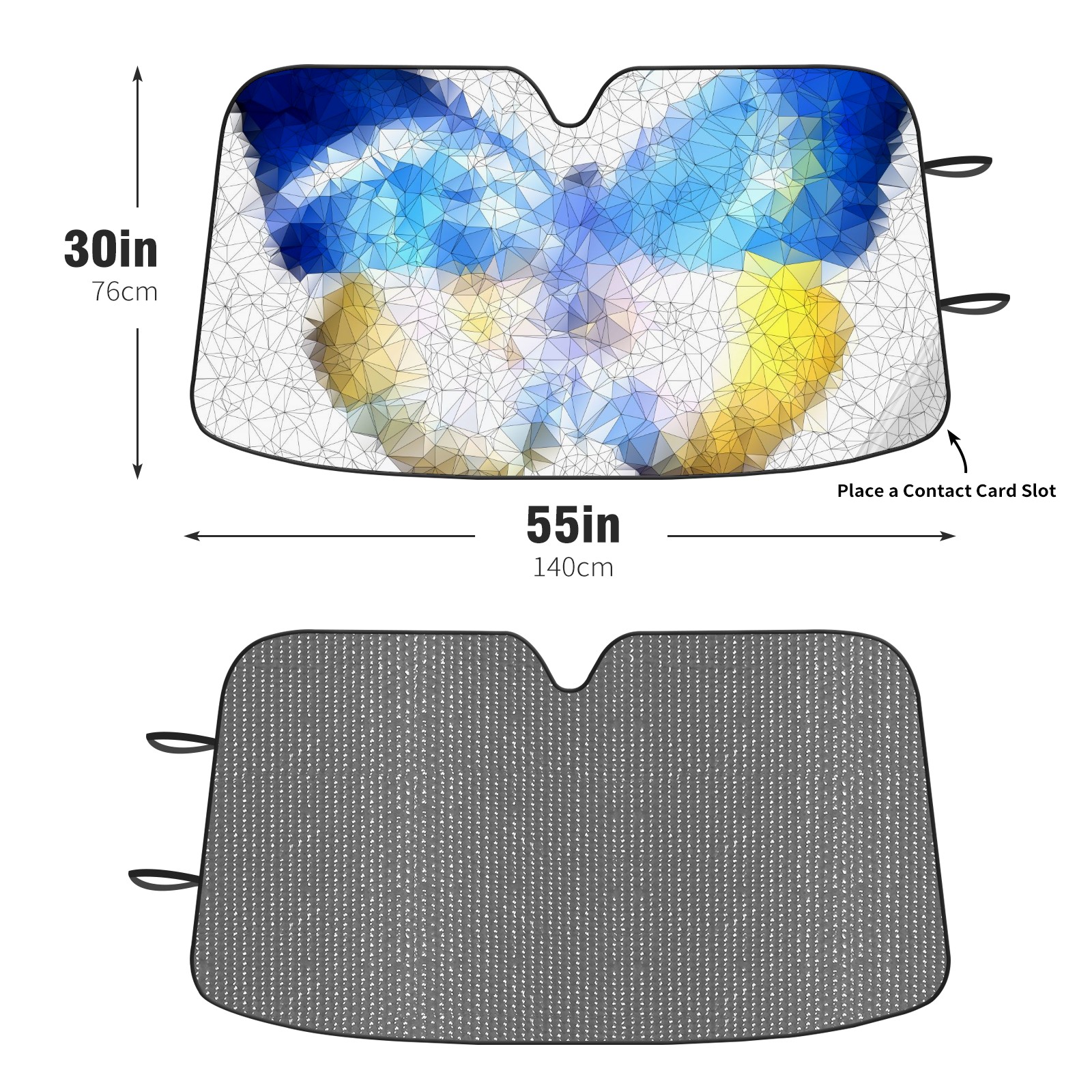 Diameter /Size 63"L x 33.5"W Made from excellent materials which makes it sturdy and protects the car from the sun. Easy to use and pack. Makes the interior of the car cooler.You can easily stash the sunshade in the storage bag or store long term.It open and closes easy. Also the leather storage bag is durable and easy to put the umbrella back into.This windshield sunshade provides complete coverage and keeps your car interior cool under direct sun. It is easy to open and position under the windshield and around the rear-view mirror. Makes Your Car Easy To Identify, Perfect For Finding Your Car In Crowded Parking Lots And Garages.Great Choice: It Is A Great Gift For Dad, Boyfriend, Brother, Brother And Uncle, Friends, Classmates, Family And So On. Notice: Due To Difference Computer Monitors, The Color Maybe Slightly Different From Picture. As Different Measurement Methods, Measurement Data Will Float Within 2%.I Hope You Understand. If You Have Any Question About The Item Please Do Not Hesitate To Contact Us Immediately And We Will Give You A Satisfactory Reply Within 24 Hours.