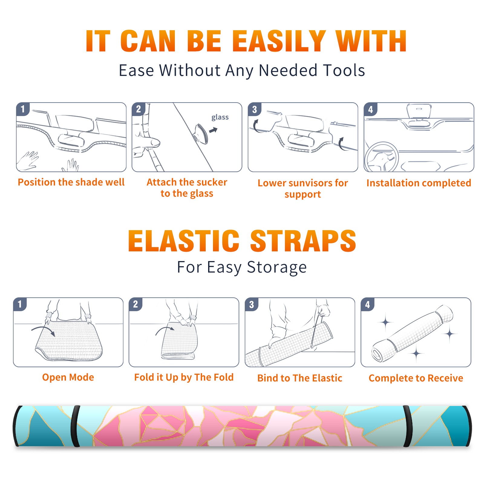 • Diameter /Size 63"L x 33.5"W Made from excellent materials which makes it sturdy and protects the car from the sun. Easy to use and pack. Makes the interior of the car cooler.You can easily stash the sunshade in the storage bag or store long term.It open and closes easy. Also the leather storage bag is durable and easy to put the umbrella back into.This windshield sunshade provides complete coverage and keeps your car interior cool under direct sun. It is easy to open and position under the windshield and around the rear-view mirror. Makes Your Car Easy To Identify, Perfect For Finding Your Car In Crowded Parking Lots And Garages.Great Choice: It Is A Great Gift For Dad, Boyfriend, Brother, Brother And Uncle, Friends, Classmates, Family And So On. Notice: Due To Difference Computer Monitors, The Color Maybe Slightly Different From Picture. As Different Measurement Methods, Measurement Data Will Float Within 2%.I Hope You Understand. If You Have Any Question About The Item Please Do Not Hesitate To Contact Us Immediately And We Will Give You A Satisfactory Reply Within 24 Hours.