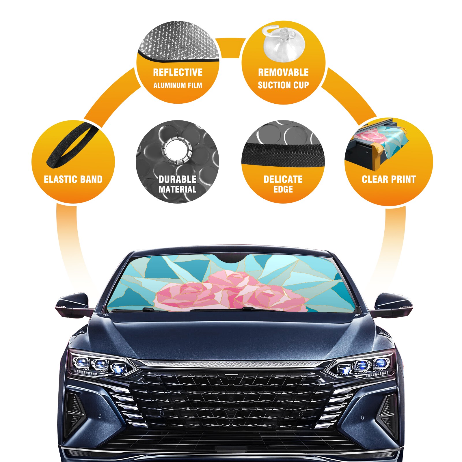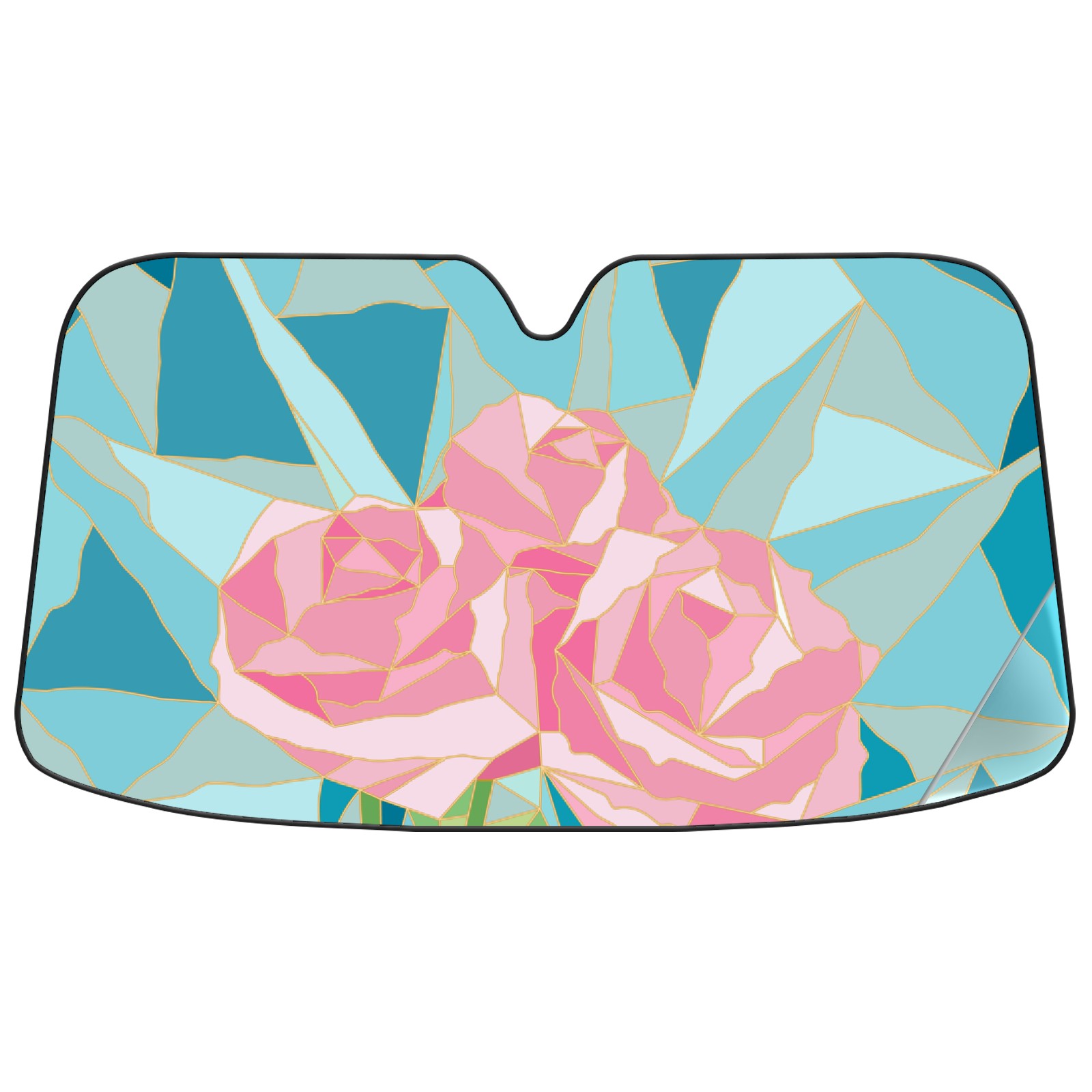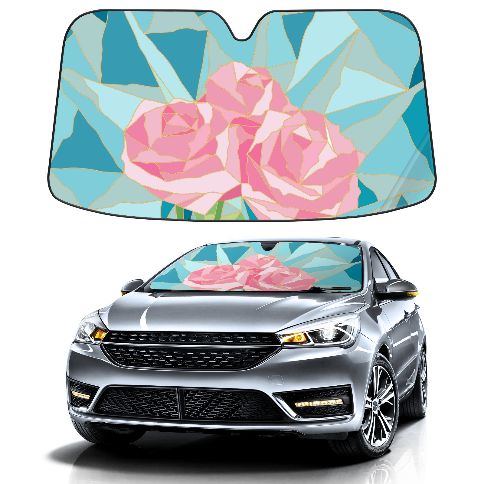 Car Windshield Sun Shade for Front Window Rose Stained Glass Foldable Vehicle Windshield Car Sun Visor Covers Automotive Window Protector Car Camping Privacy Sun Blocker