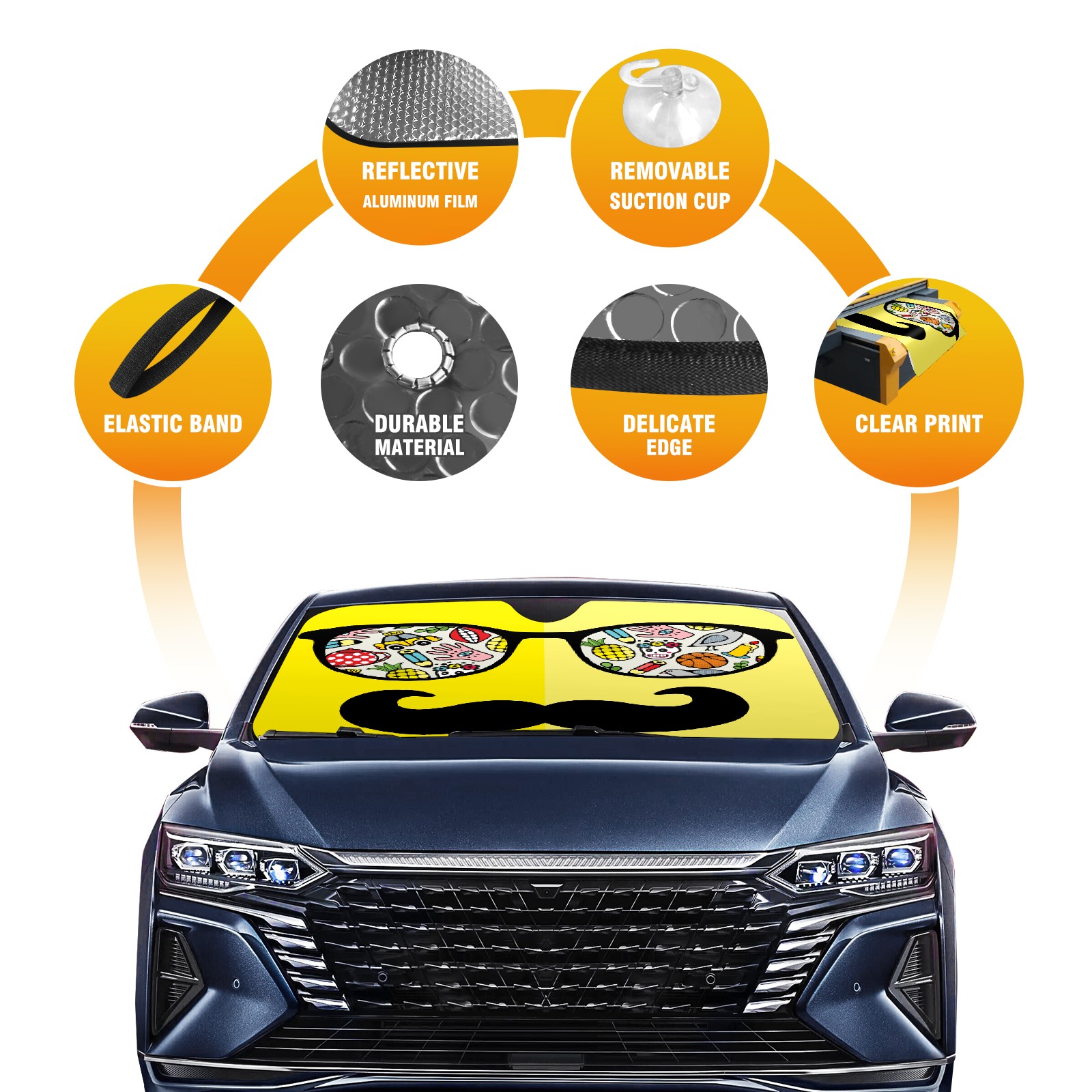 Car Windshield Sun Shade for Front Window Cartoon Sunglasses Beard Foldable Vehicle Windshield Car Sun Visor Covers Automotive Window Protector Car Camping Privacy Sun Blocker