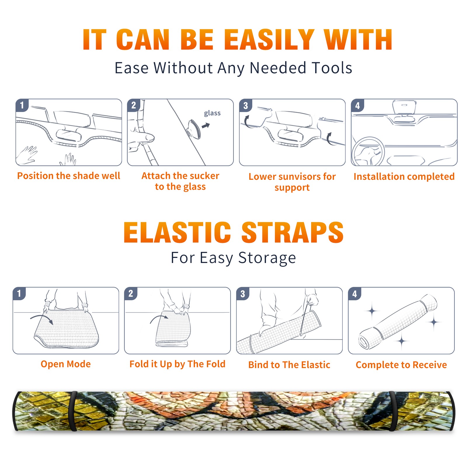 Car Windshield Sun Shade for Front Window Stained Glass (49) Foldable Vehicle Windshield Car Sun Visor Covers Automotive Window Protector Car Camping Privacy Sun Blocker