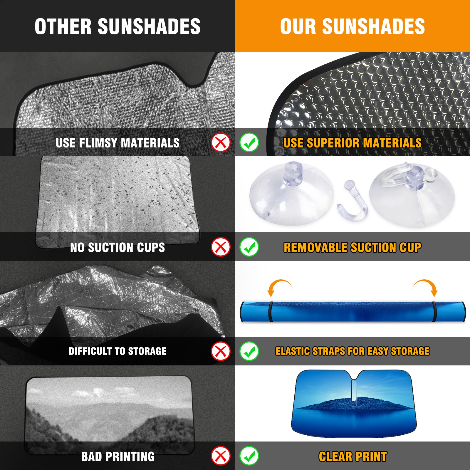 • Diameter /Size 63"L x 33.5"W Made from excellent materials which makes it sturdy and protects the car from the sun. Easy to use and pack. Makes the interior of the car cooler.You can easily stash the sunshade in the storage bag or store long term.It open and closes easy. Also the leather storage bag is durable and easy to put the umbrella back into.This windshield sunshade provides complete coverage and keeps your car interior cool under direct sun. It is easy to open and position under the windshield and around the rear-view mirror. Makes Your Car Easy To Identify, Perfect For Finding Your Car In Crowded Parking Lots And Garages.Great Choice: It Is A Great Gift For Dad, Boyfriend, Brother, Brother And Uncle, Friends, Classmates, Family And So On. Notice: Due To Difference Computer Monitors, The Color Maybe Slightly Different From Picture. As Different Measurement Methods, Measurement Data Will Float Within 2%.I Hope You Understand. If You Have Any Question About The Item Please Do Not Hesitate To Contact Us Immediately And We Will Give You A Satisfactory Reply Within 24 Hours.