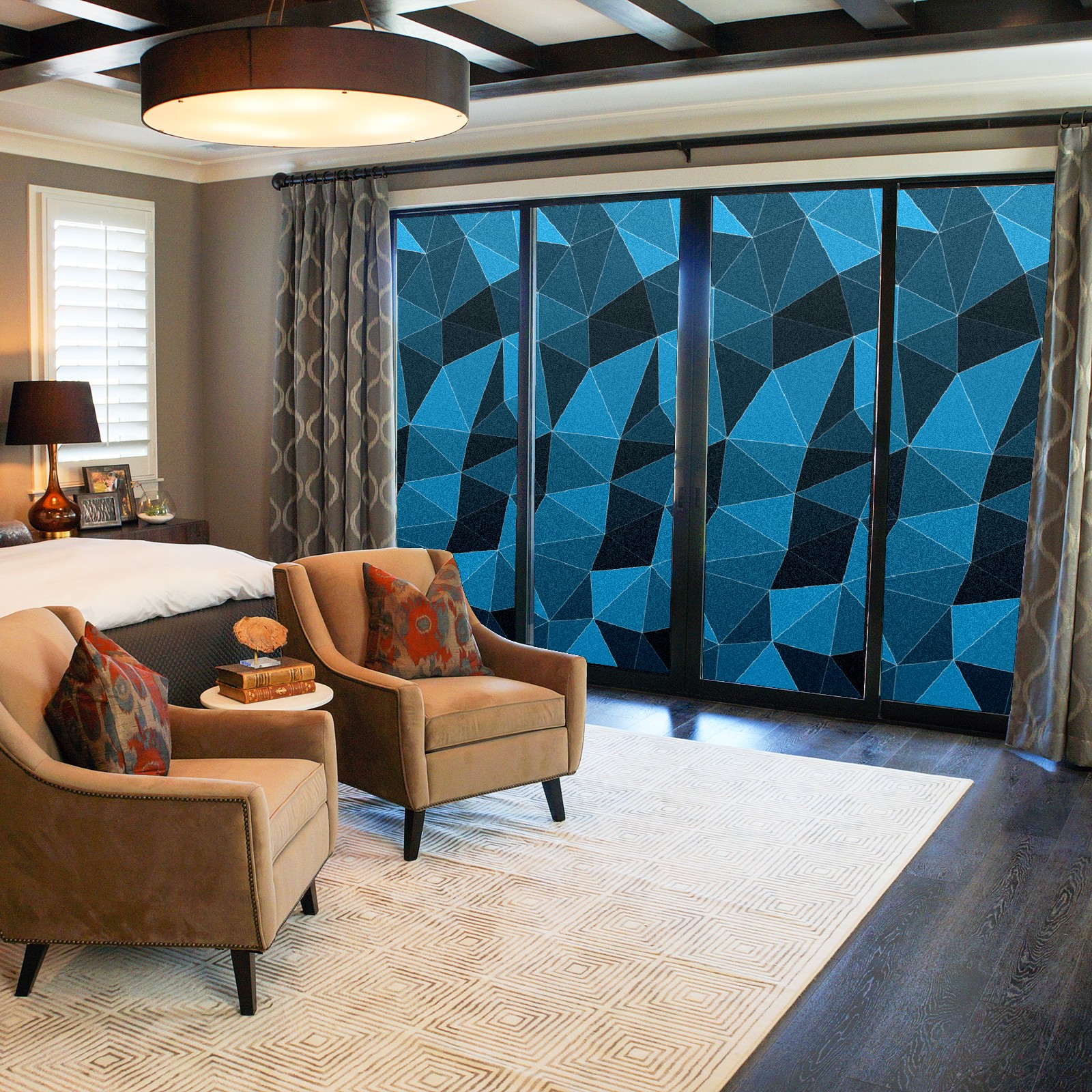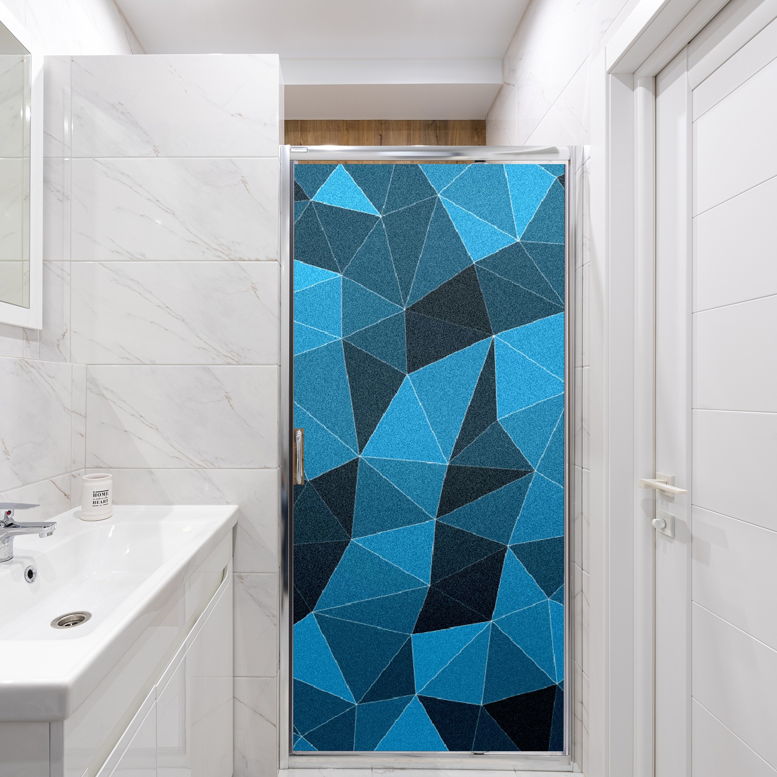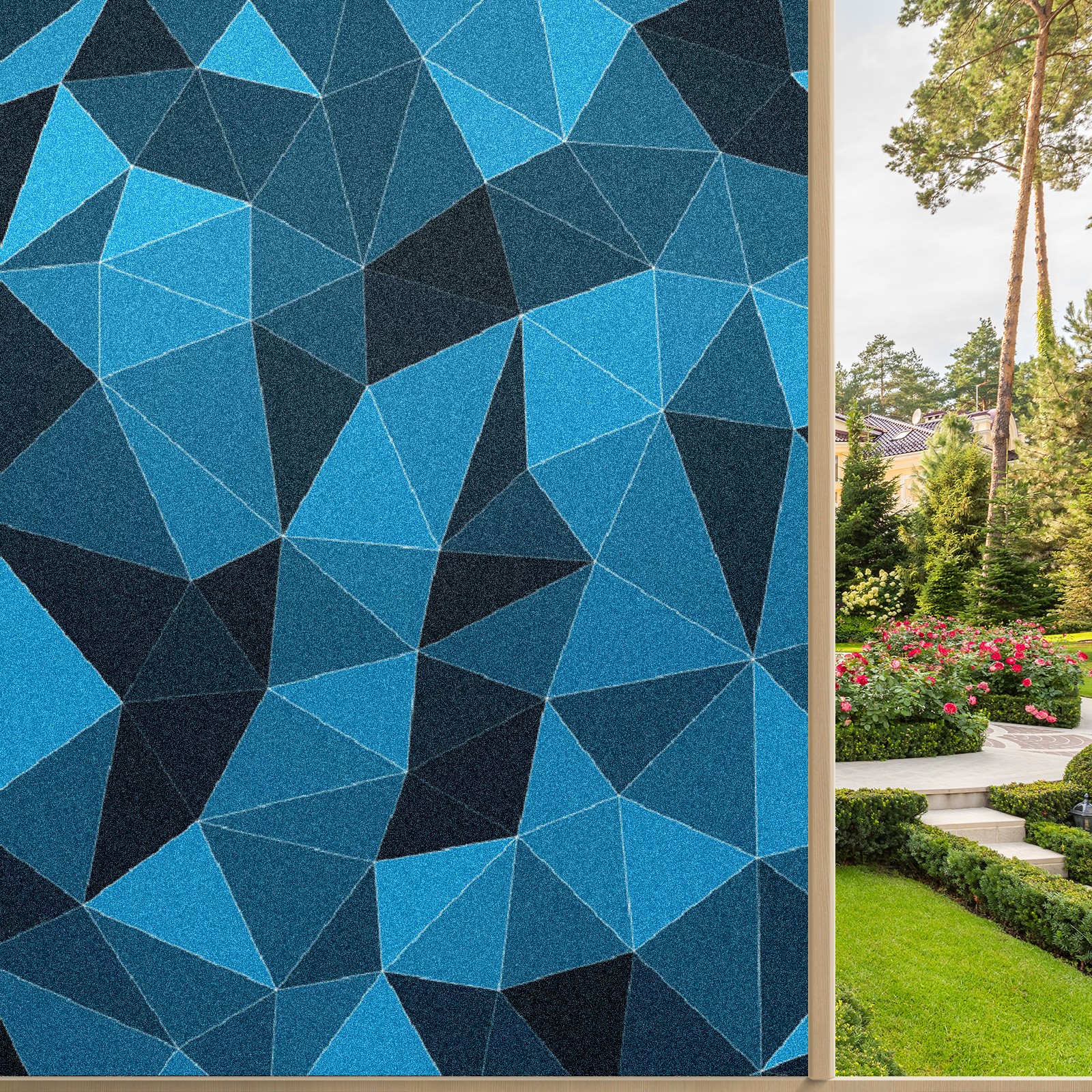 Static Cling Decorative Window Film Frosted Privacy Film Window Clings for Glass Windows No Glue Window Sticker for Bathroom Bedroom Office Blue Geometric Stained Glass