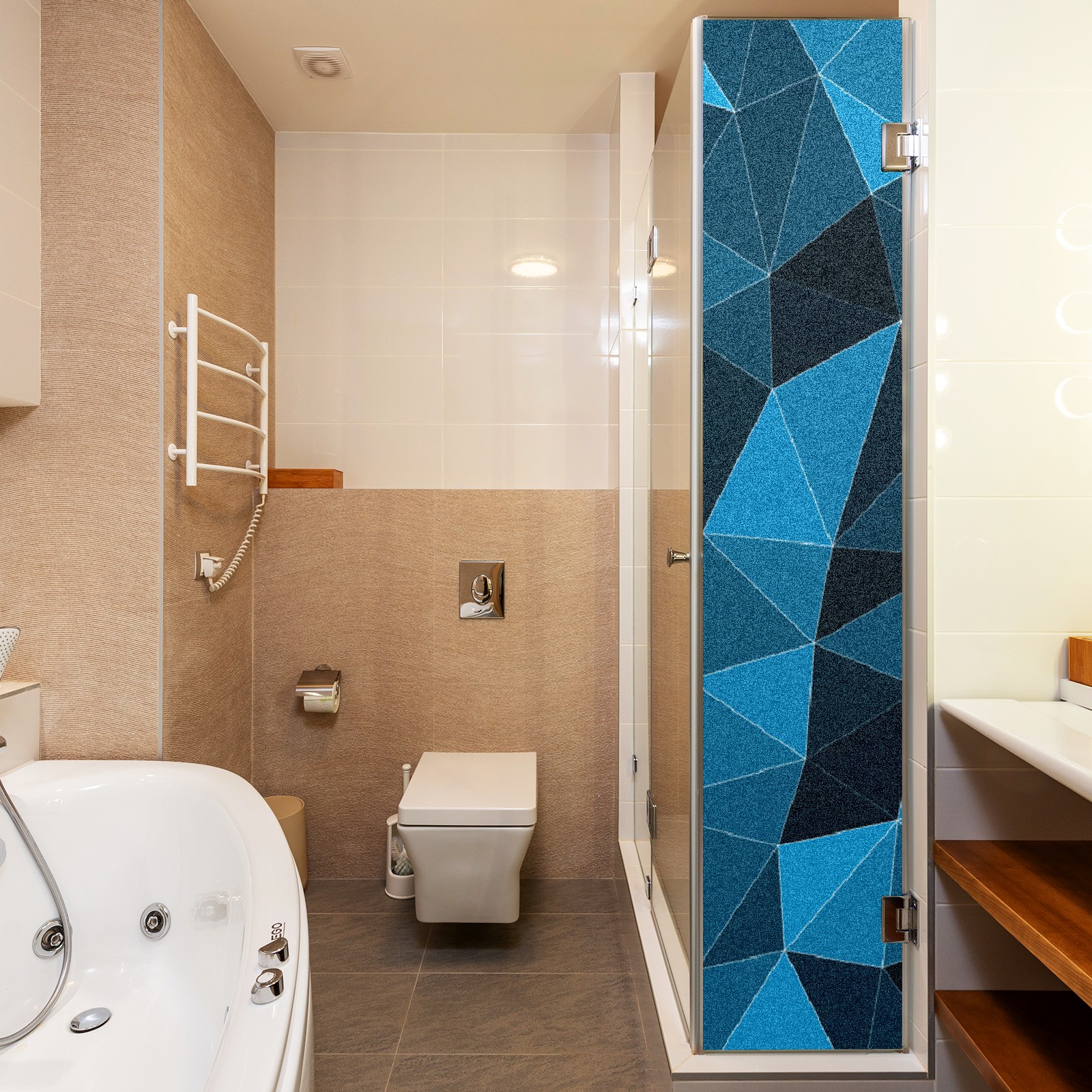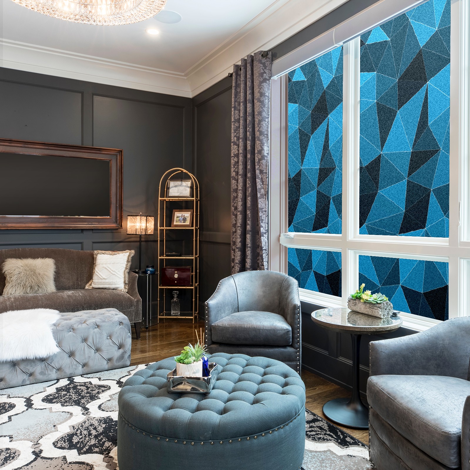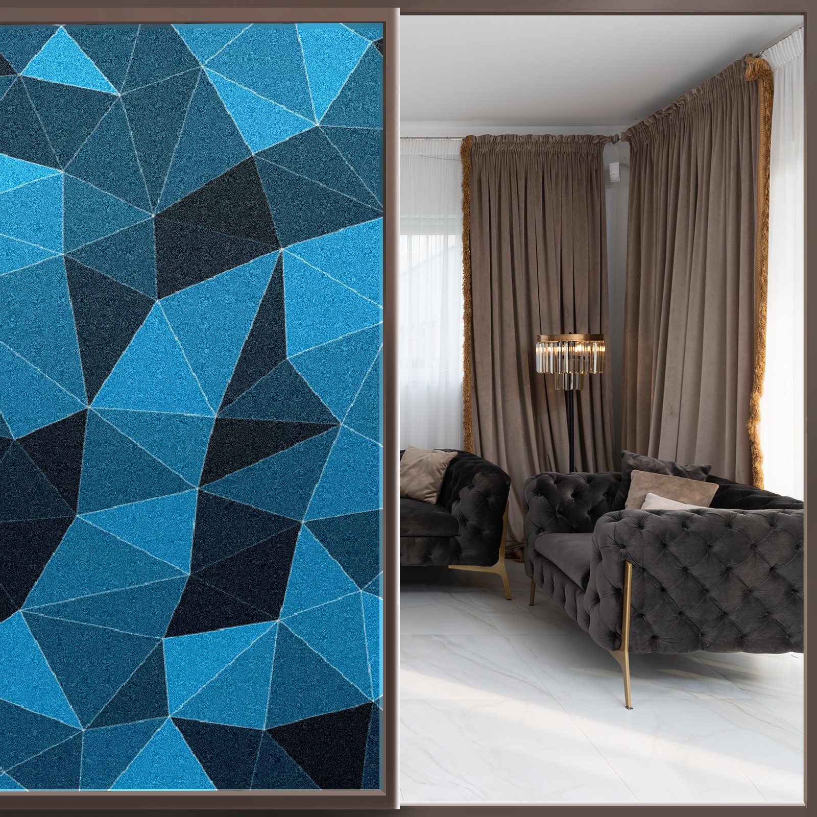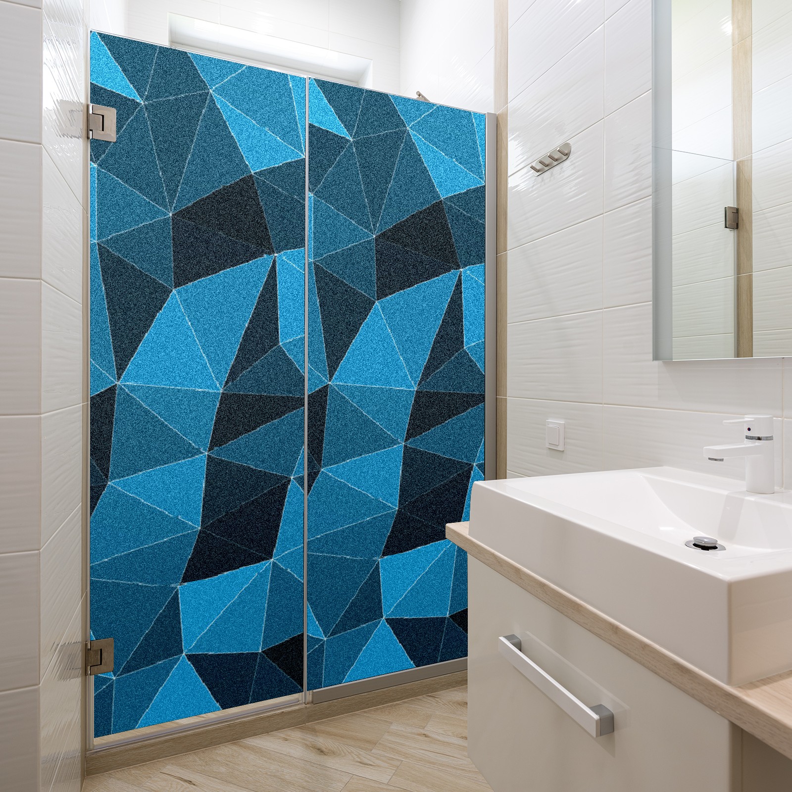 Static Cling Decorative Window Film Frosted Privacy Film Window Clings for Glass Windows No Glue Window Sticker for Bathroom Bedroom Office Blue Geometric Stained Glass