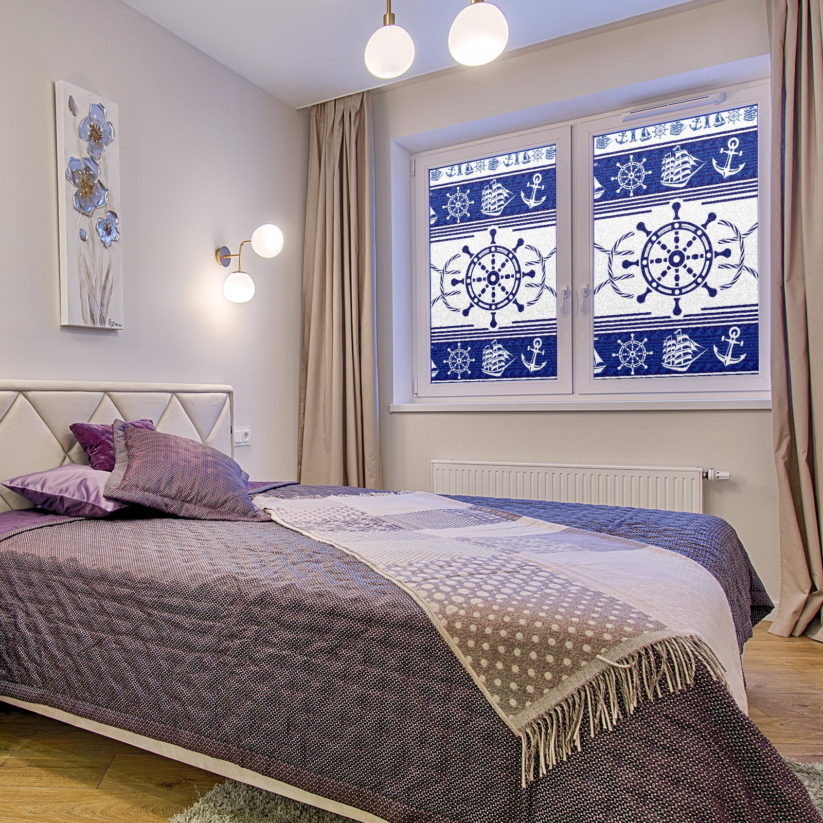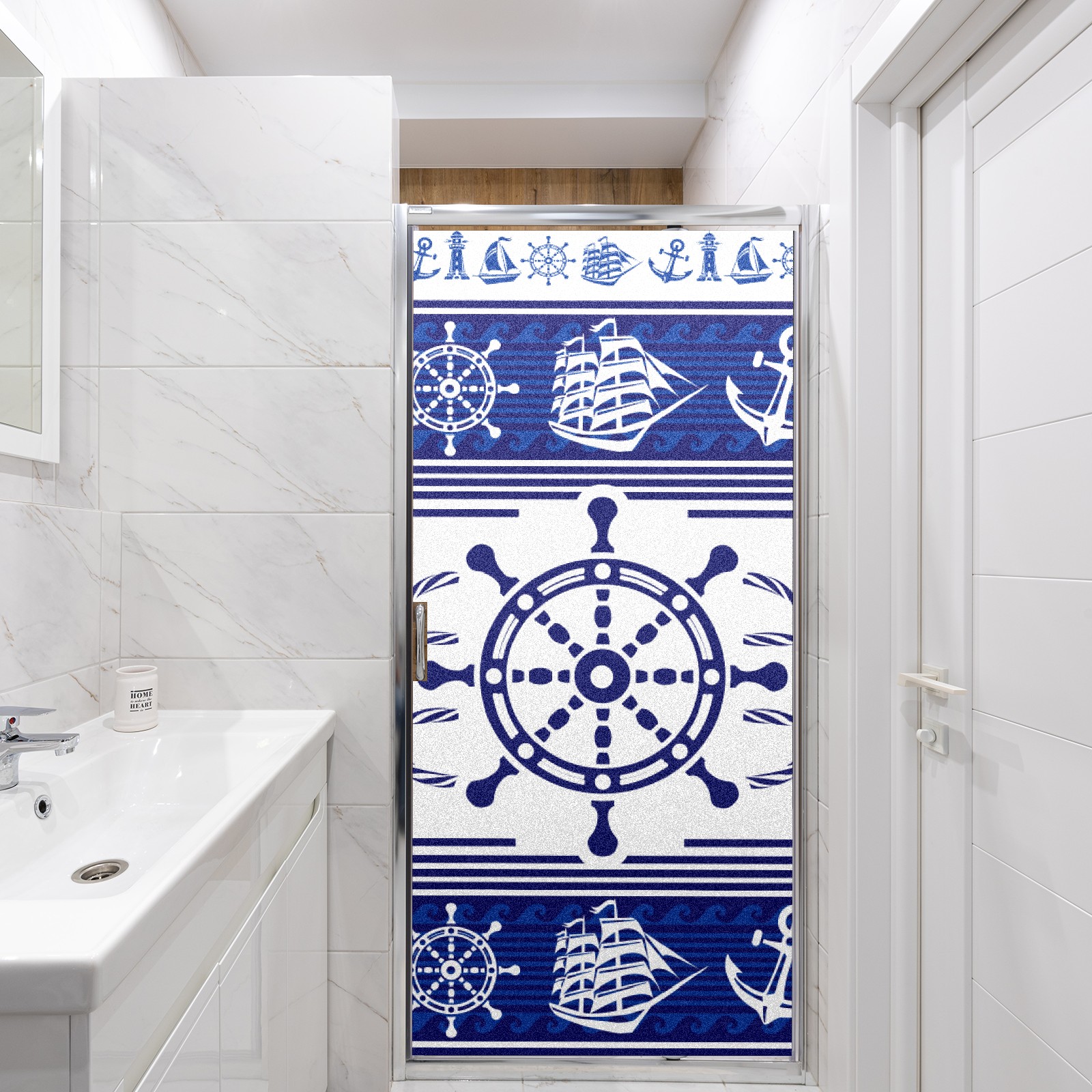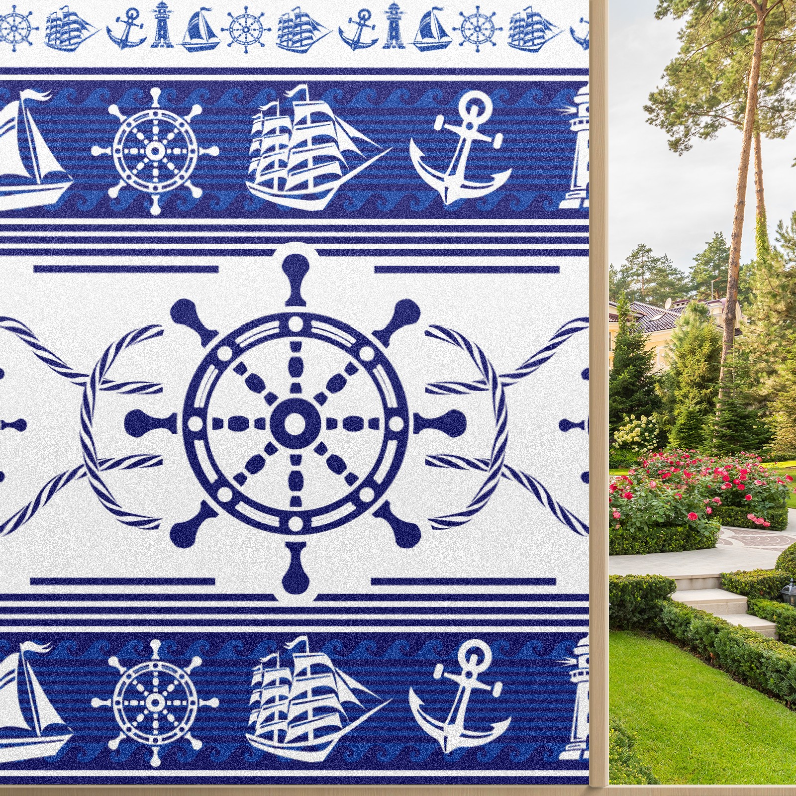 Static Cling Decorative Window Film Frosted Privacy Film Window Clings for Glass Windows No Glue Window Sticker for Bathroom Bedroom Office Blue Nautical Rudder Anchor Lighthouse Boat Ethnic