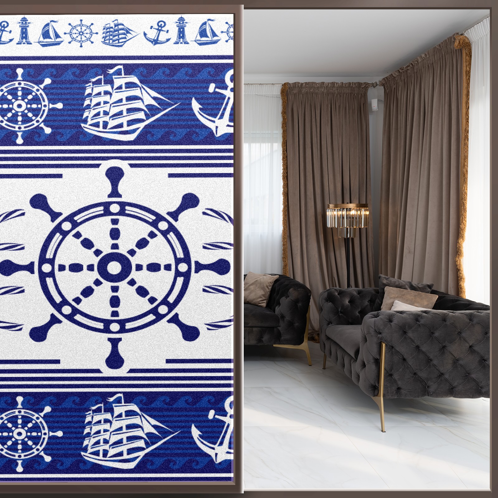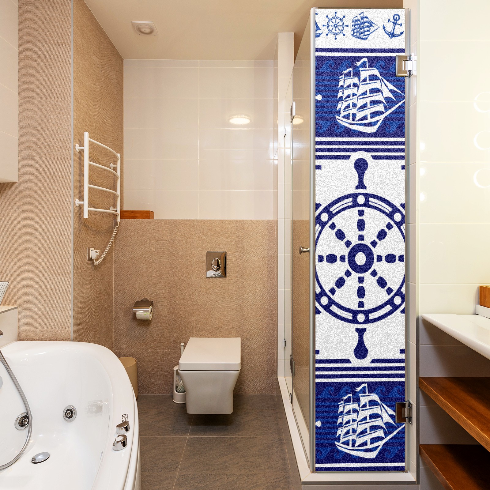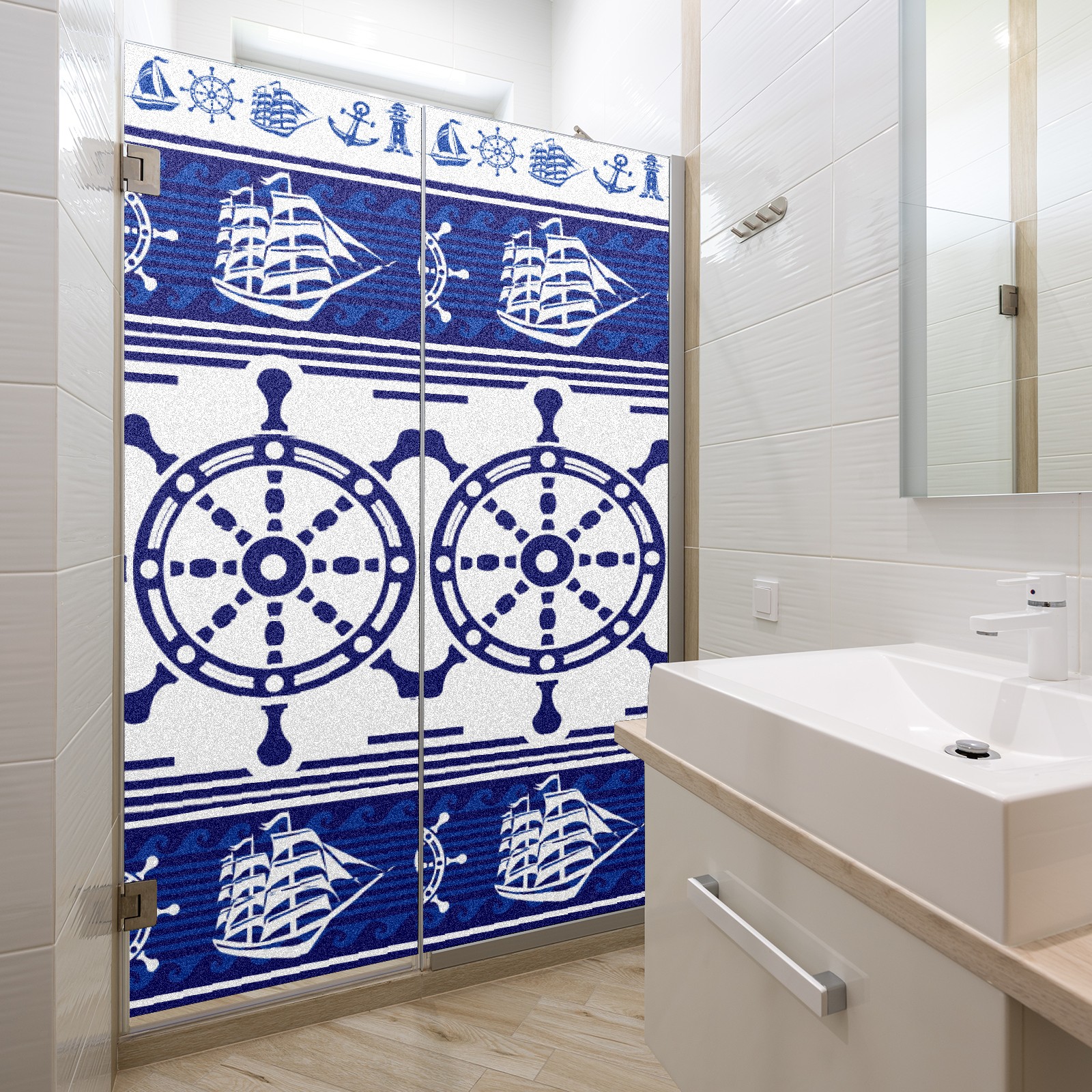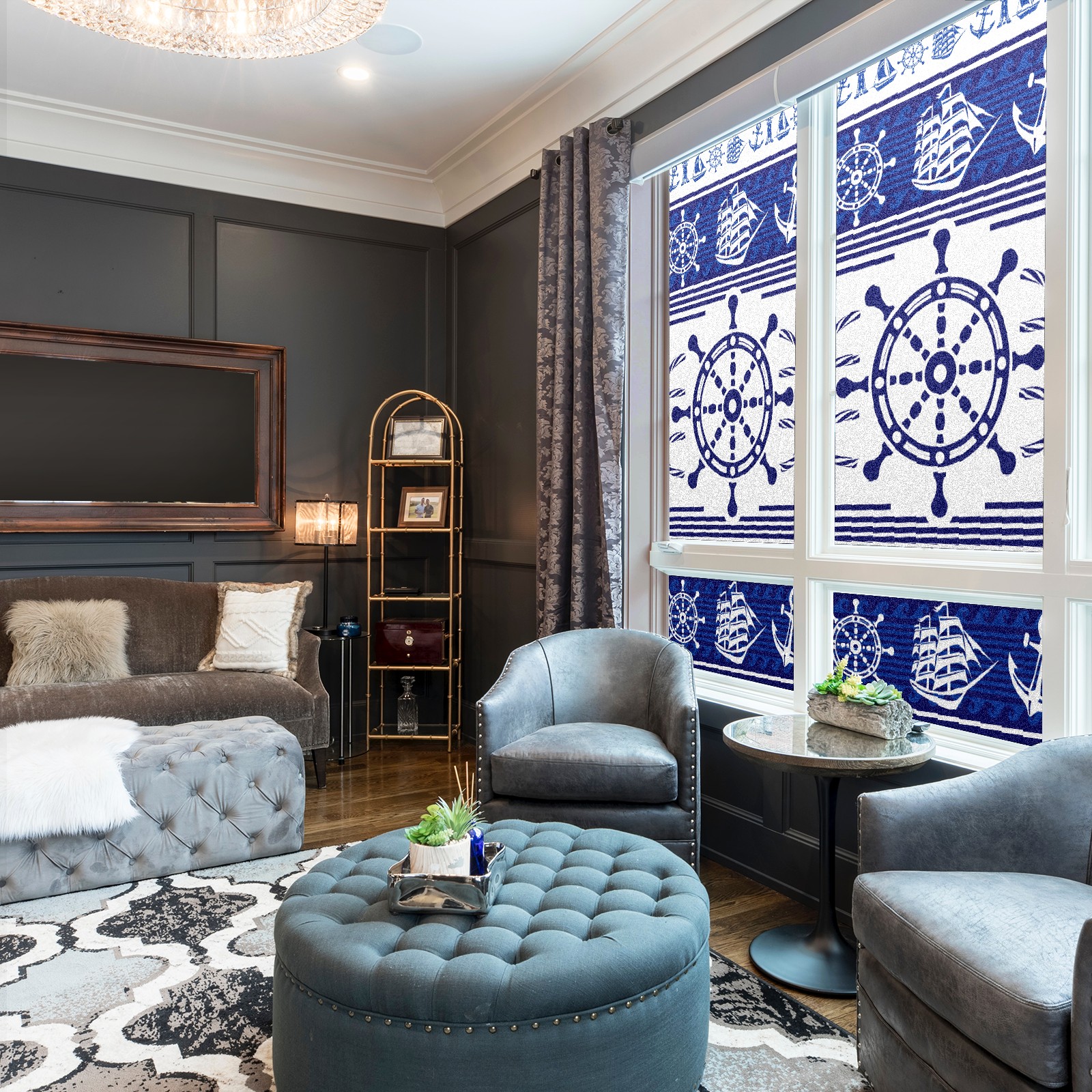 Static Cling Decorative Window Film Frosted Privacy Film Window Clings for Glass Windows No Glue Window Sticker for Bathroom Bedroom Office Blue Nautical Rudder Anchor Lighthouse Boat Ethnic