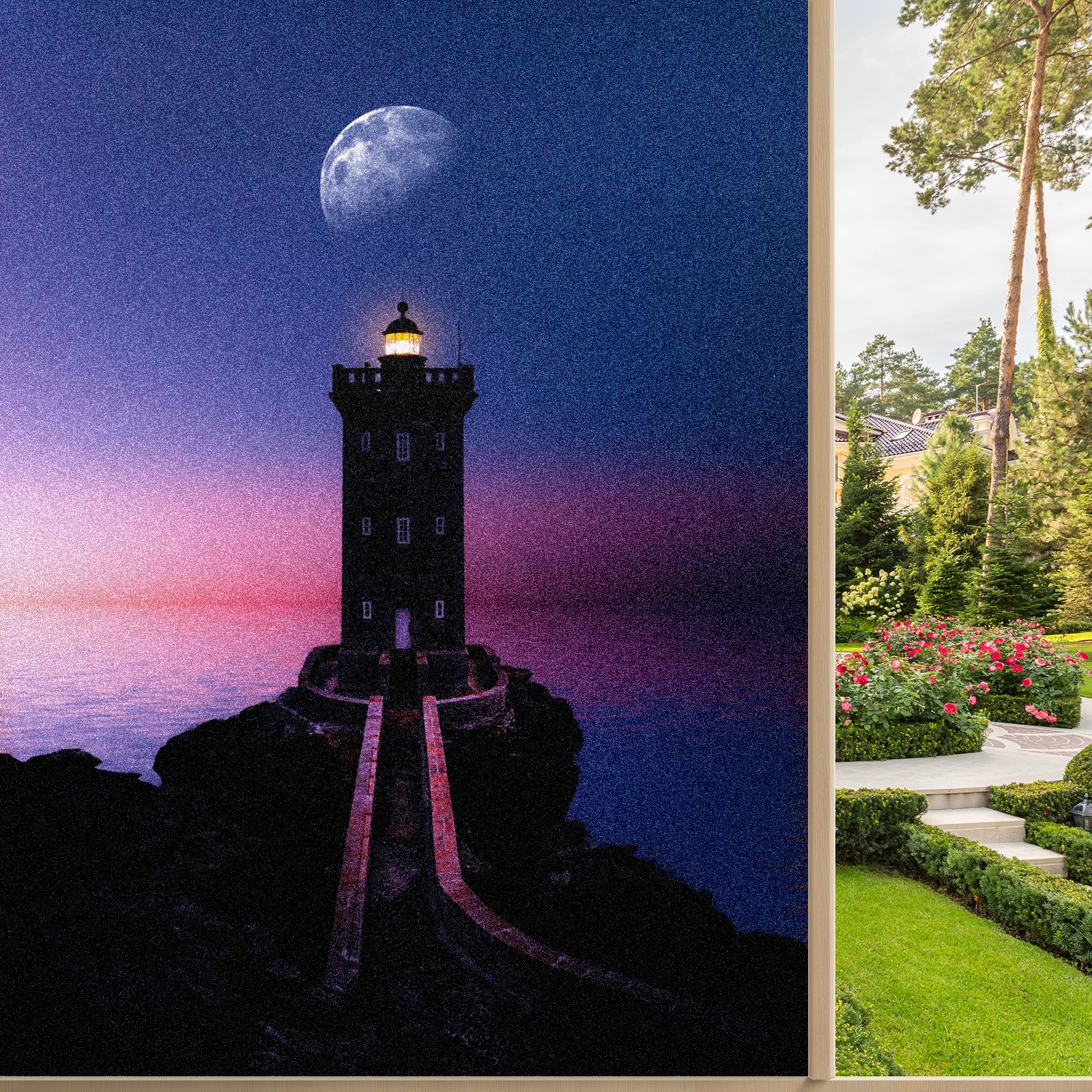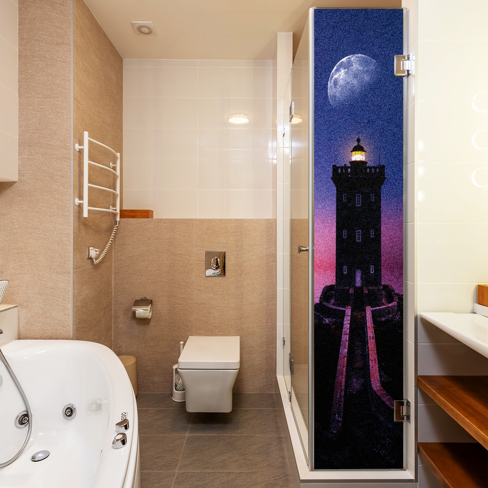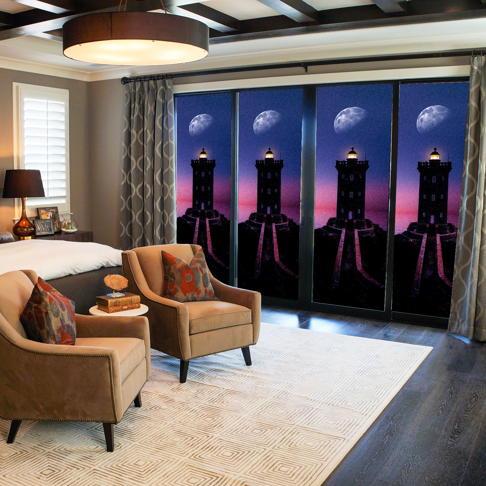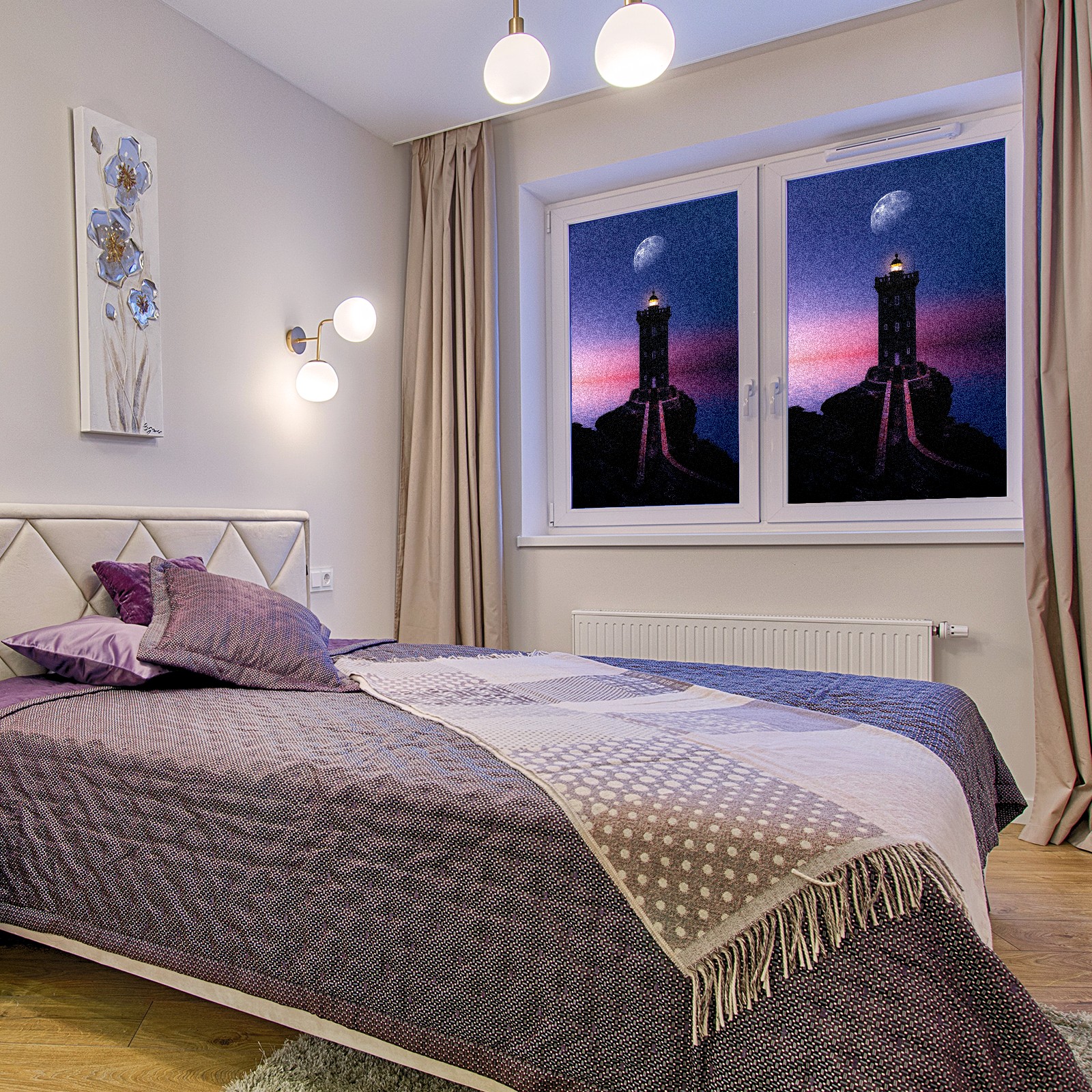 Static Cling Decorative Window Film Frosted Privacy Film Window Clings for Glass Windows No Glue Window Sticker for Bathroom Bedroom Office Lighthouse Moon