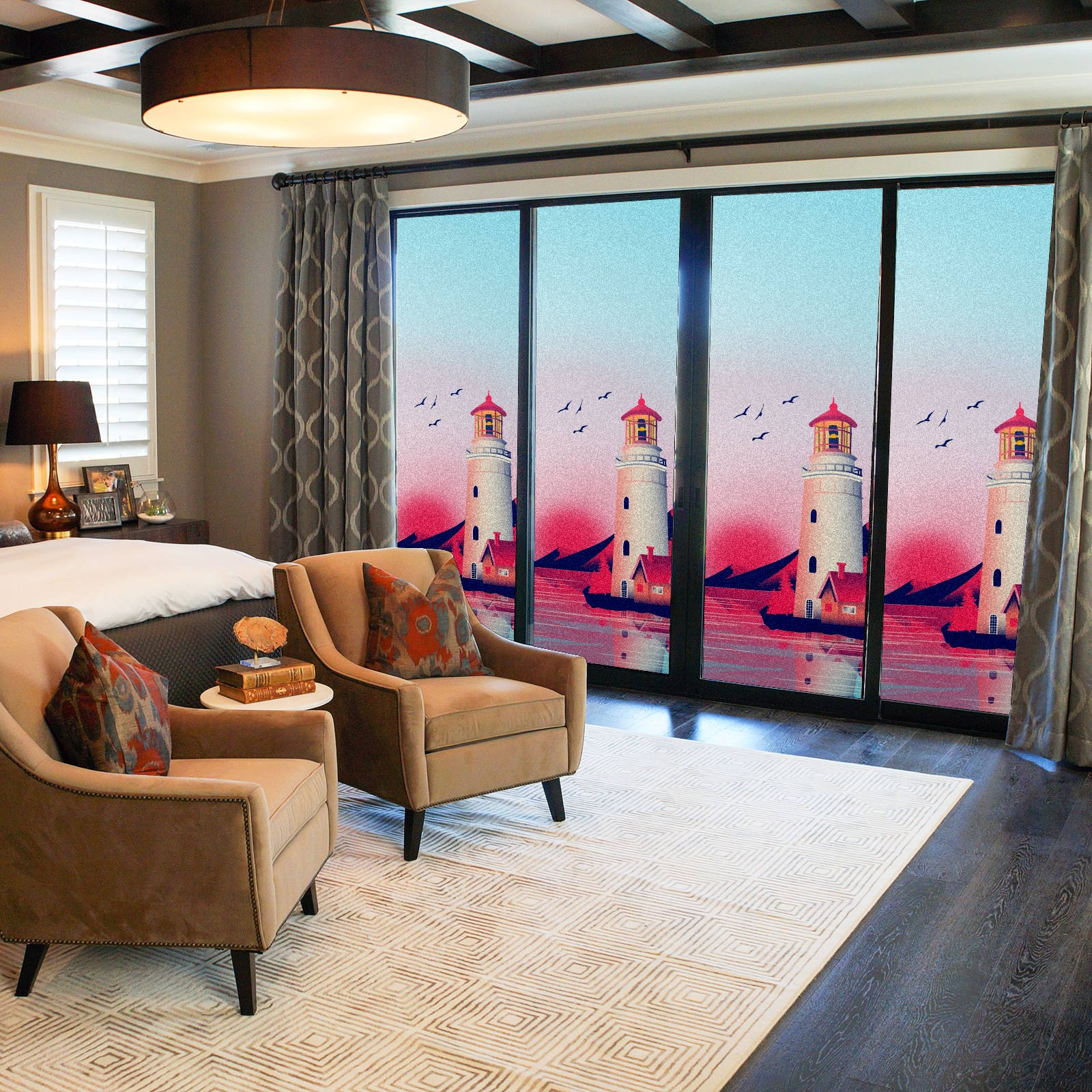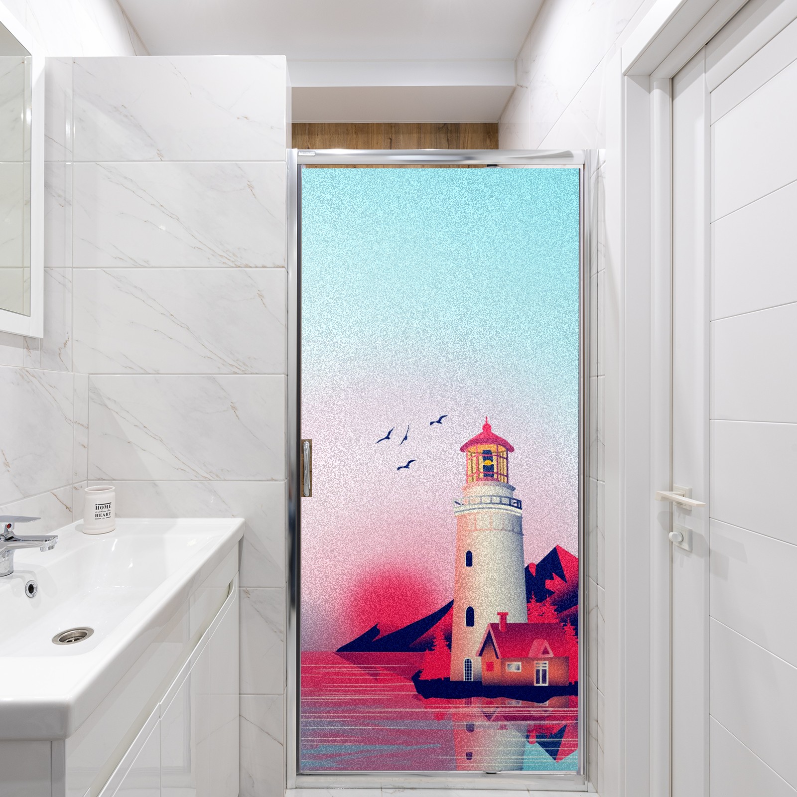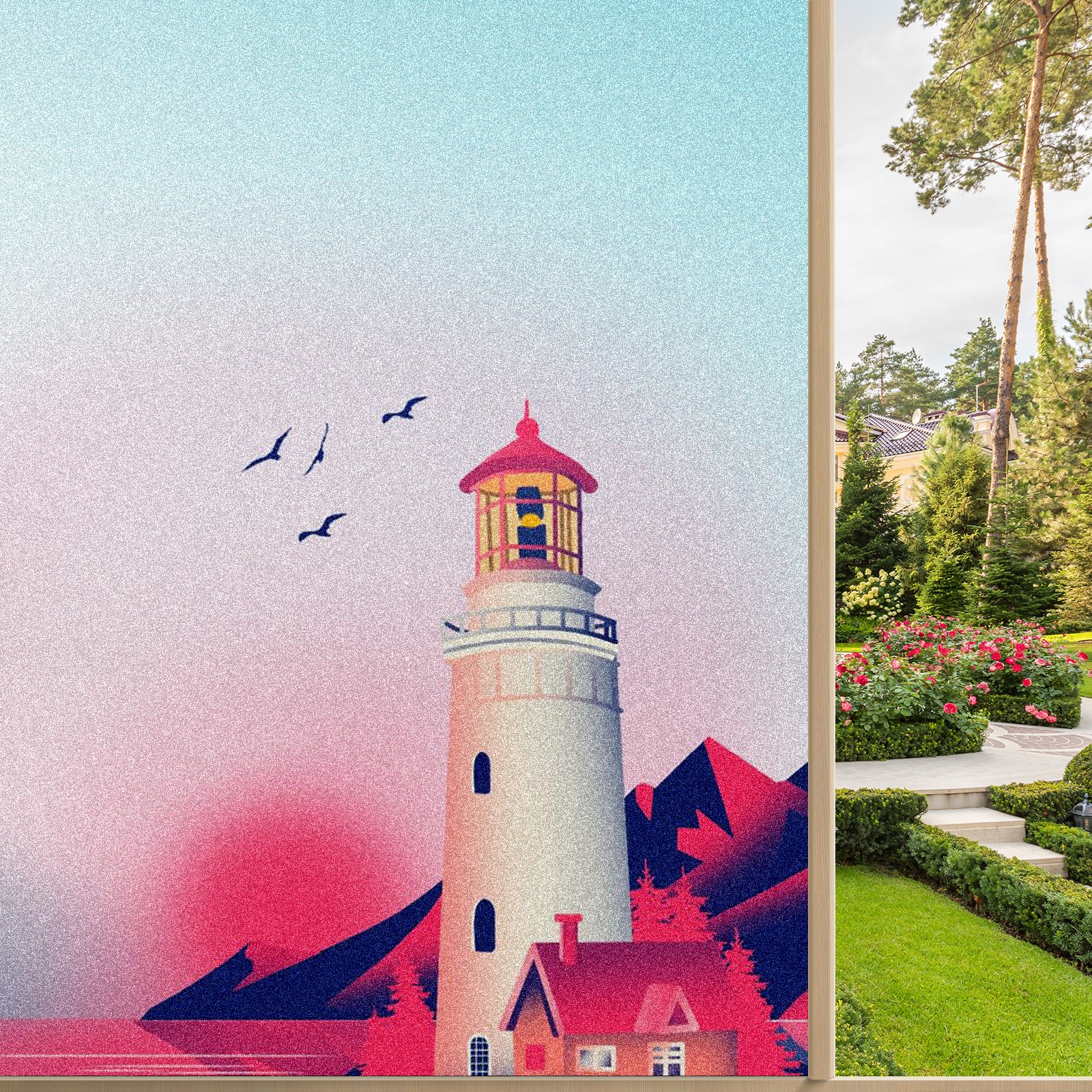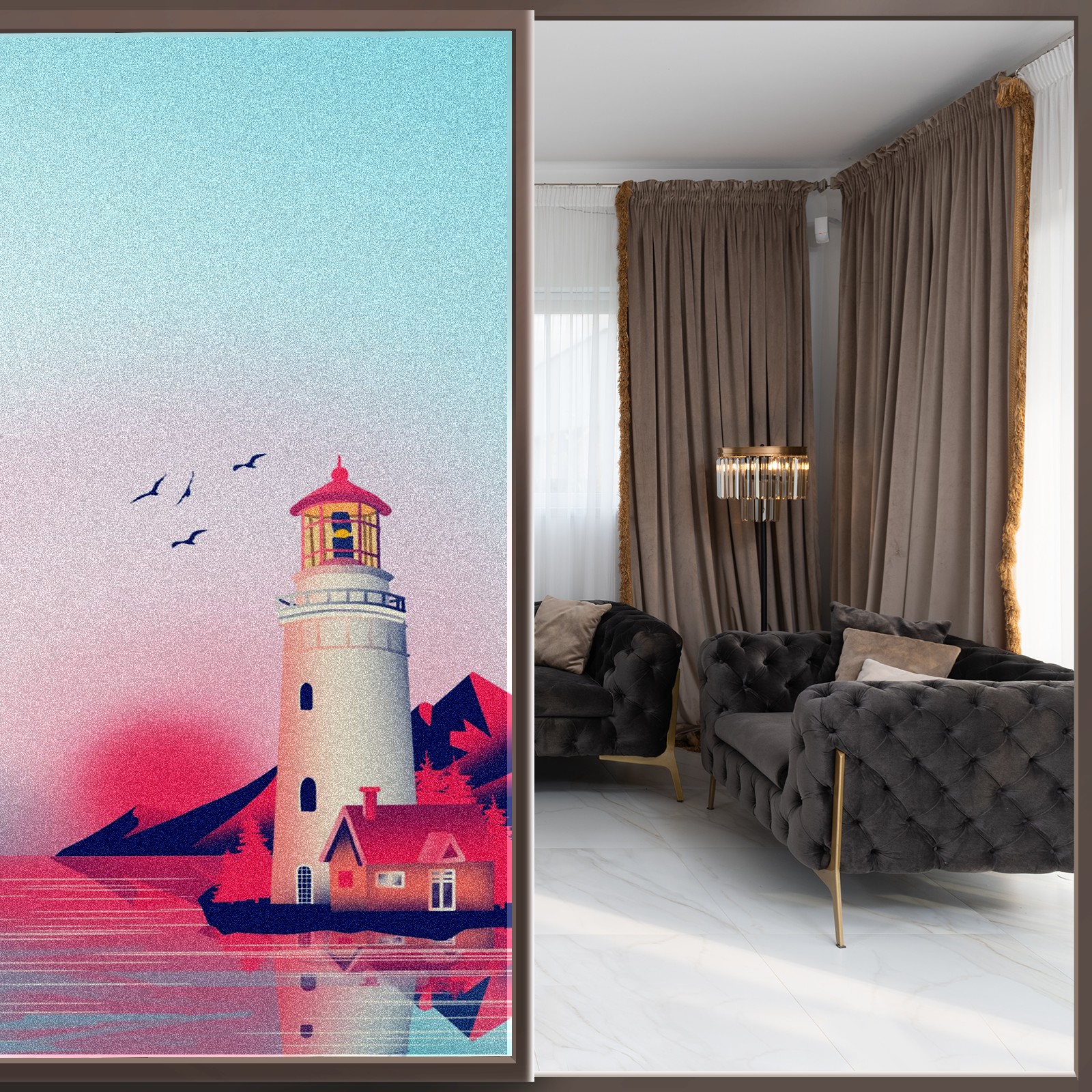 Static Cling Decorative Window Film Frosted Privacy Film Window Clings for Glass Windows No Glue Window Sticker for Bathroom Bedroom Office Abstract Lighthouse