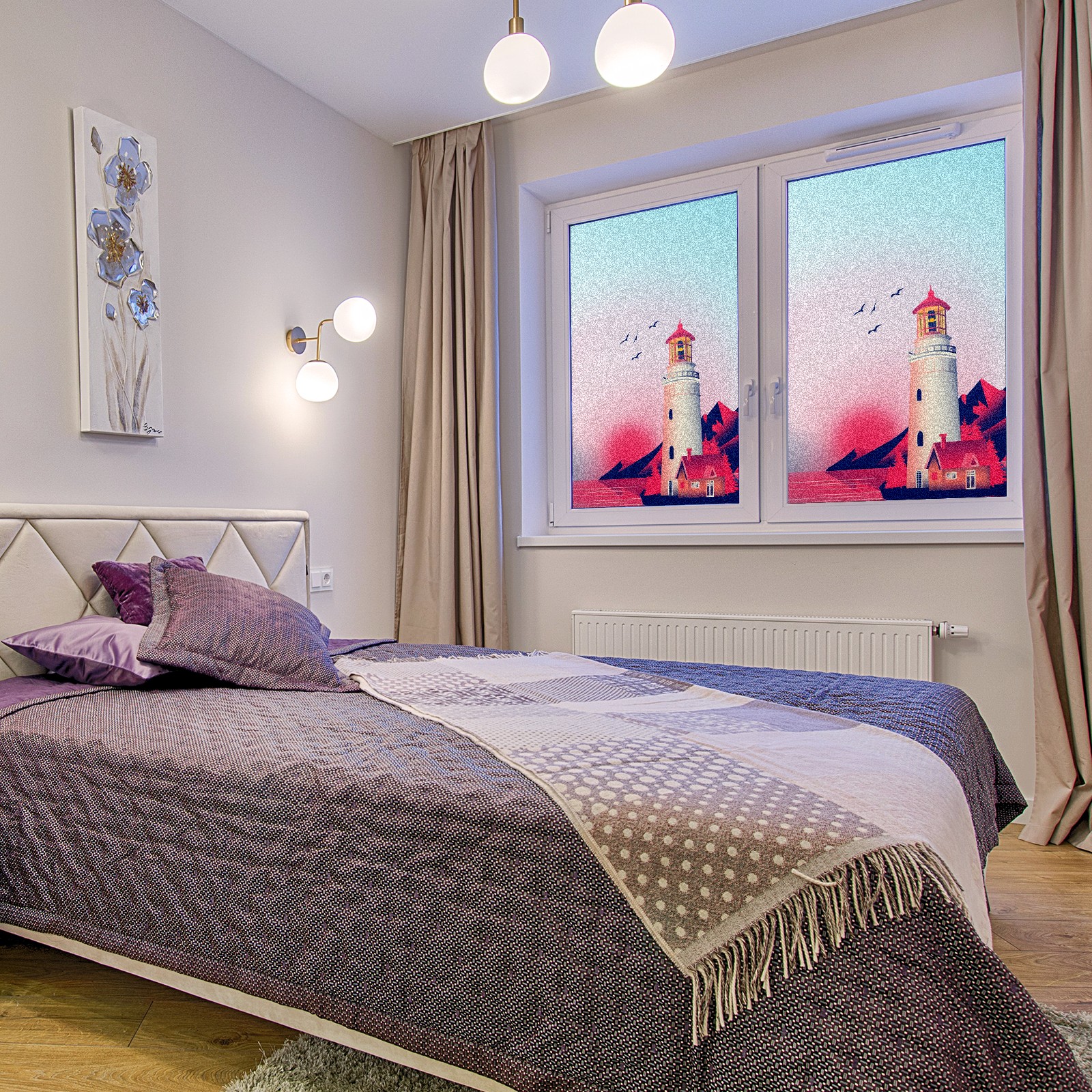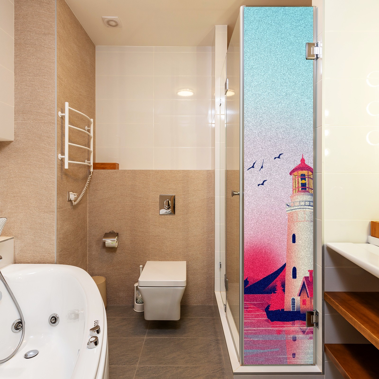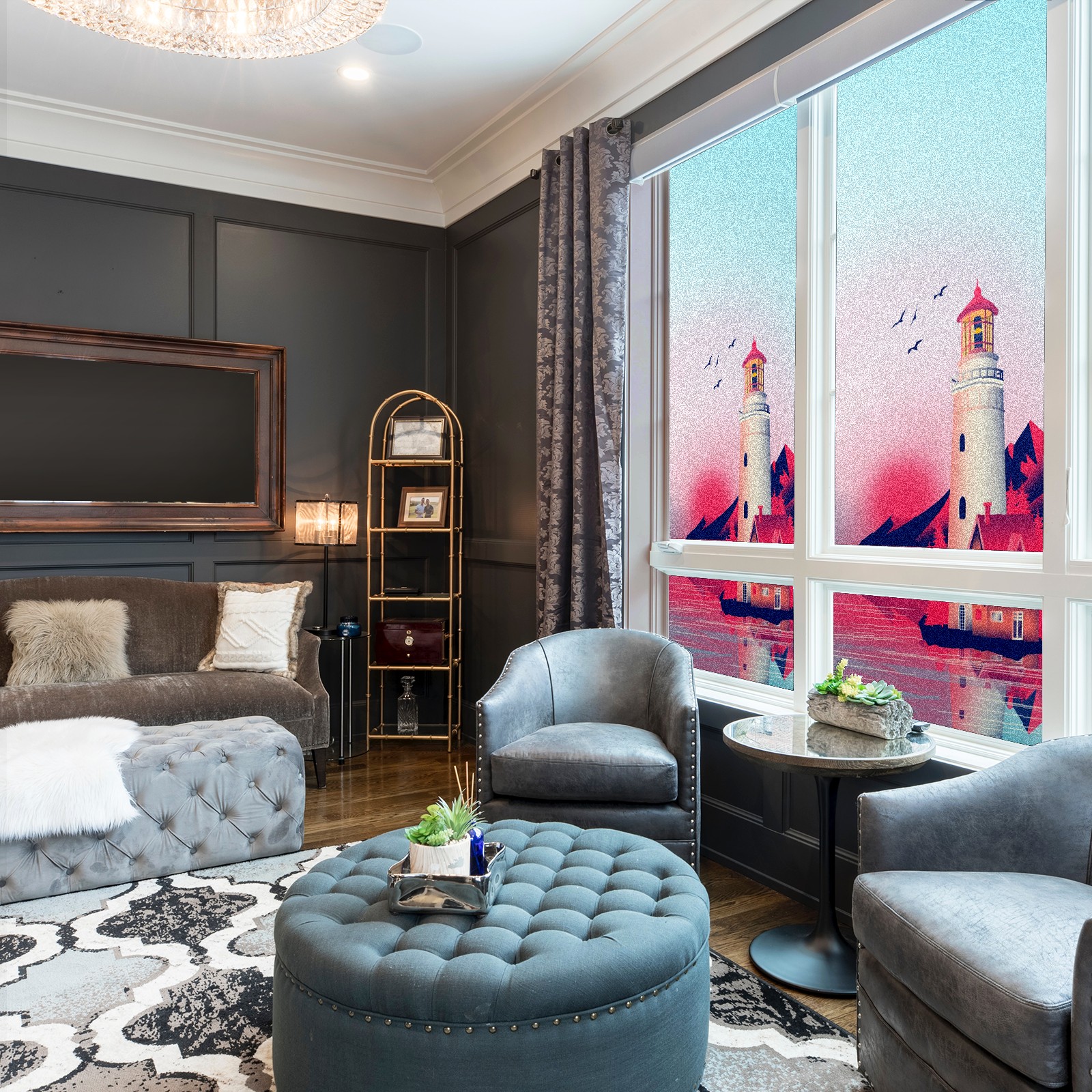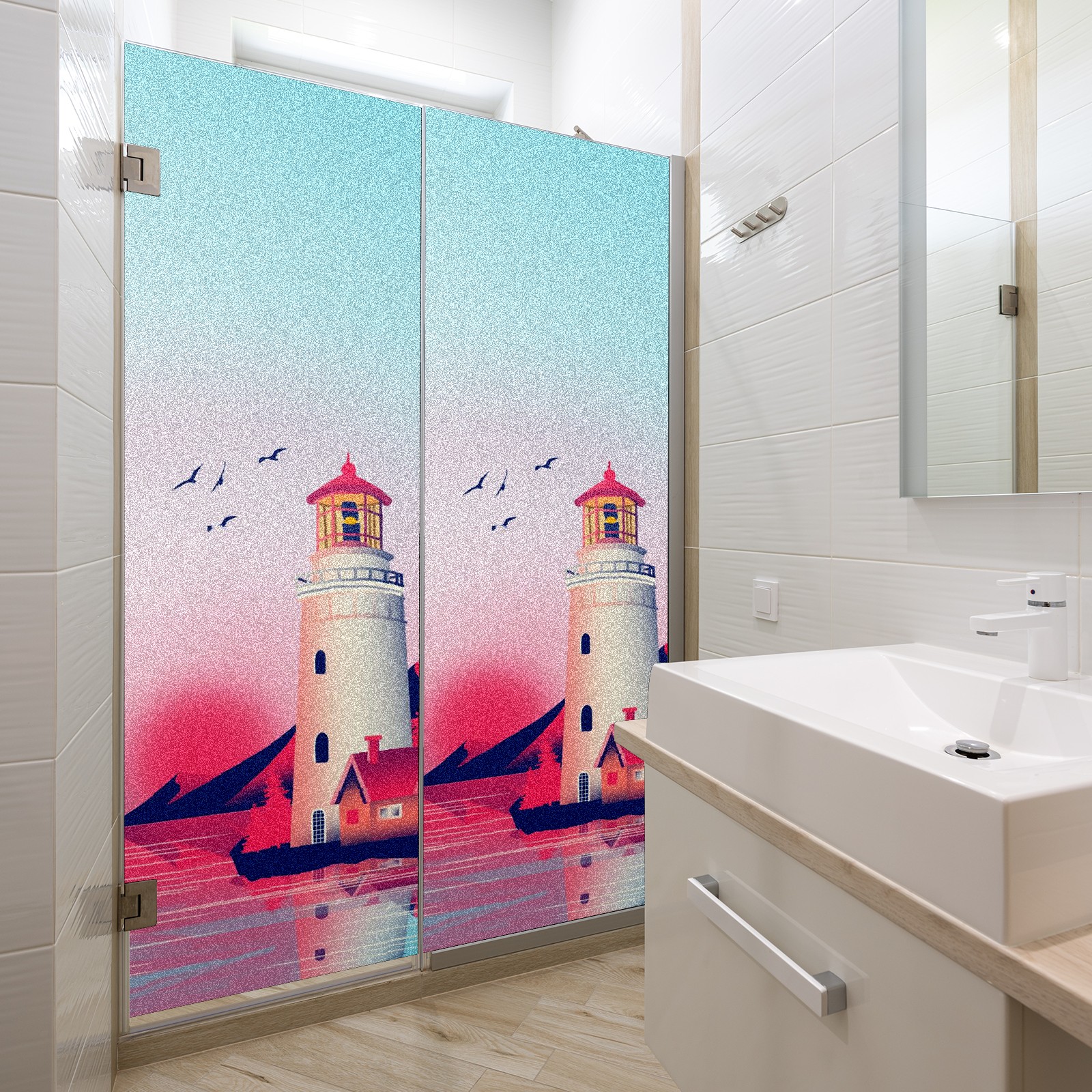 Static Cling Decorative Window Film Frosted Privacy Film Window Clings for Glass Windows No Glue Window Sticker for Bathroom Bedroom Office Abstract Lighthouse