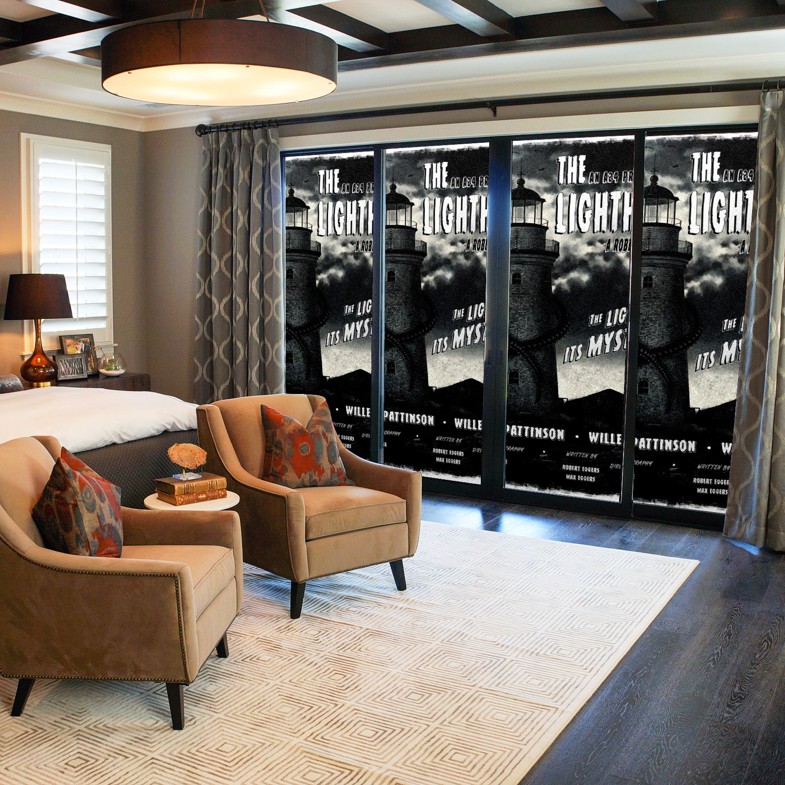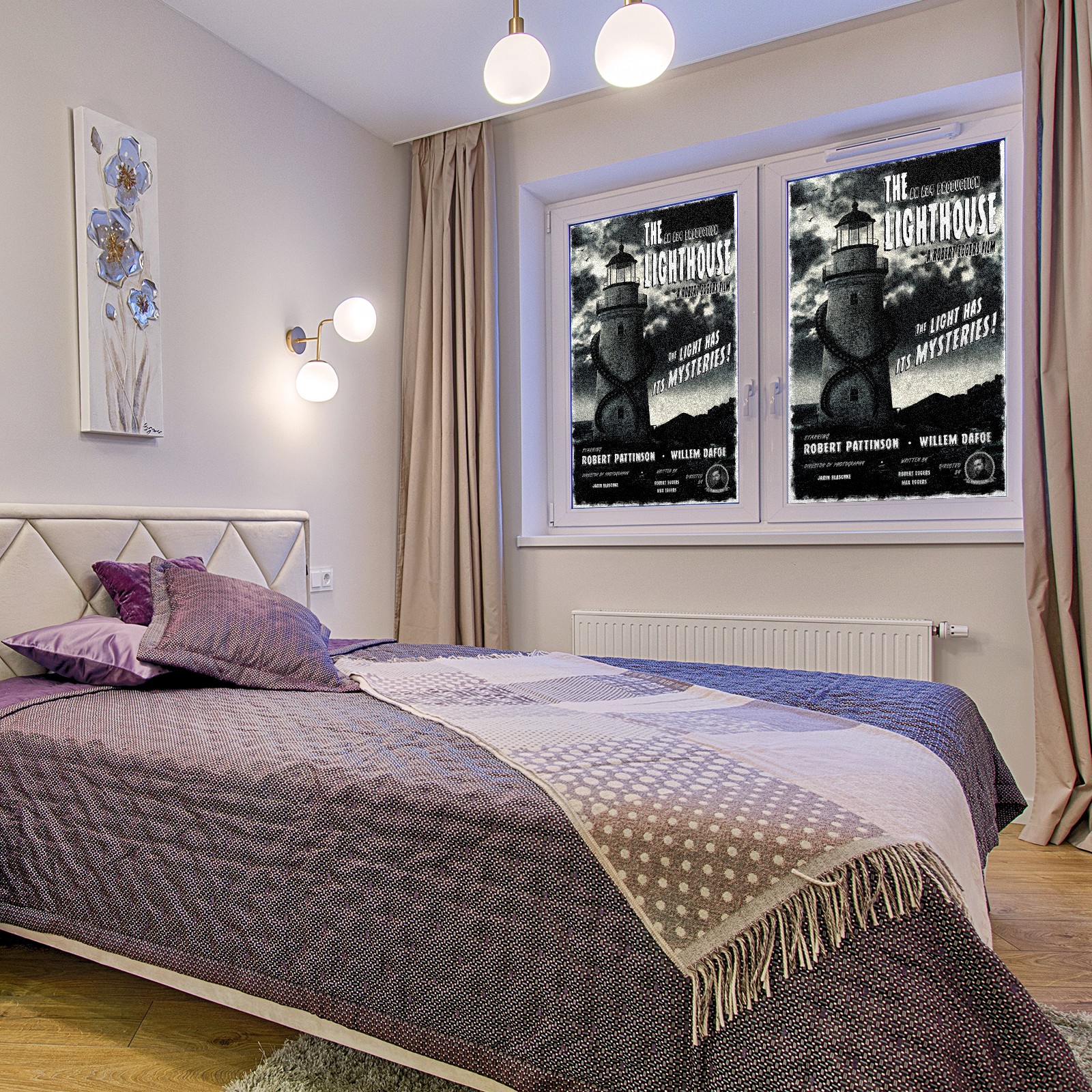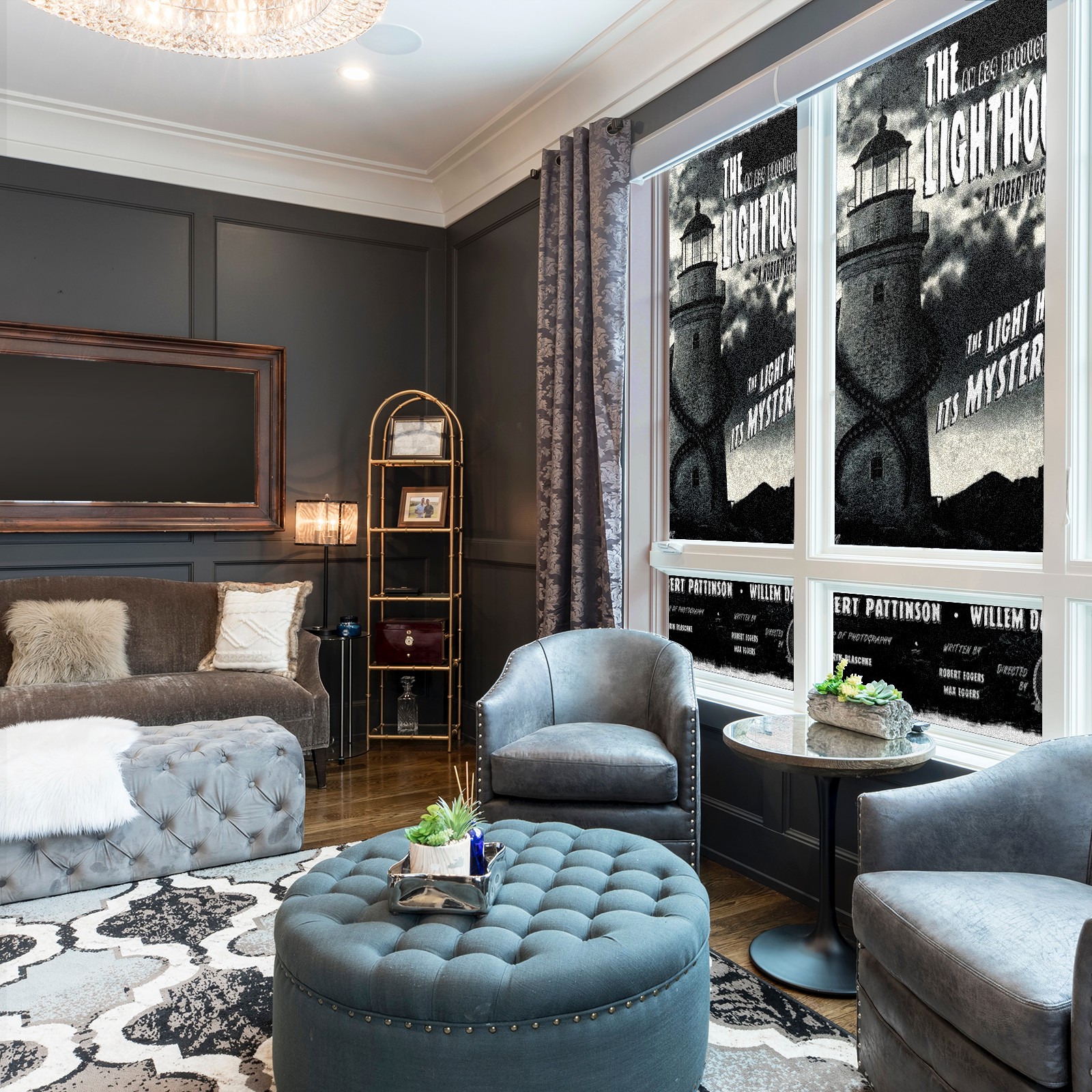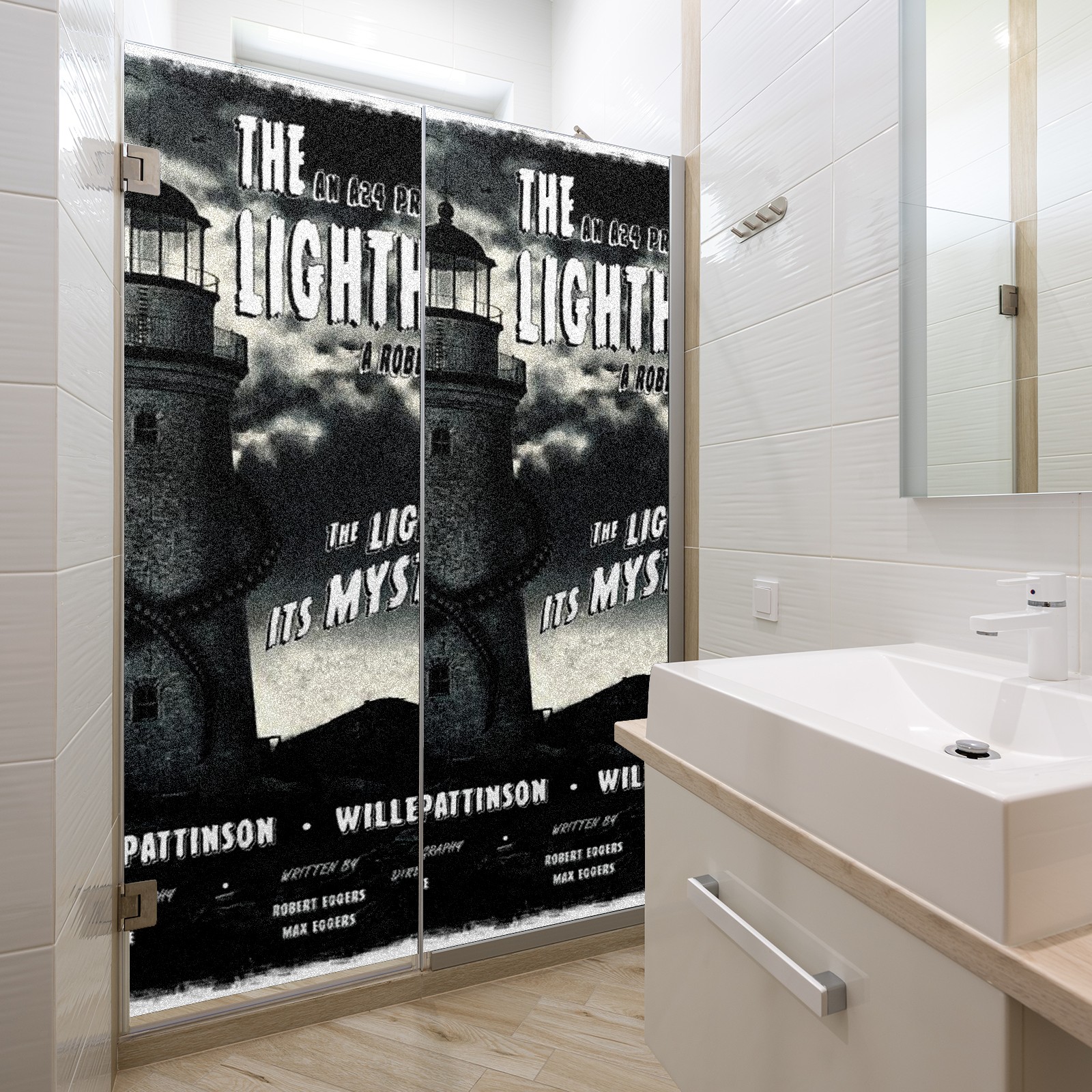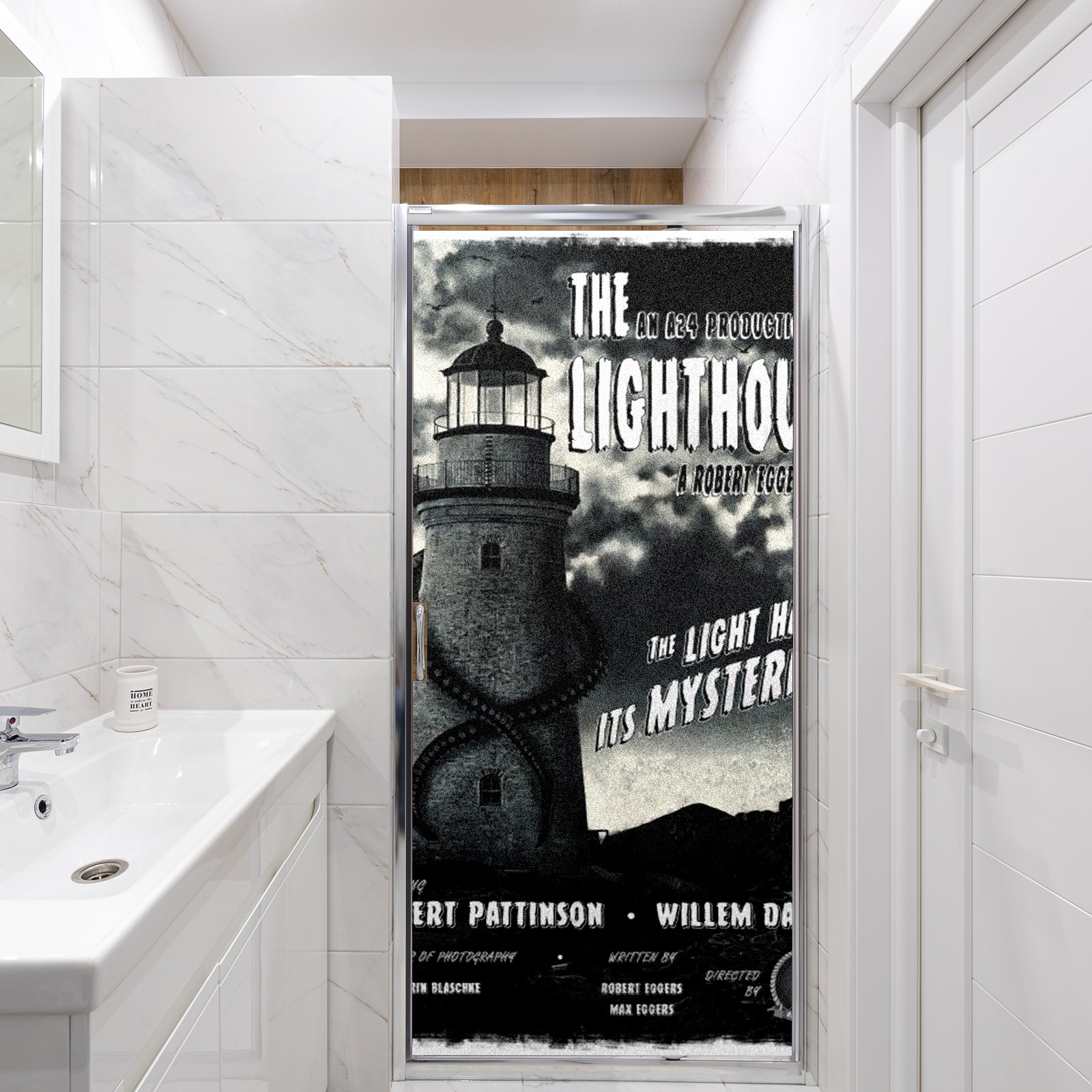 Static Cling Decorative Window Film Frosted Privacy Film Window Clings for Glass Windows No Glue Window Sticker for Bathroom Bedroom Office The Lighthouse Digitally Illustrated Poster