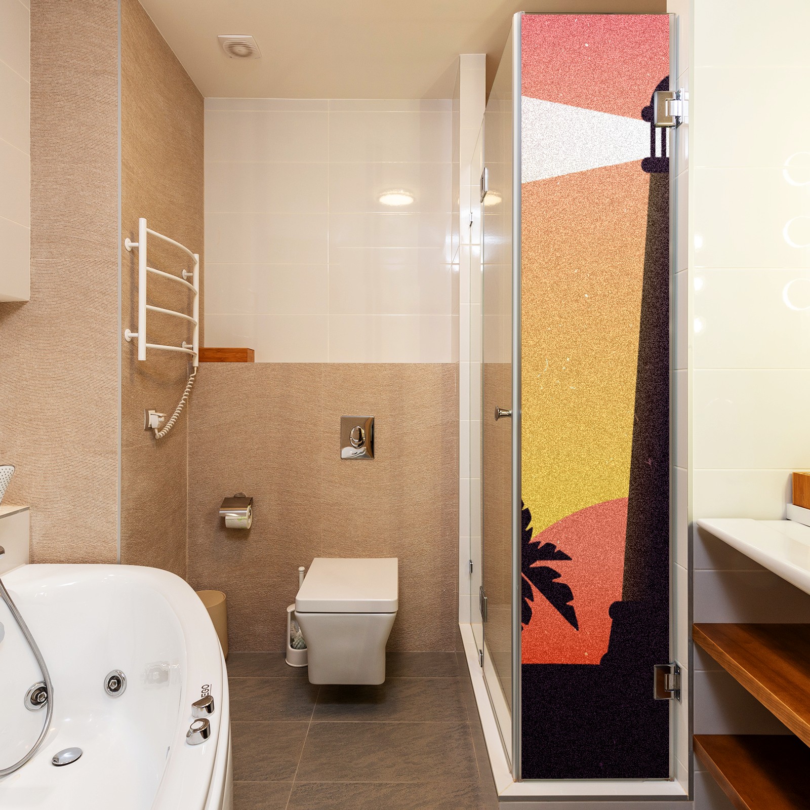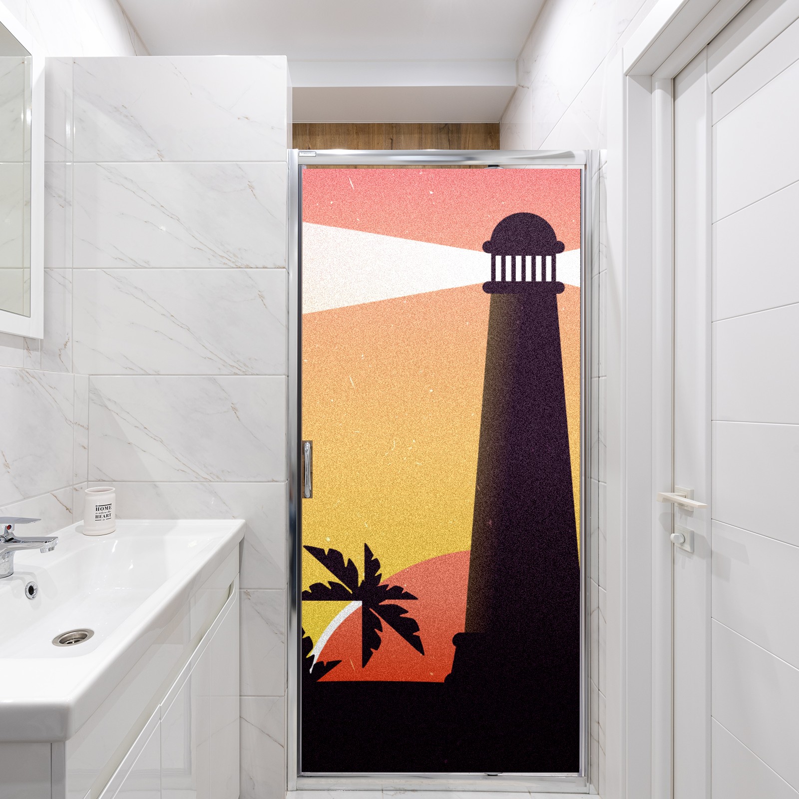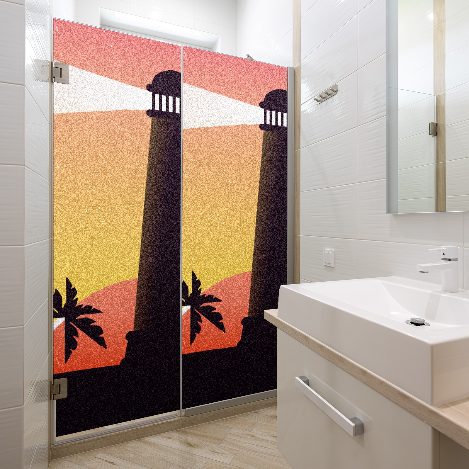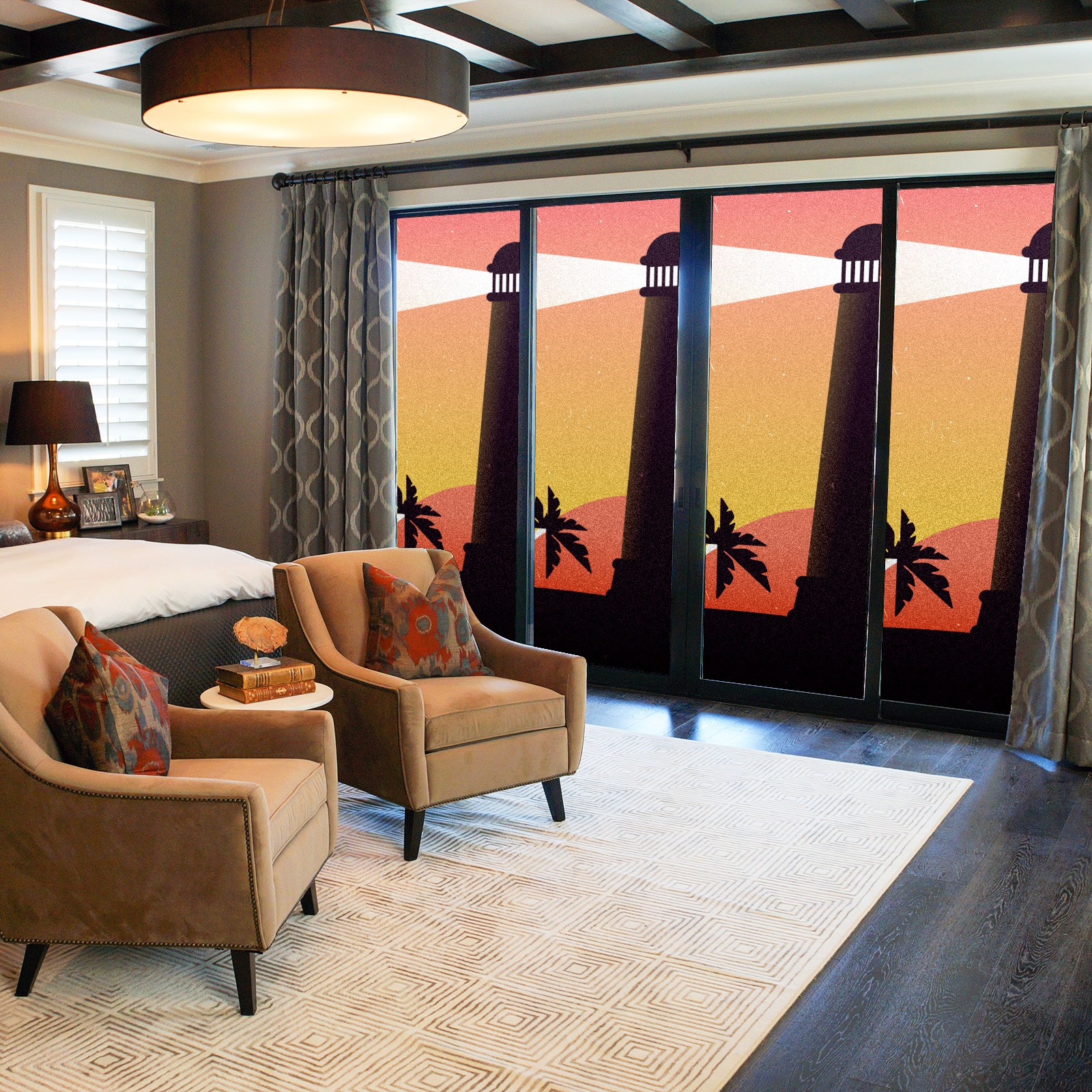 Static Cling Decorative Window Film Frosted Privacy Film Window Clings for Glass Windows No Glue Window Sticker for Bathroom Bedroom Office Lighthouse Sunset Palm Trees