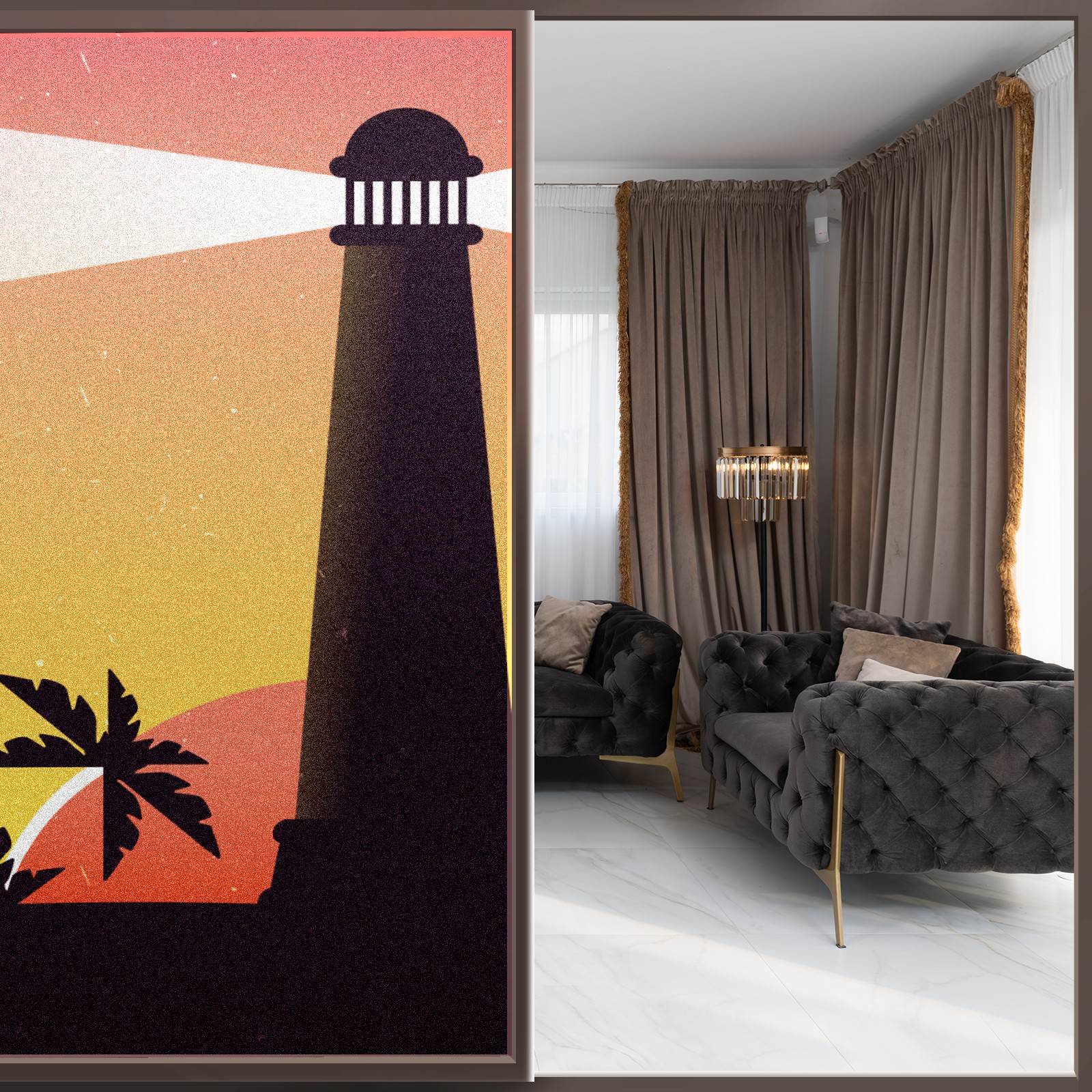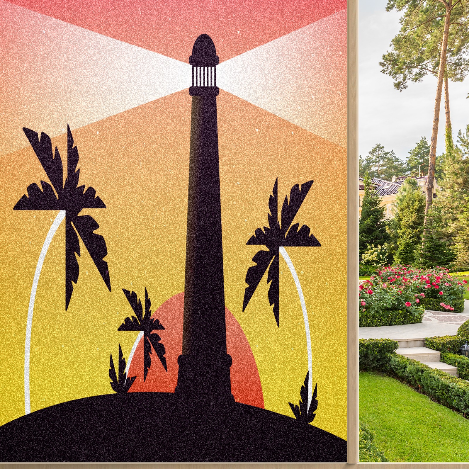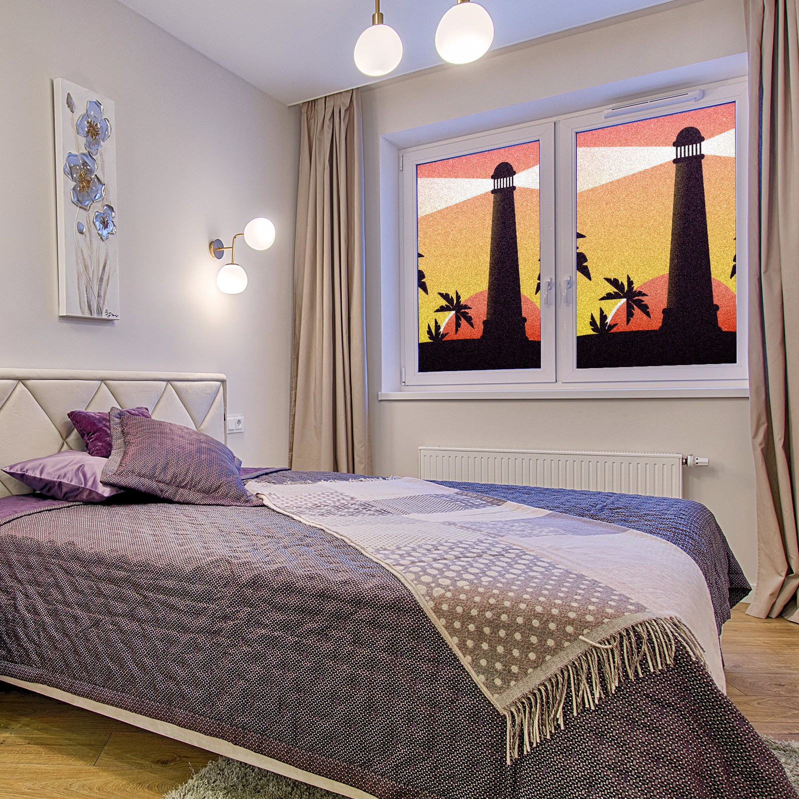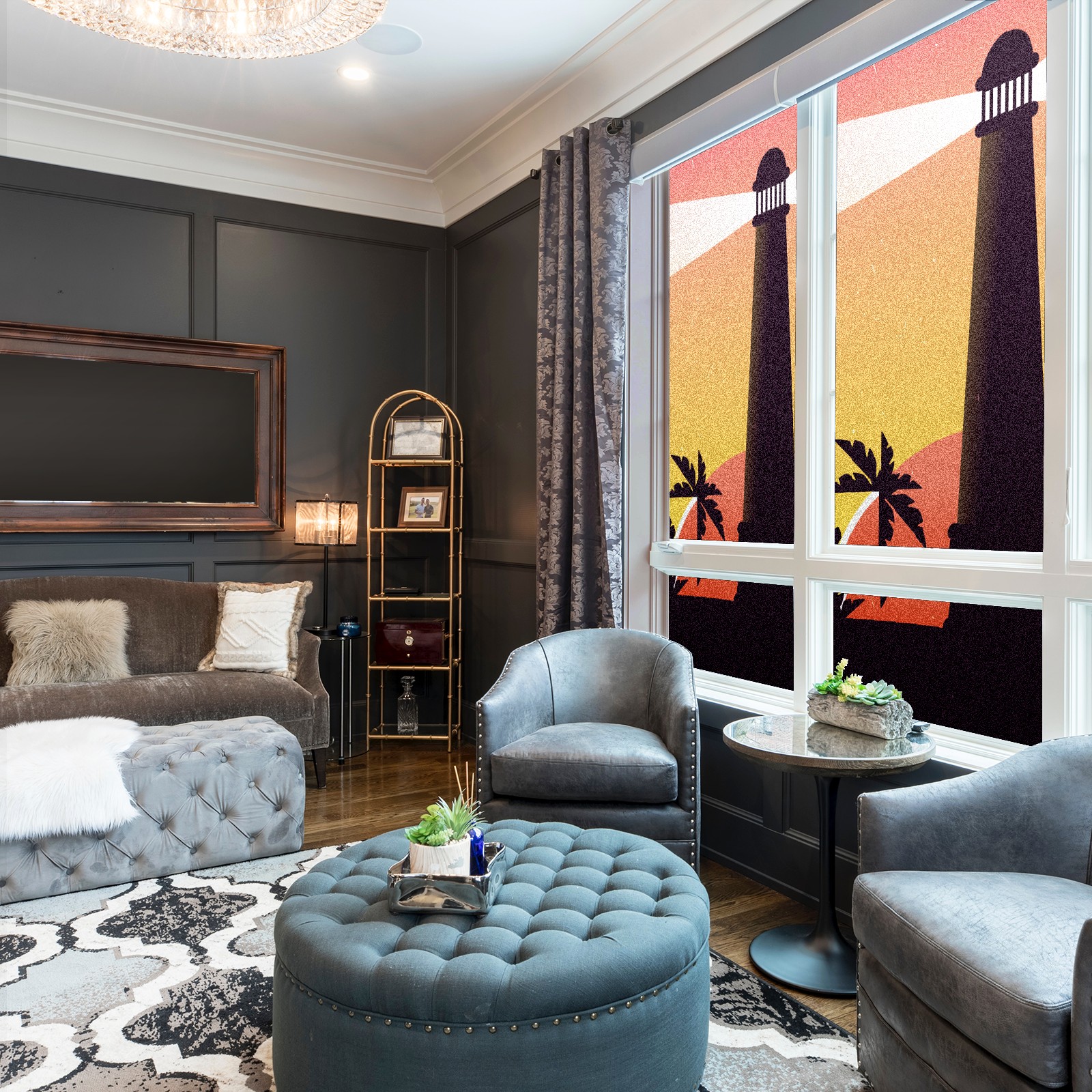 Static Cling Decorative Window Film Frosted Privacy Film Window Clings for Glass Windows No Glue Window Sticker for Bathroom Bedroom Office Lighthouse Sunset Palm Trees
