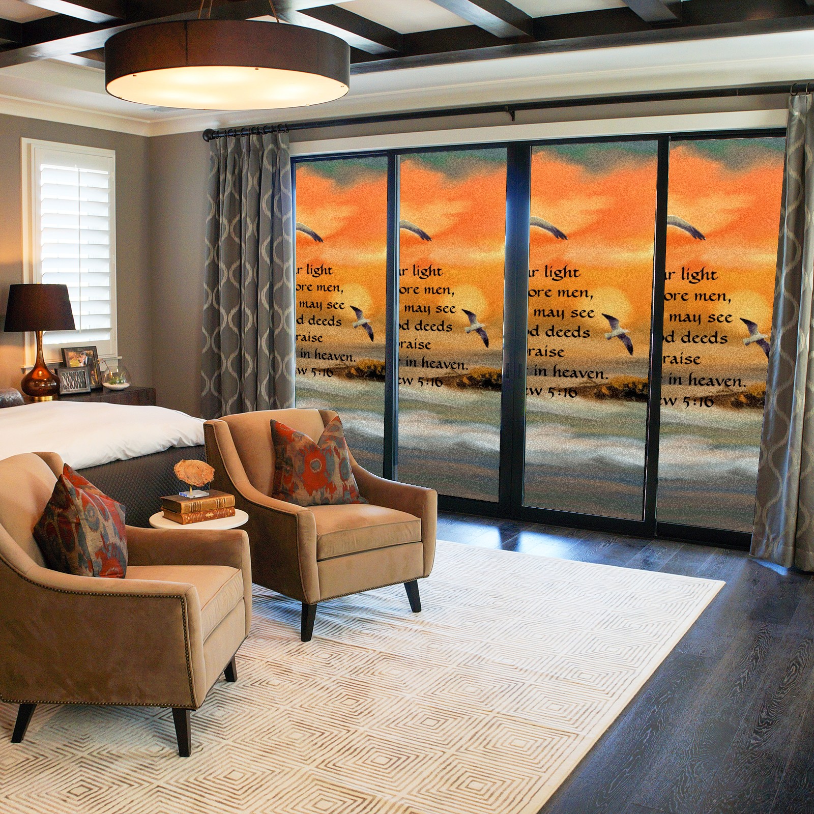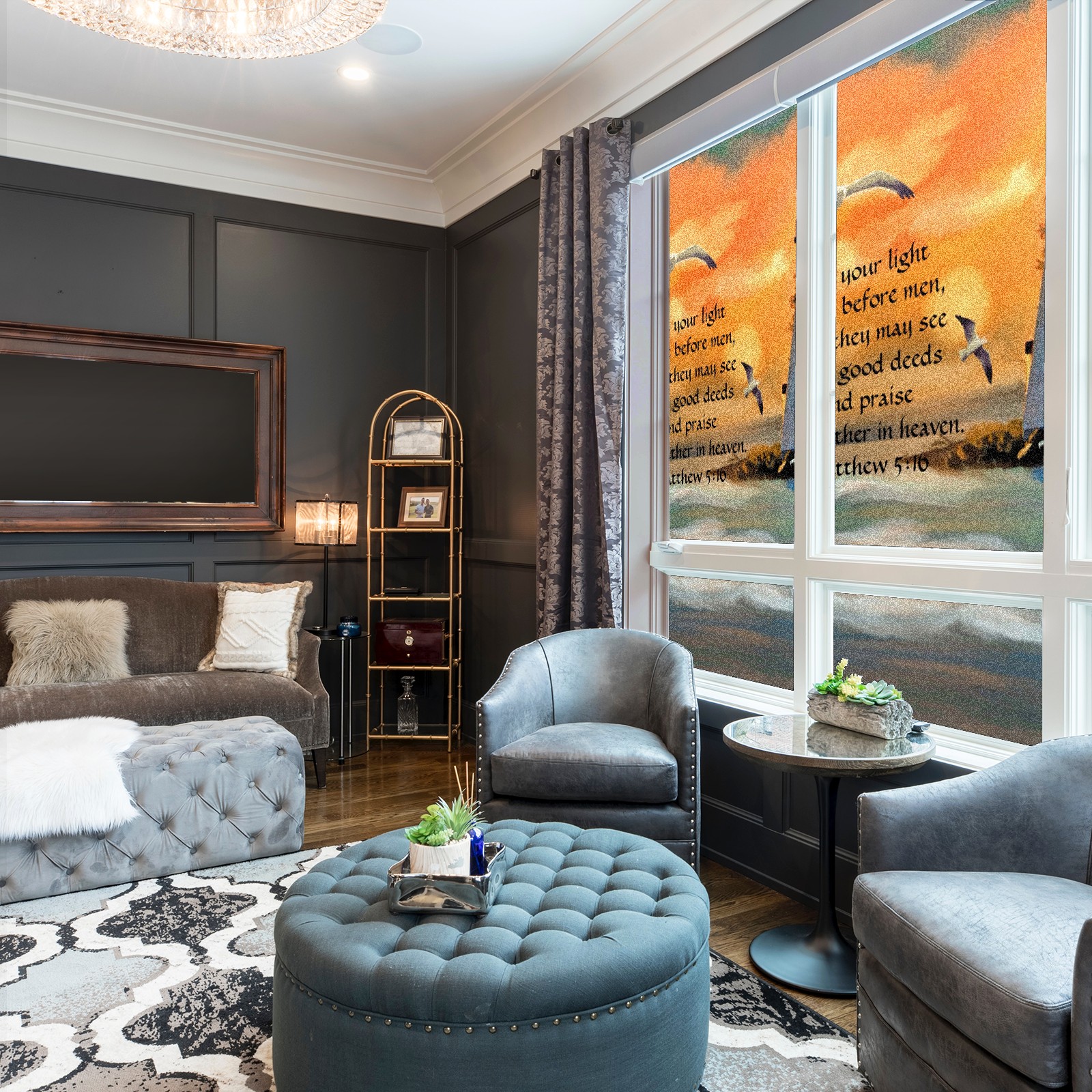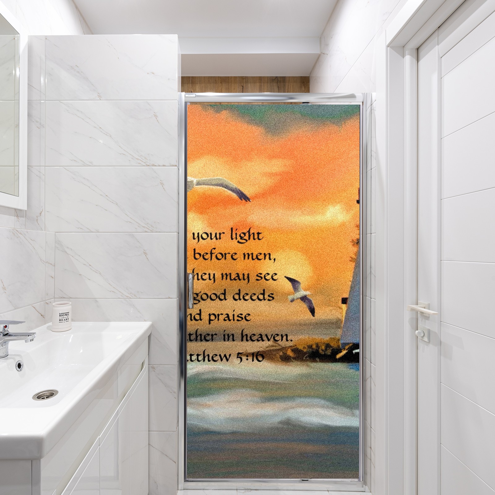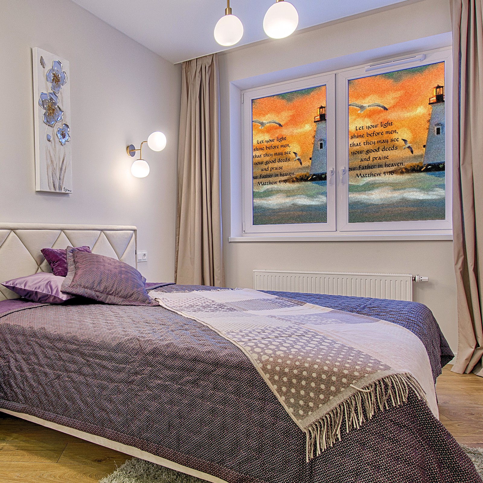 Static Cling Decorative Window Film Frosted Privacy Film Window Clings for Glass Windows No Glue Window Sticker for Bathroom Bedroom Office Lighthouse Sunset