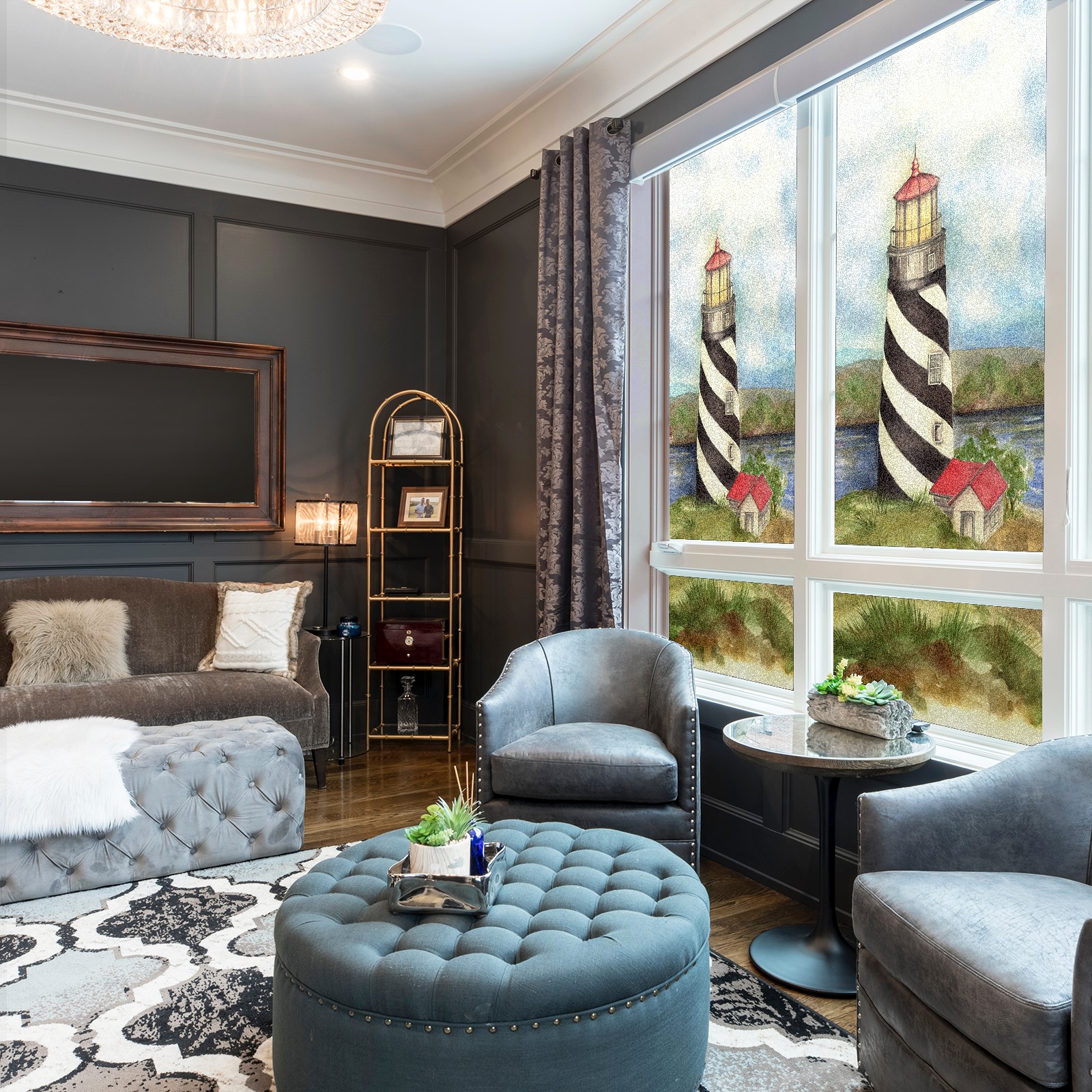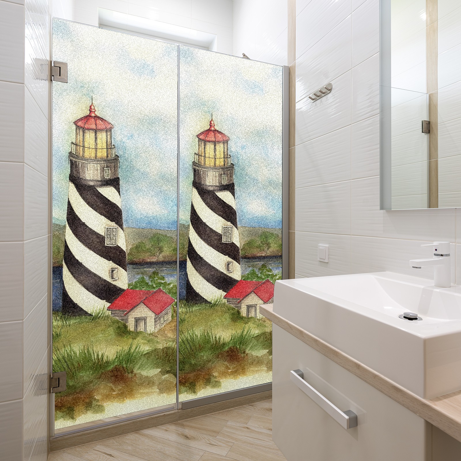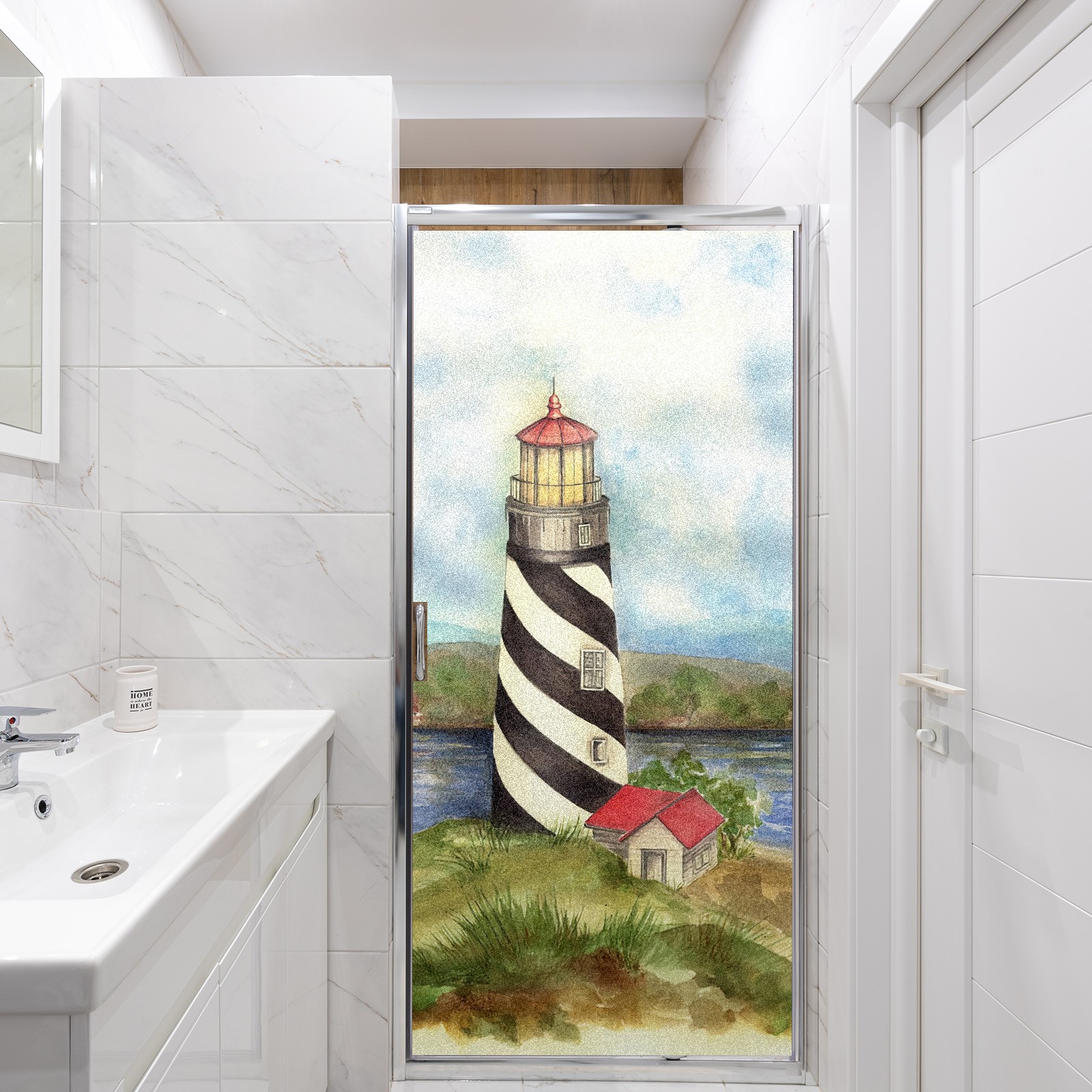 Static Cling Decorative Window Film Frosted Privacy Film Window Clings for Glass Windows No Glue Window Sticker for Bathroom Bedroom Office Lighthouse 03 Maria Trad