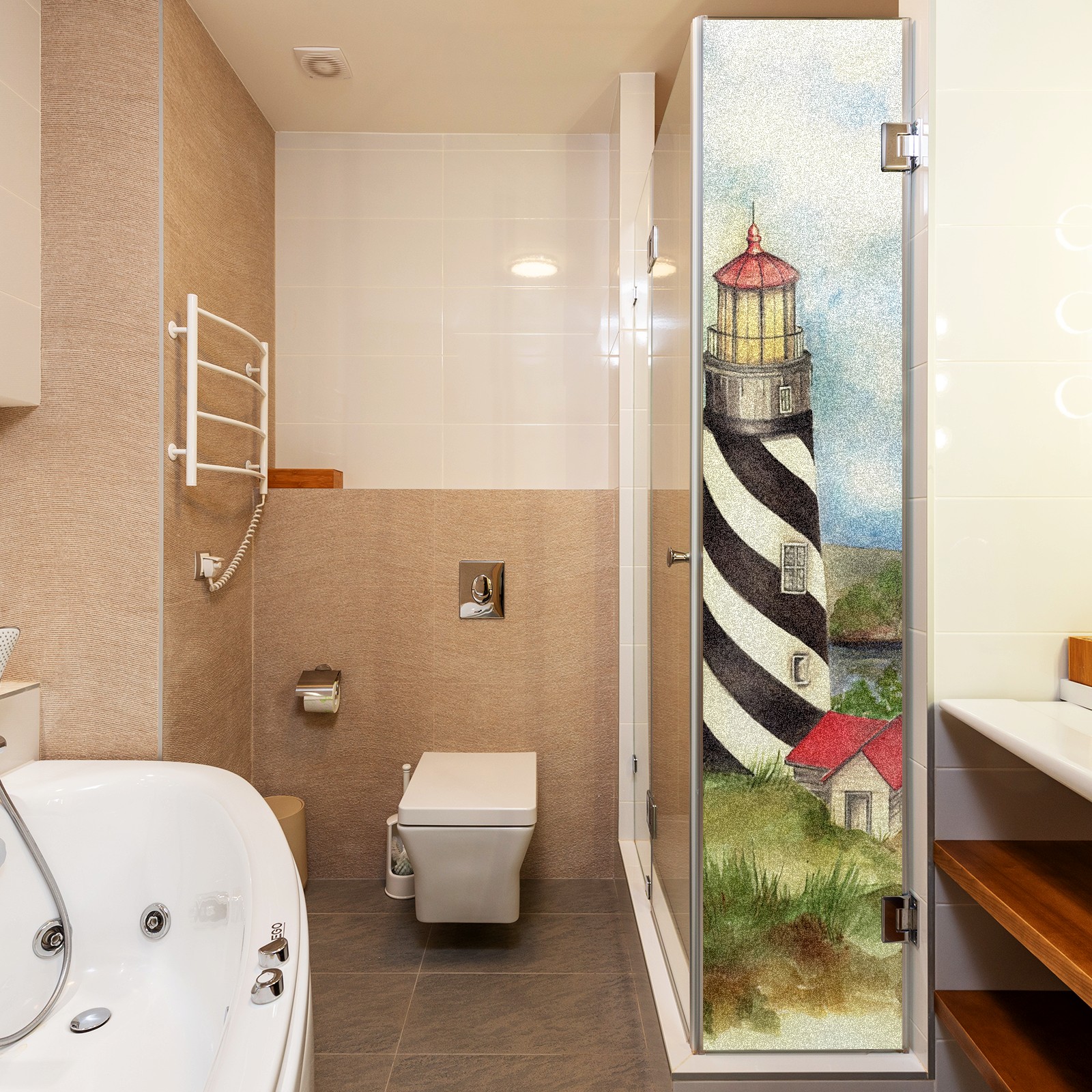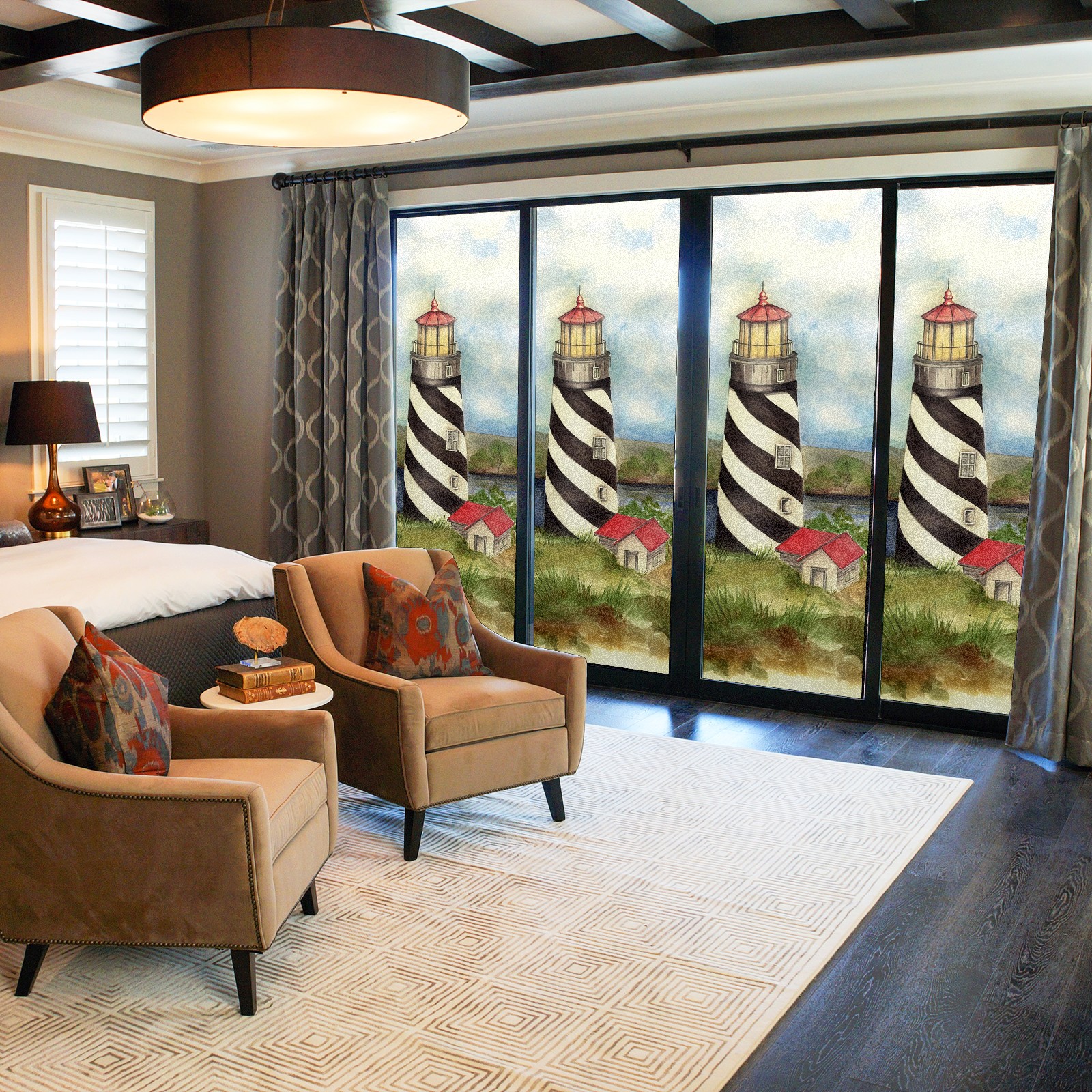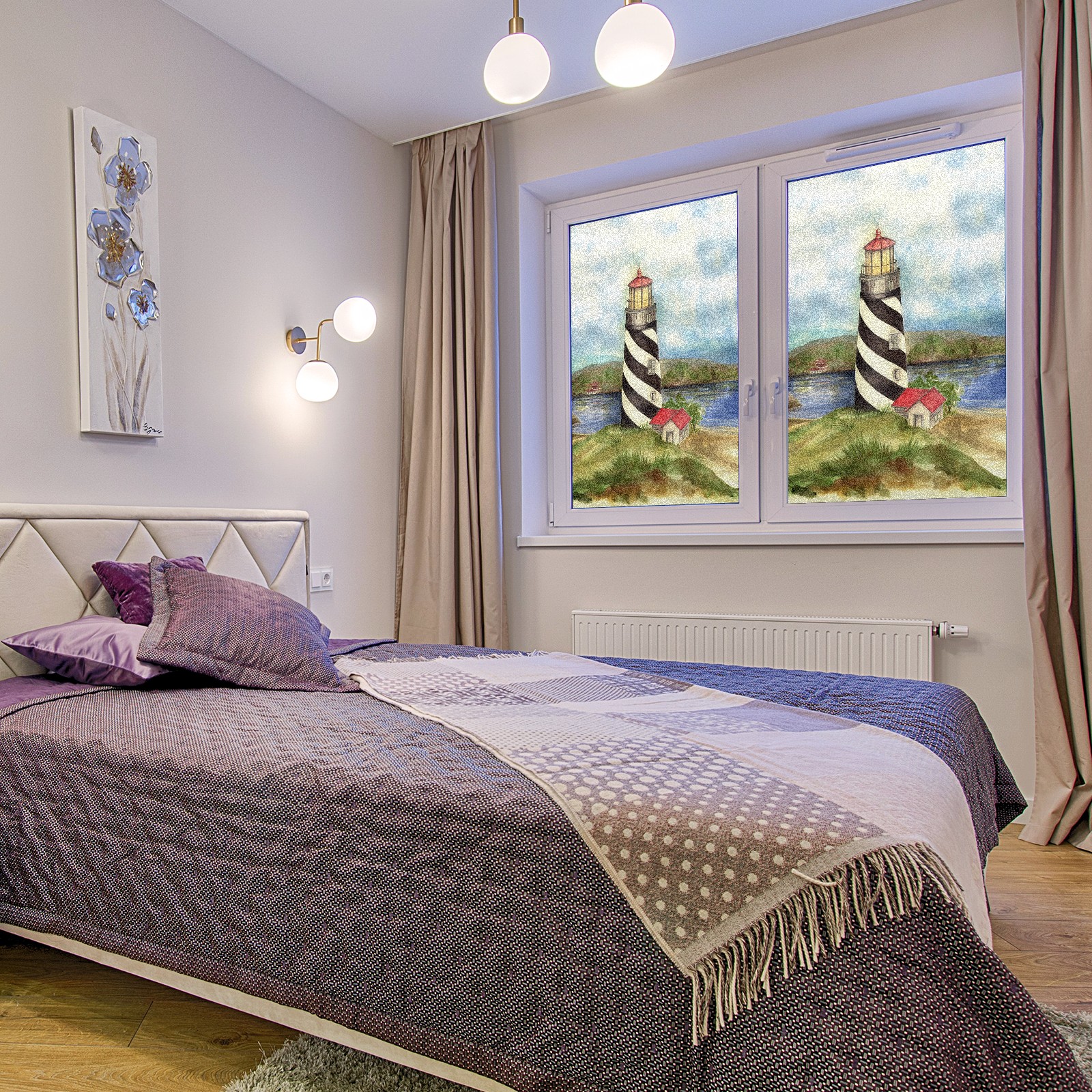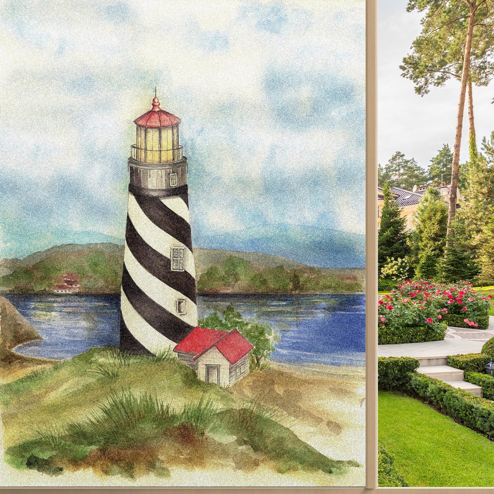 Static Cling Decorative Window Film Frosted Privacy Film Window Clings for Glass Windows No Glue Window Sticker for Bathroom Bedroom Office Lighthouse 03 Maria Trad