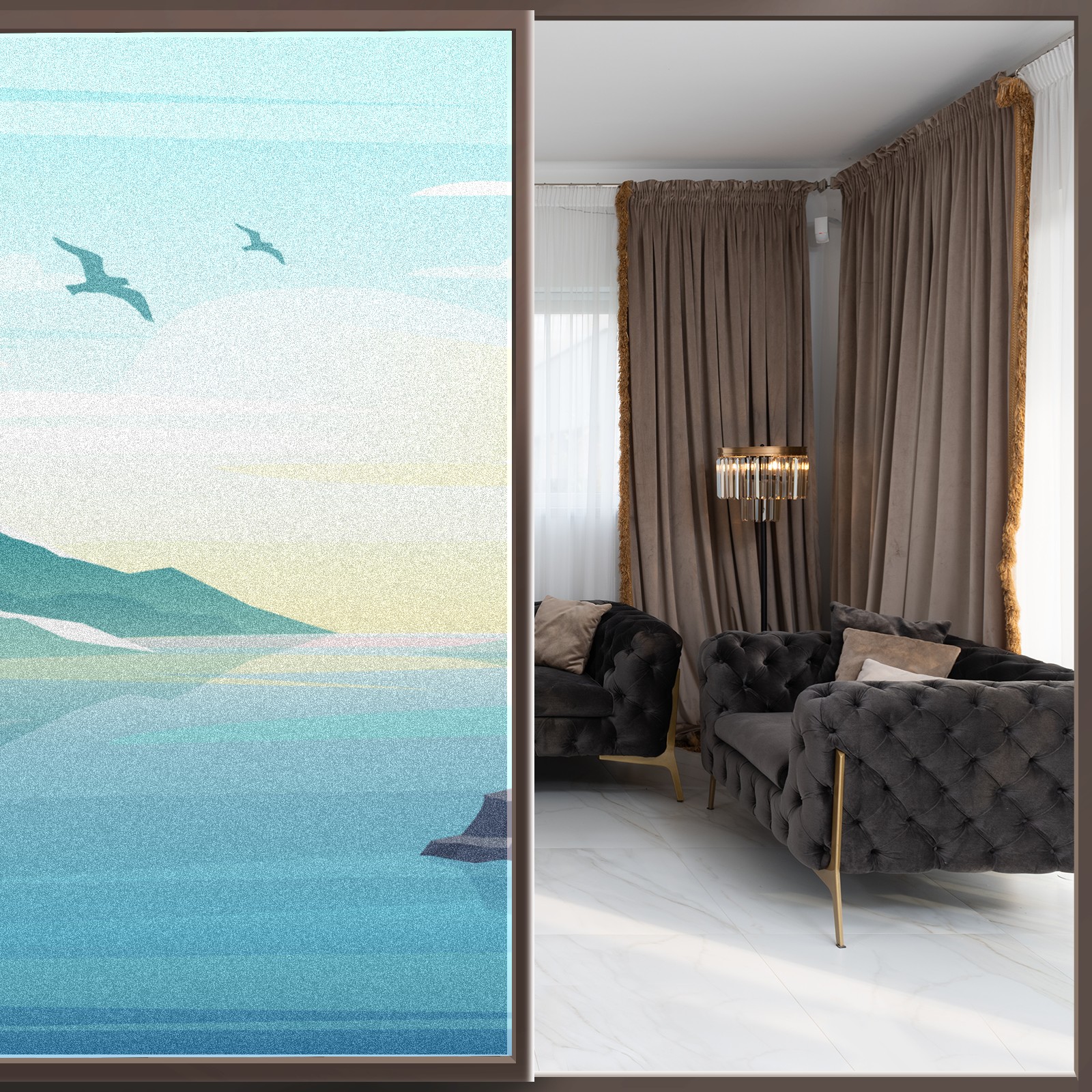 Transform Your House to Home with BRTURLAIR Frosted Glass Window Film! ●BRTURLAIR Window Film with Graphic Printings, Bright and Vivid Color, Our Window Clings are Great Home Decoration. ●This one-way window tint offers excellent sun blocking capabilities, effectively reducing heat and glare, while still allowing natural light into your space. ●With its non-adhesive static cling technology, installation is a breeze. ●Plus, it’s reusable, making it perfect for renters. Installation Tips: Before installation, please make sure the window surface, edges and corners are clean enough without any dust; during installation, please spray a lot of water both on the window surface and window film back for effective attachment; after installation, please trim the margins and leave edge gaps to squeeze out air bubbles easily.