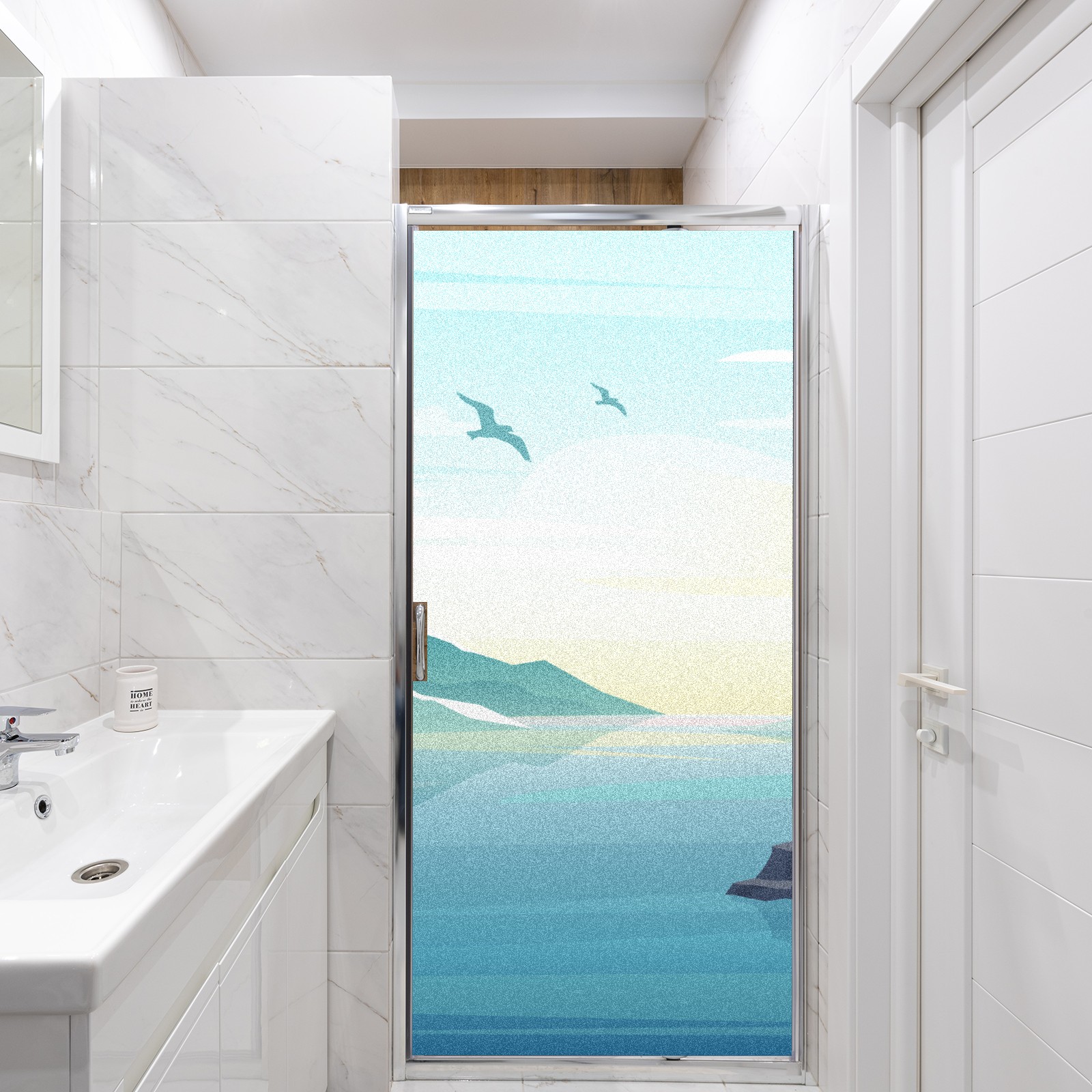 Static Cling Decorative Window Film Frosted Privacy Film Window Clings for Glass Windows No Glue Window Sticker for Bathroom Bedroom Office Blue Sea Lighthouse Seagull