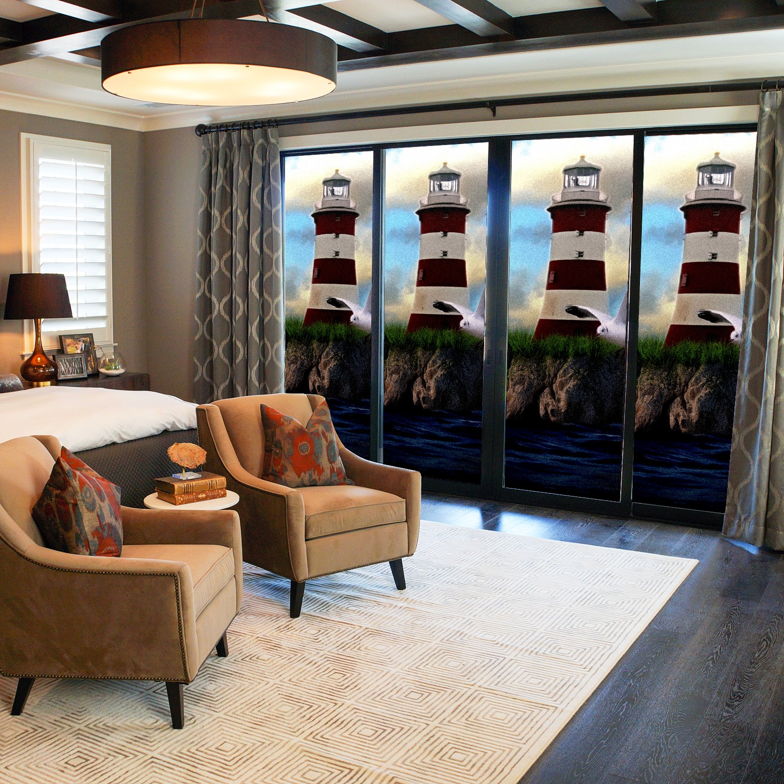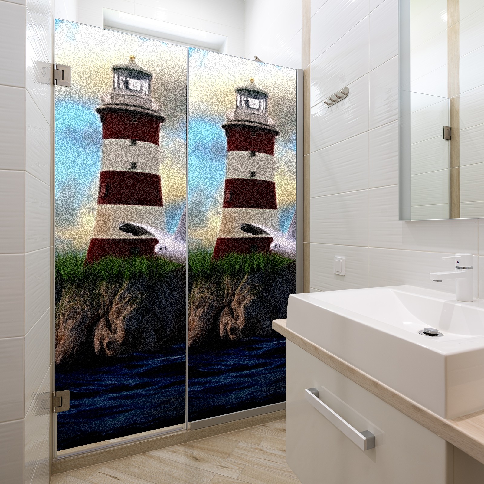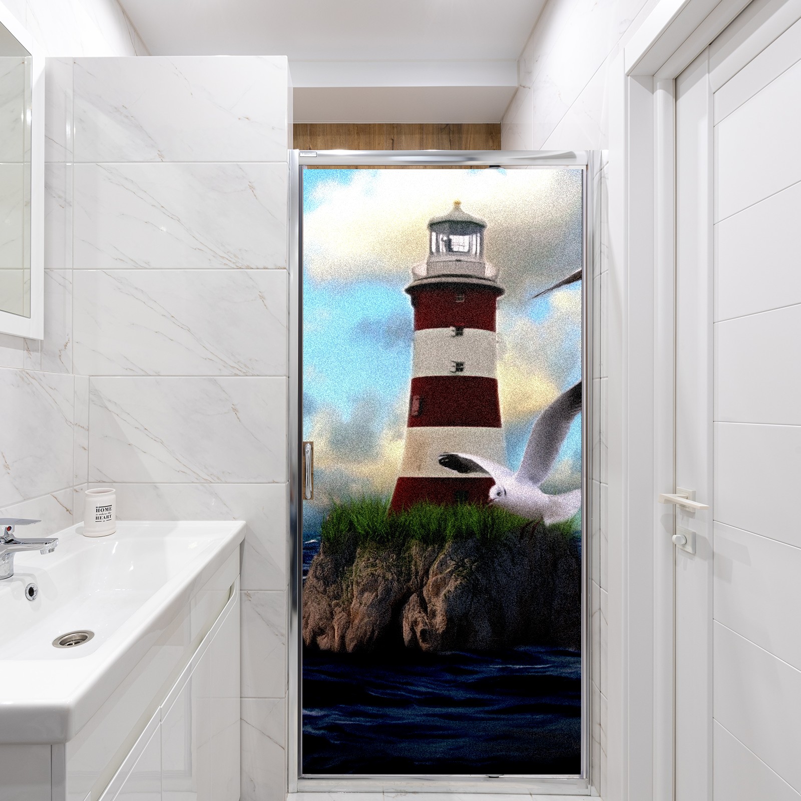 Static Cling Decorative Window Film Frosted Privacy Film Window Clings for Glass Windows No Glue Window Sticker for Bathroom Bedroom Office Sea Lighthouse Seagulls