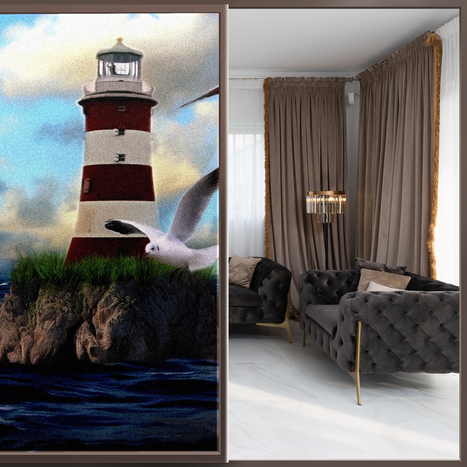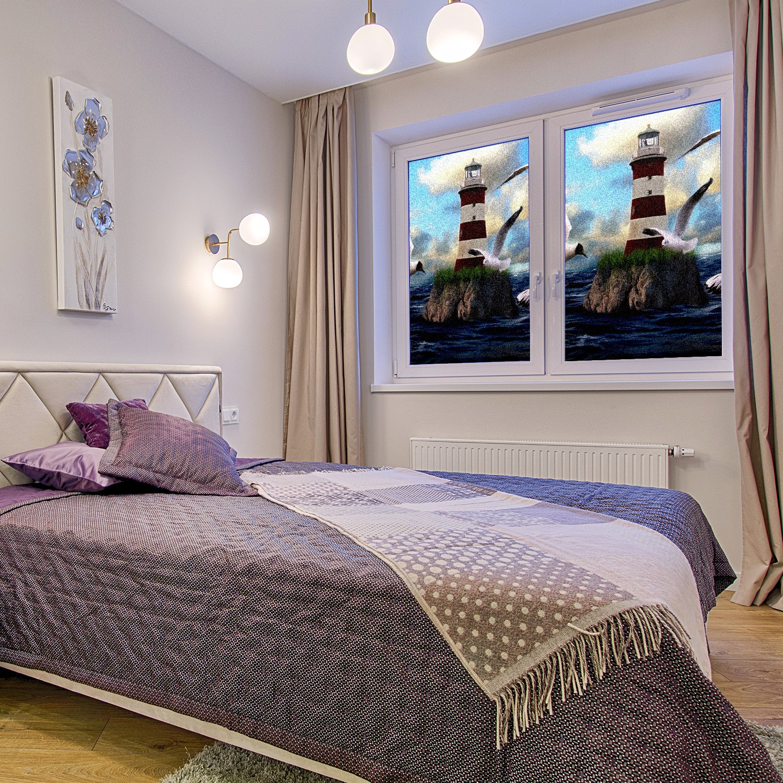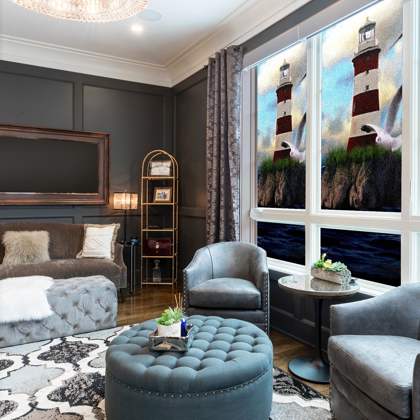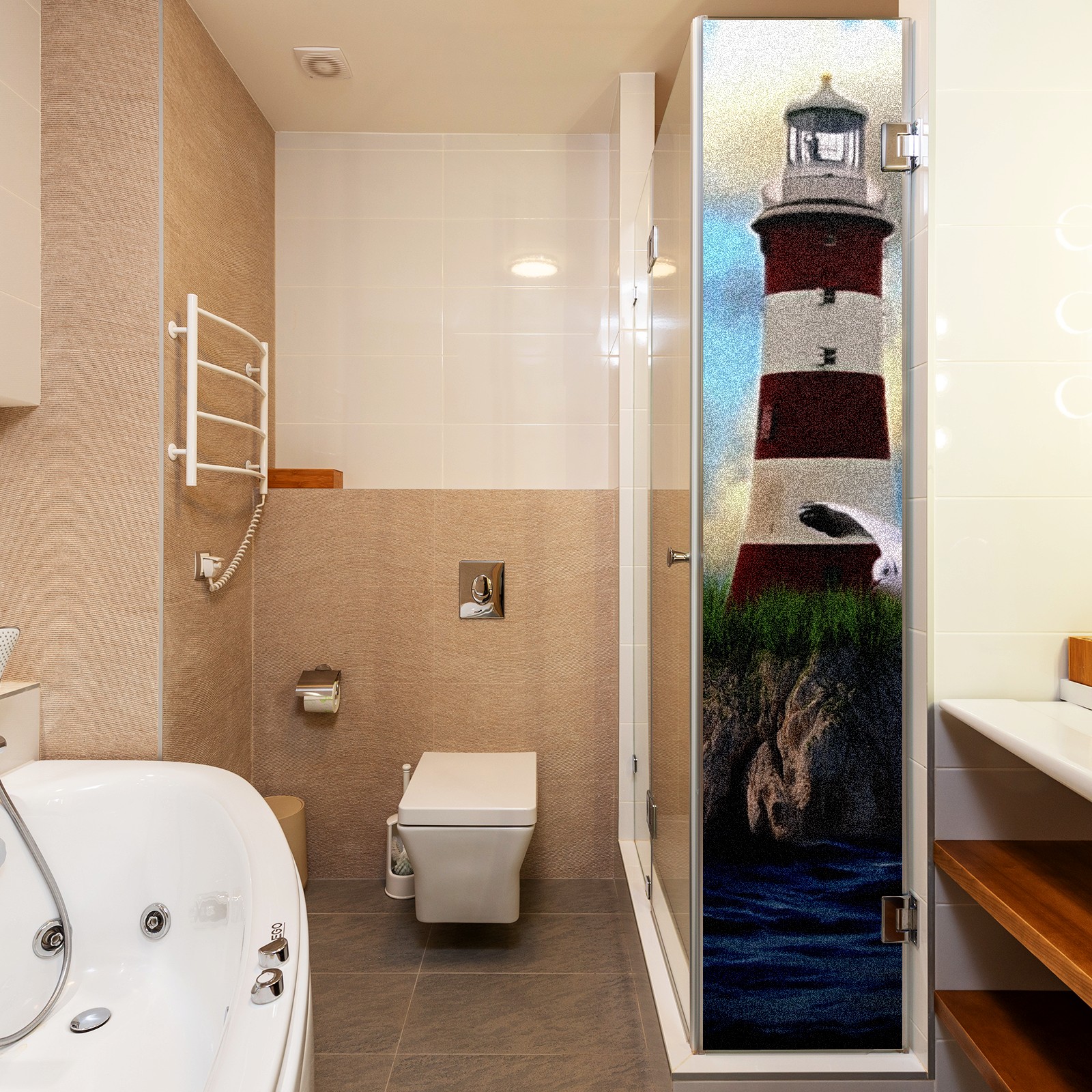 Static Cling Decorative Window Film Frosted Privacy Film Window Clings for Glass Windows No Glue Window Sticker for Bathroom Bedroom Office Sea Lighthouse Seagulls