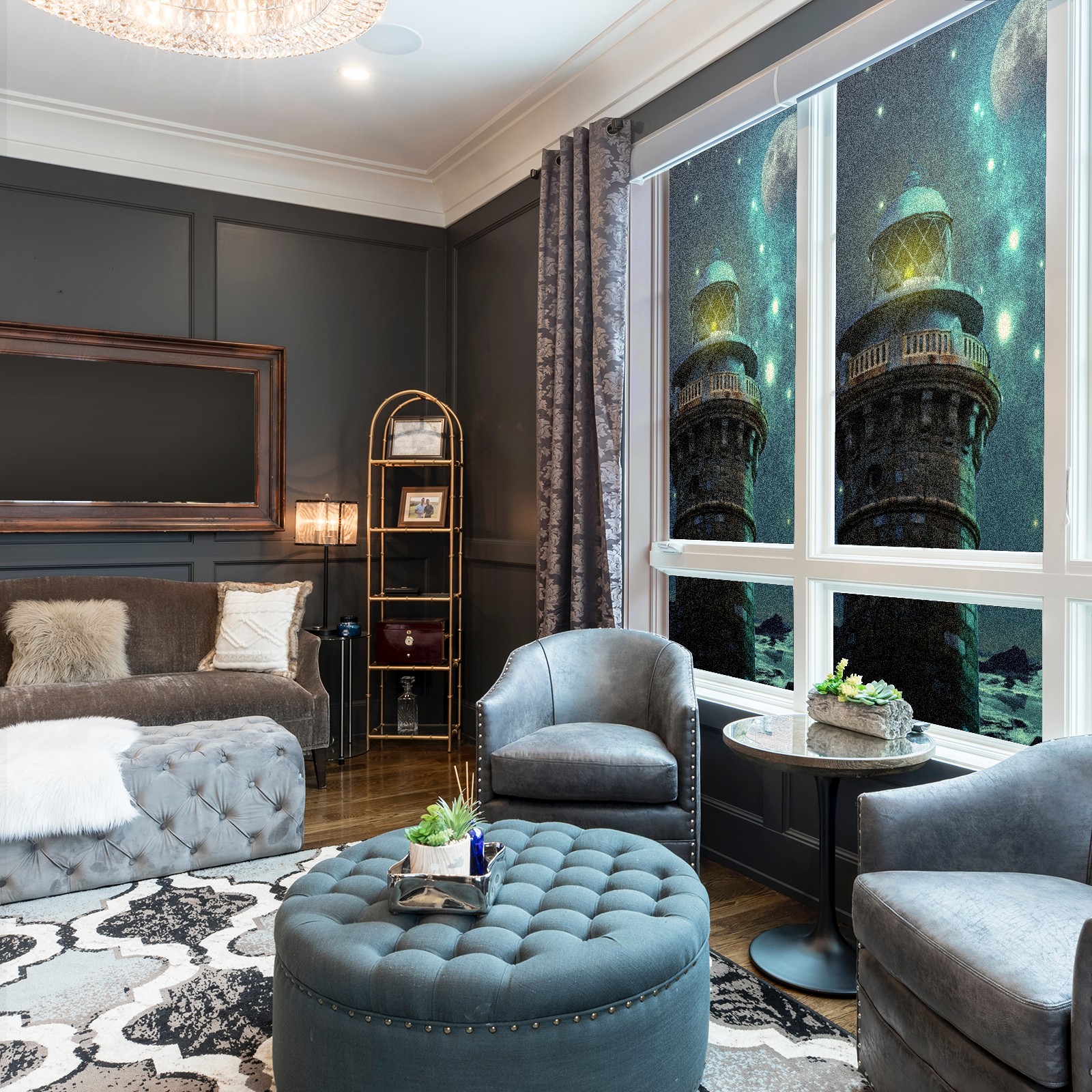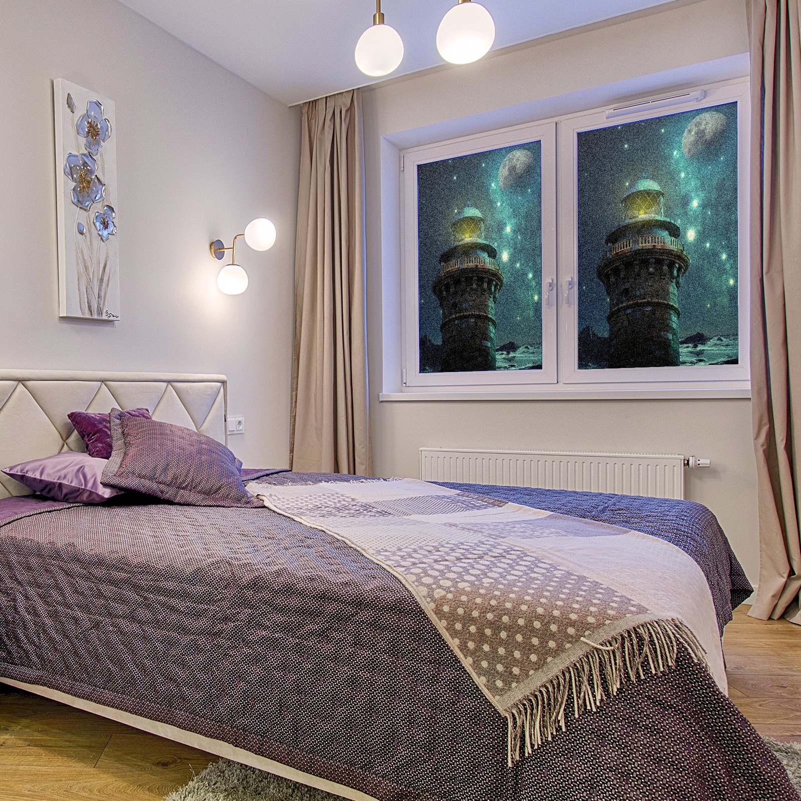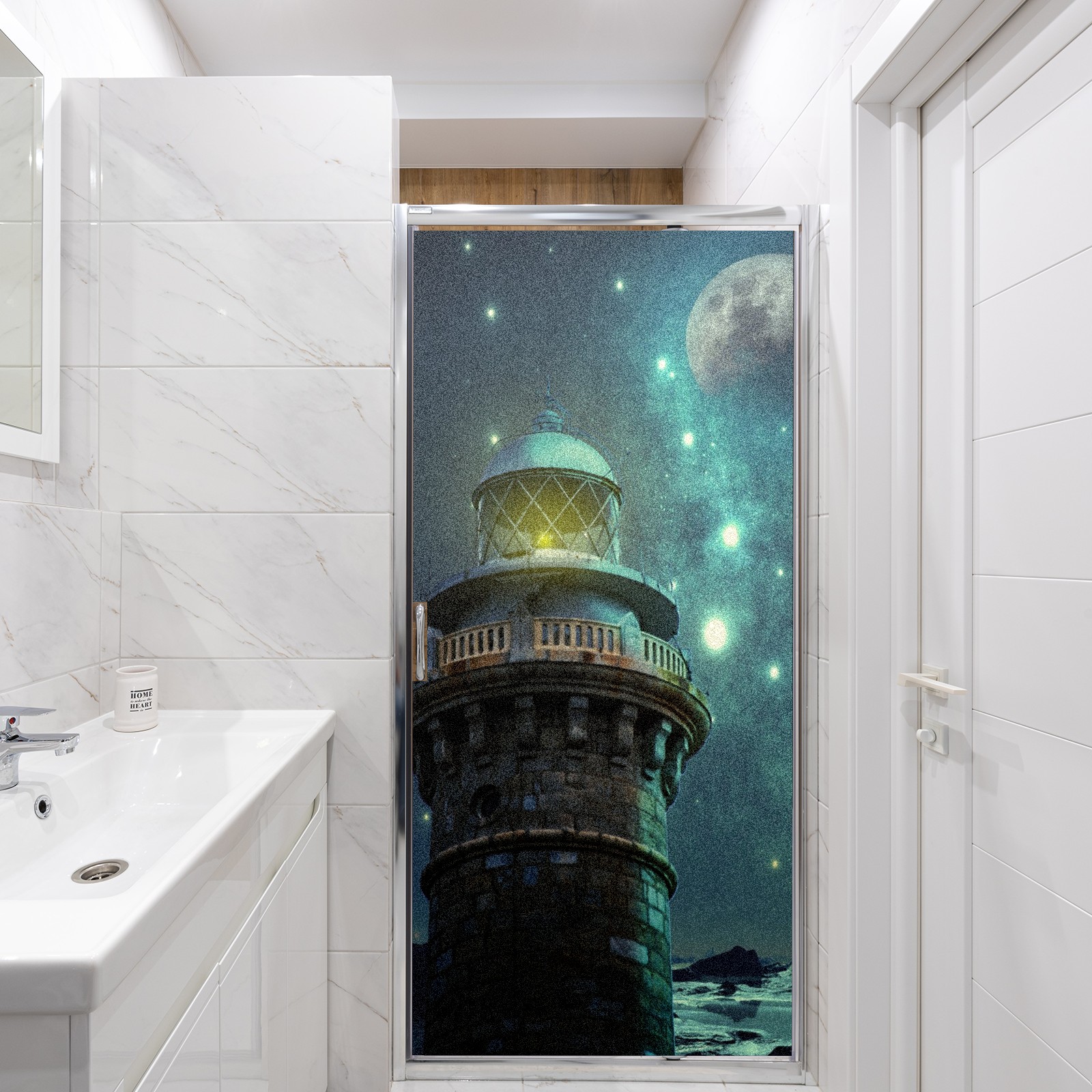 Static Cling Decorative Window Film Frosted Privacy Film Window Clings for Glass Windows No Glue Window Sticker for Bathroom Bedroom Office Fantasy Lighthouse