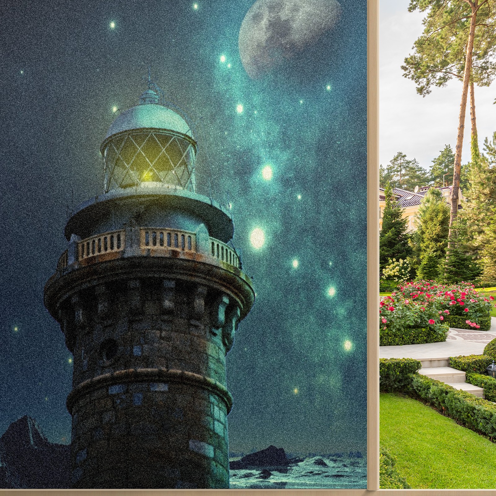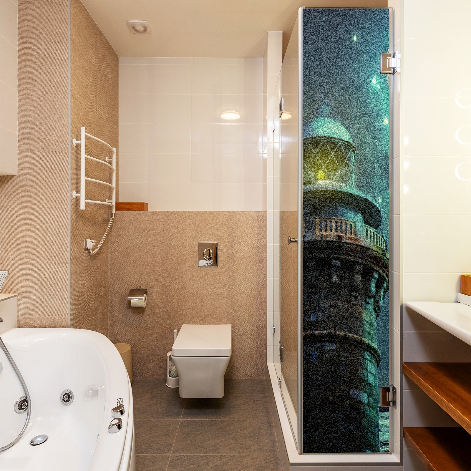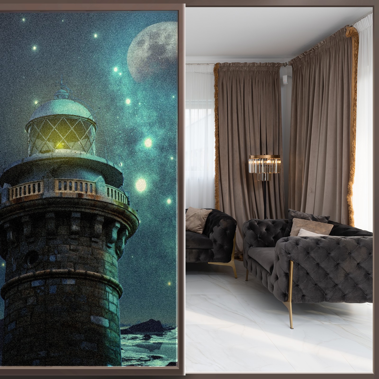 Static Cling Decorative Window Film Frosted Privacy Film Window Clings for Glass Windows No Glue Window Sticker for Bathroom Bedroom Office Fantasy Lighthouse