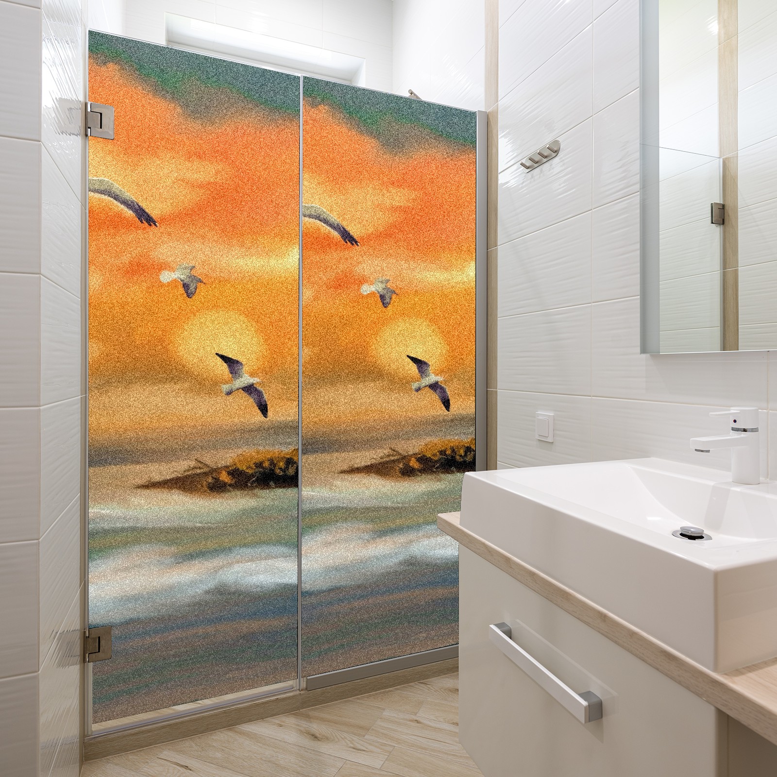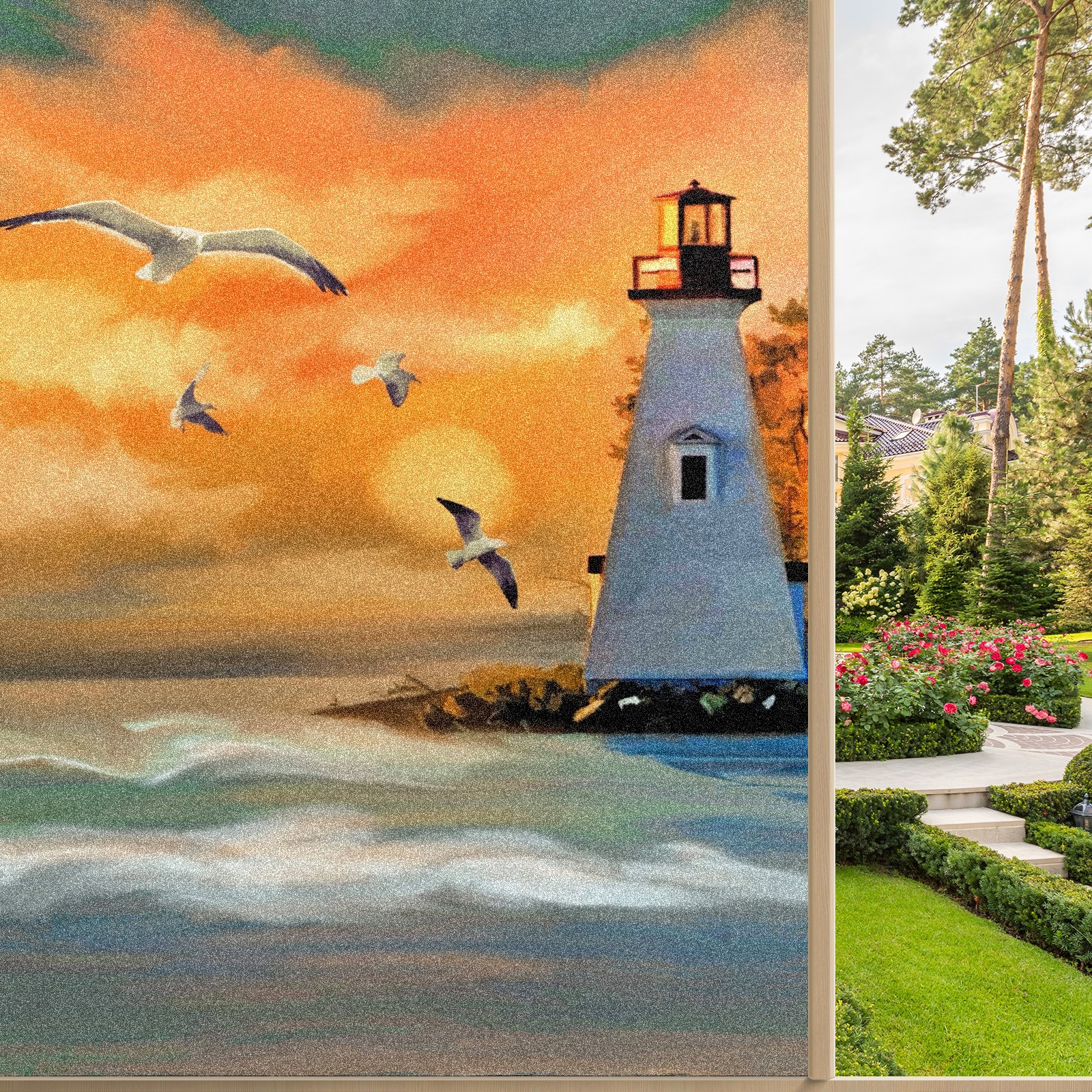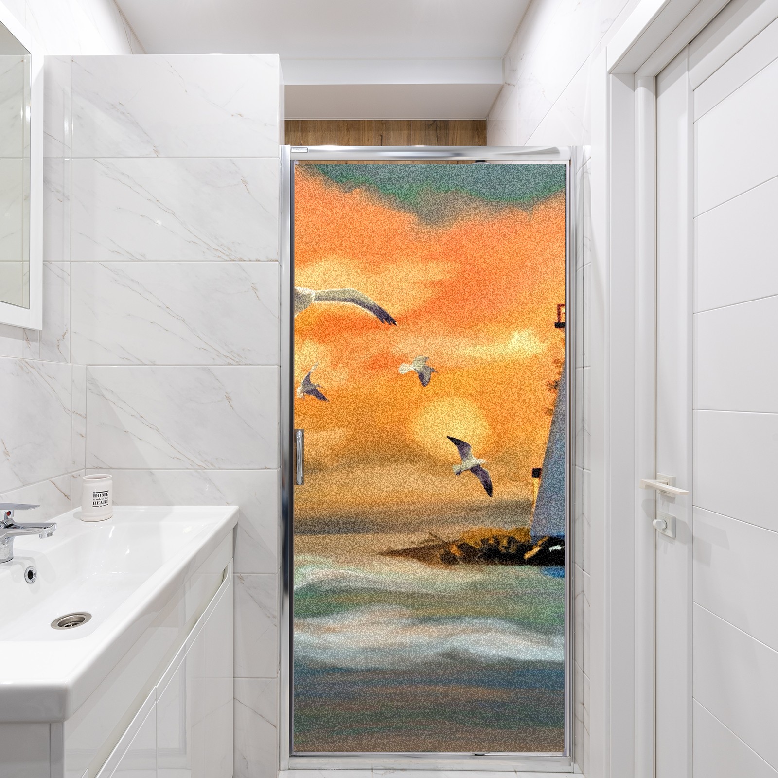 Static Cling Decorative Window Film Frosted Privacy Film Window Clings for Glass Windows No Glue Window Sticker for Bathroom Bedroom Office Seagull Lighthouse Ocean View