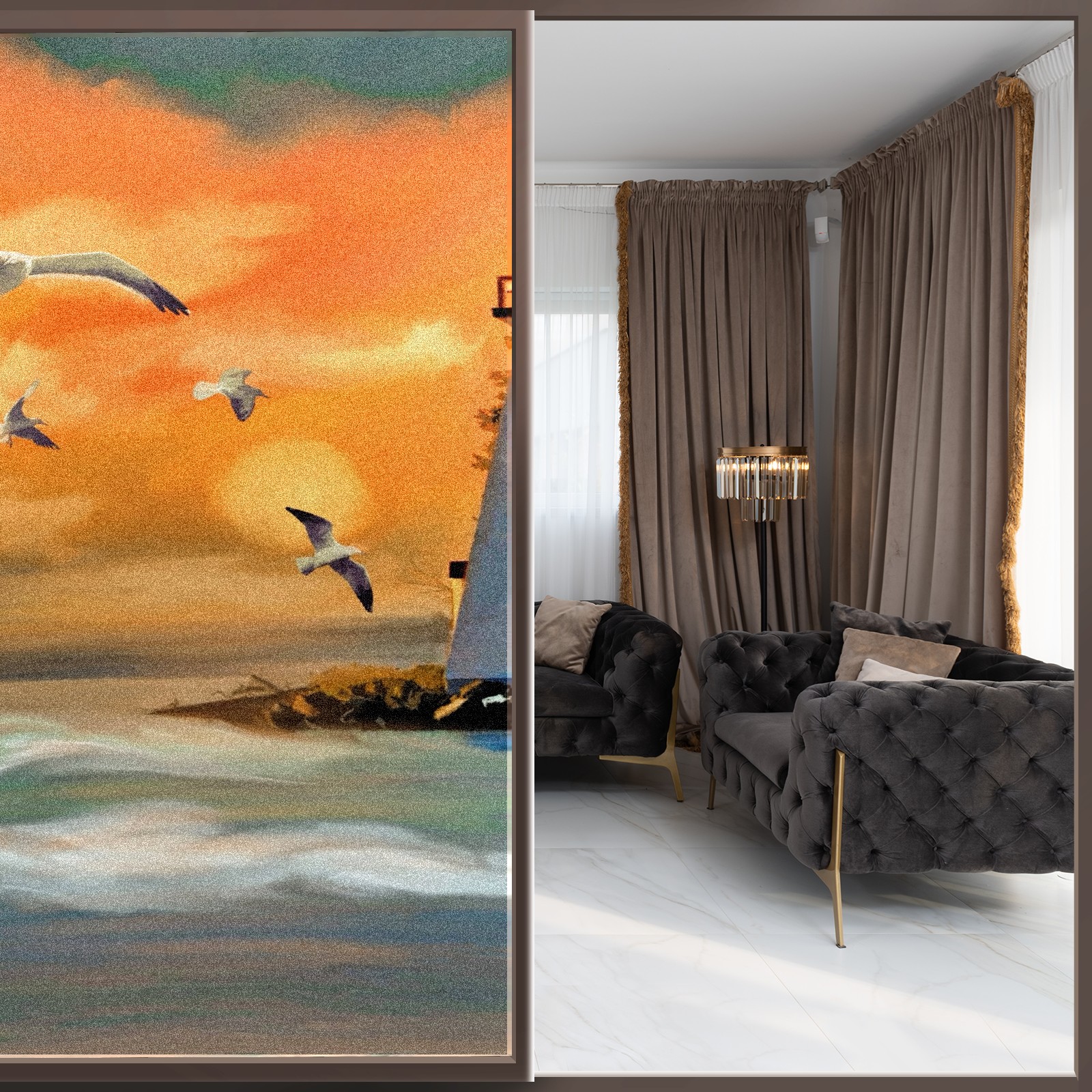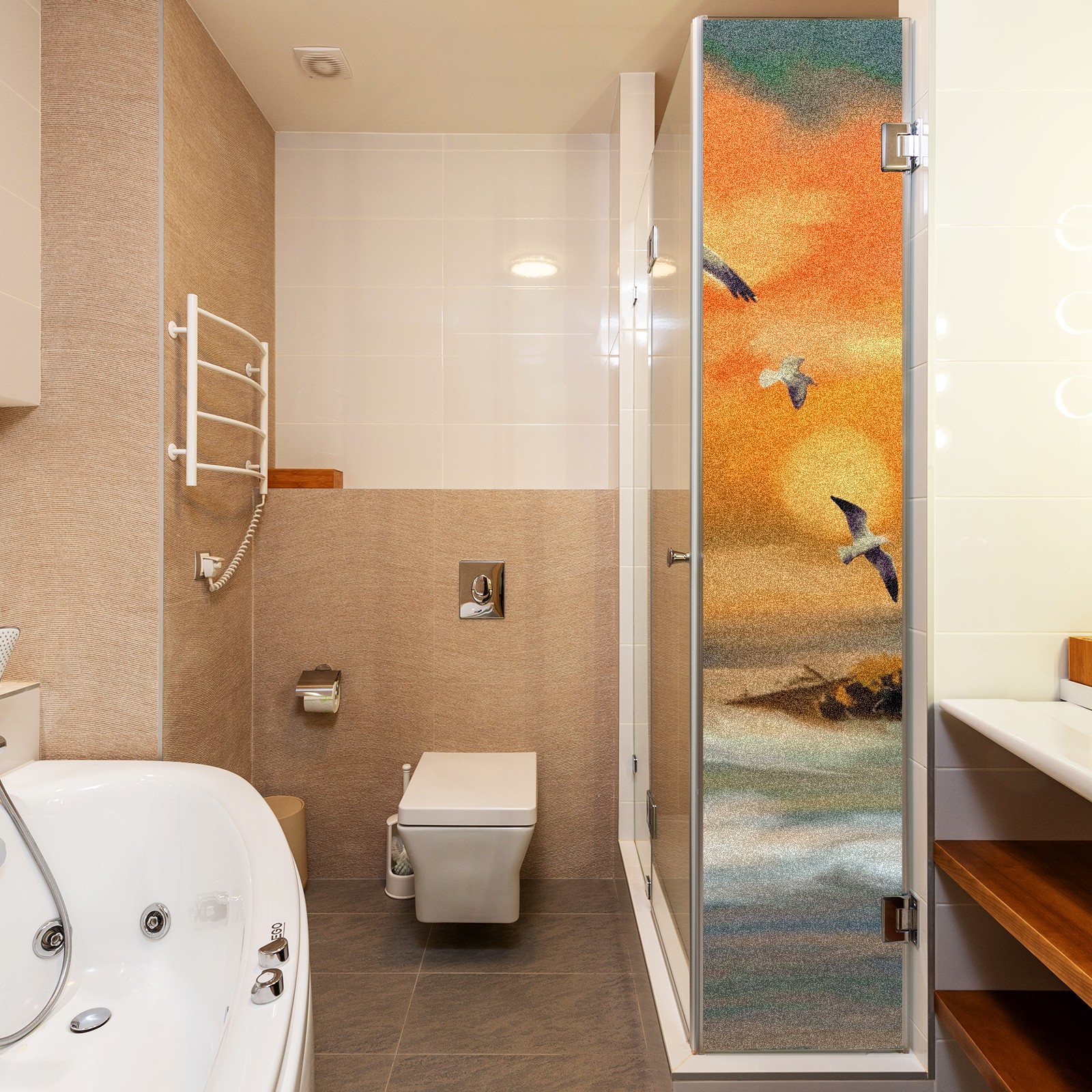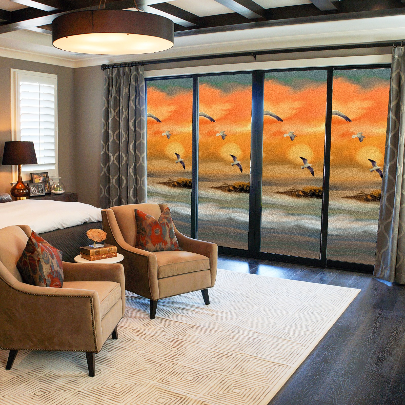Static Cling Decorative Window Film Frosted Privacy Film Window Clings for Glass Windows No Glue Window Sticker for Bathroom Bedroom Office Seagull Lighthouse Ocean View