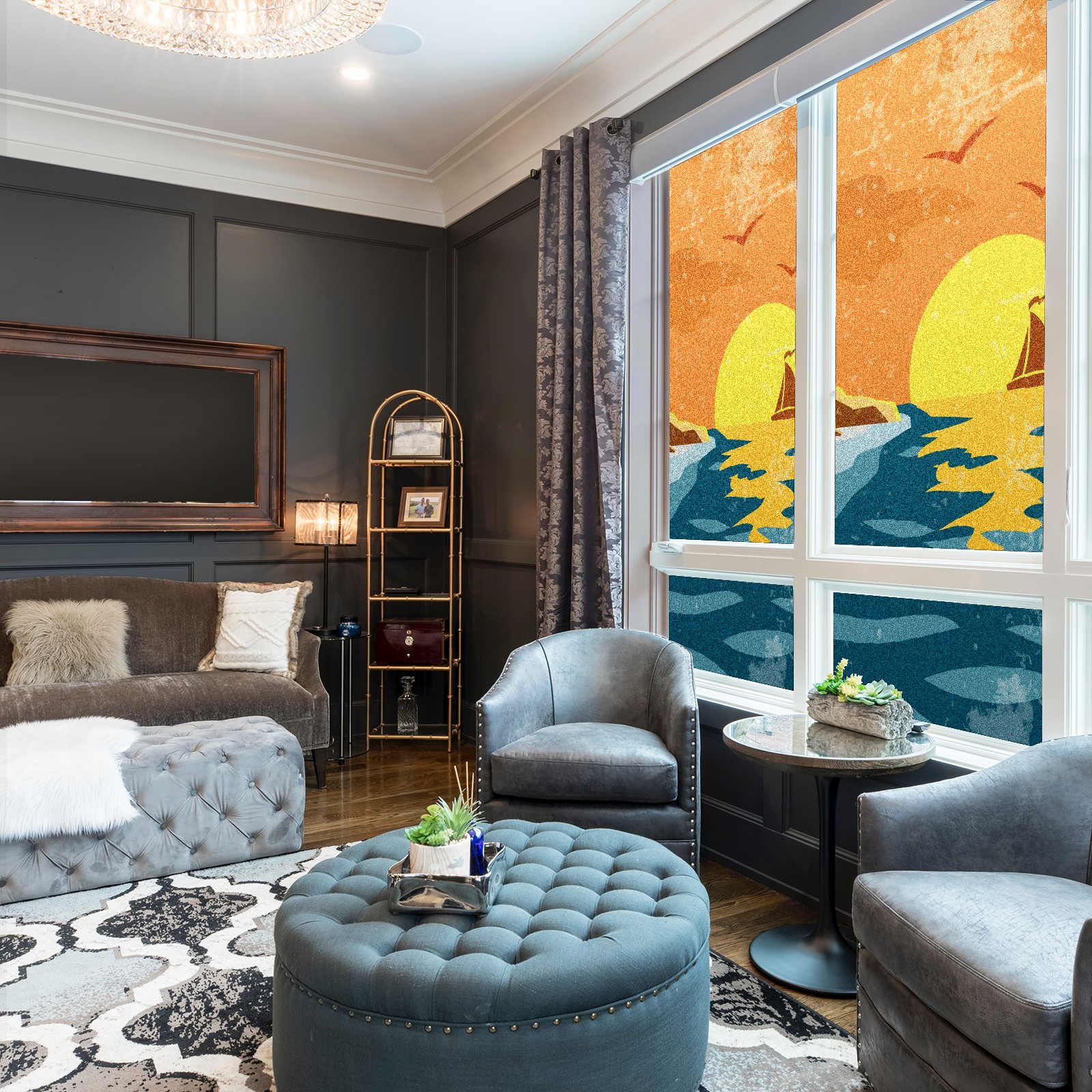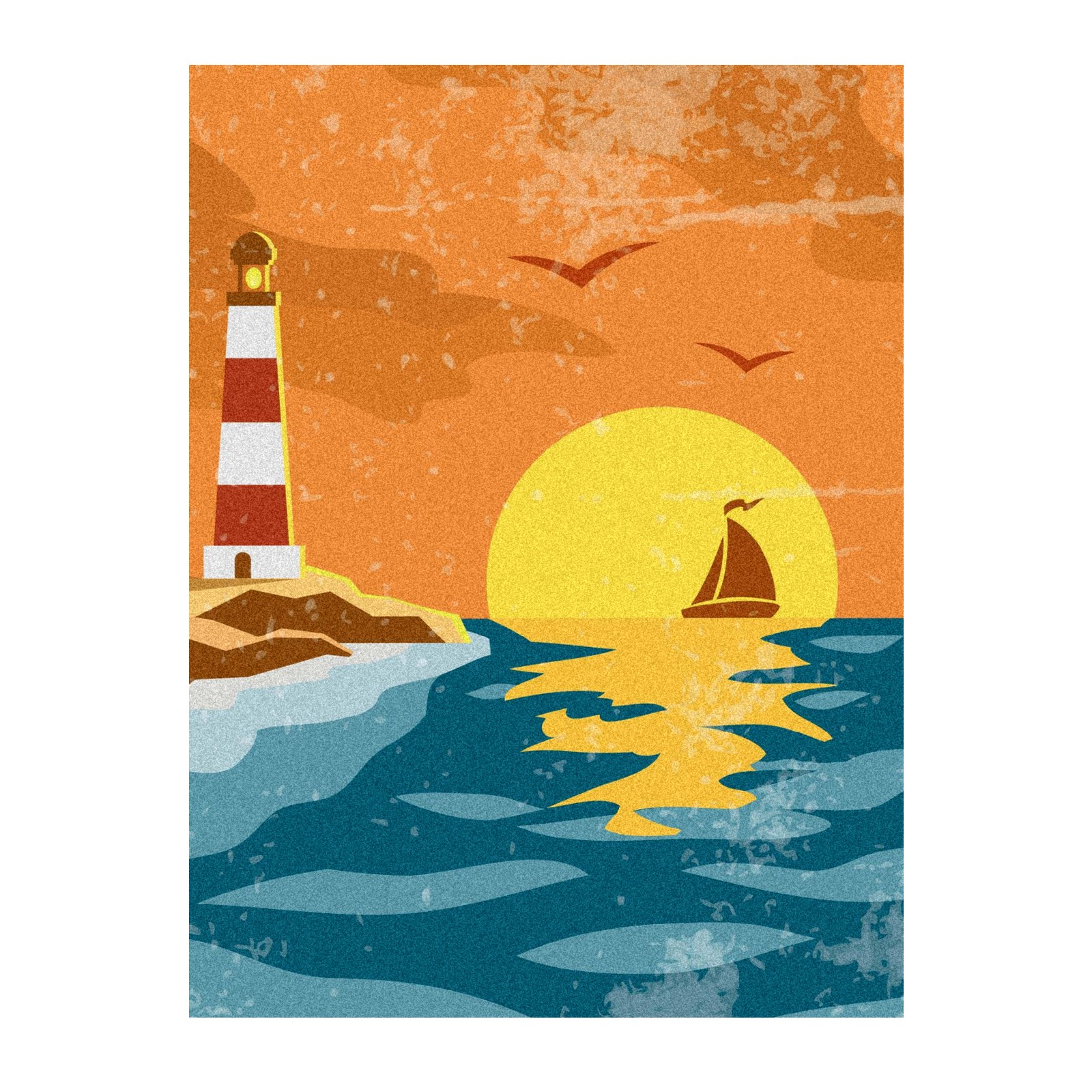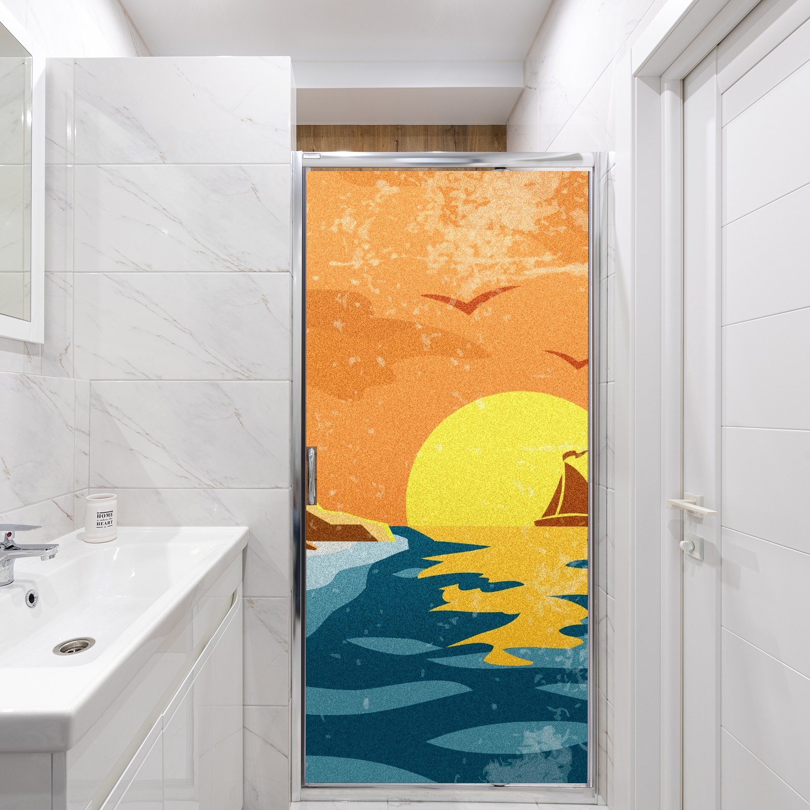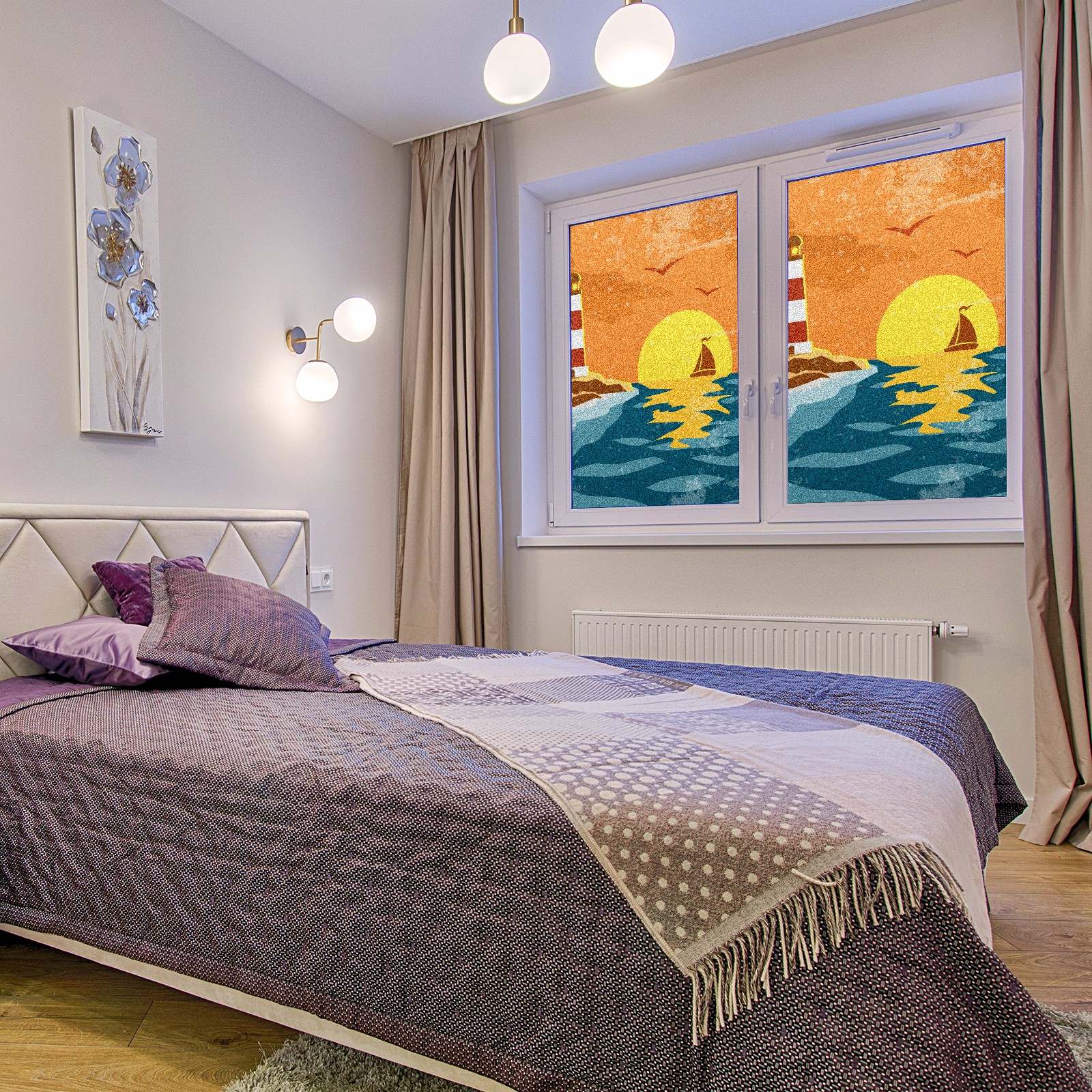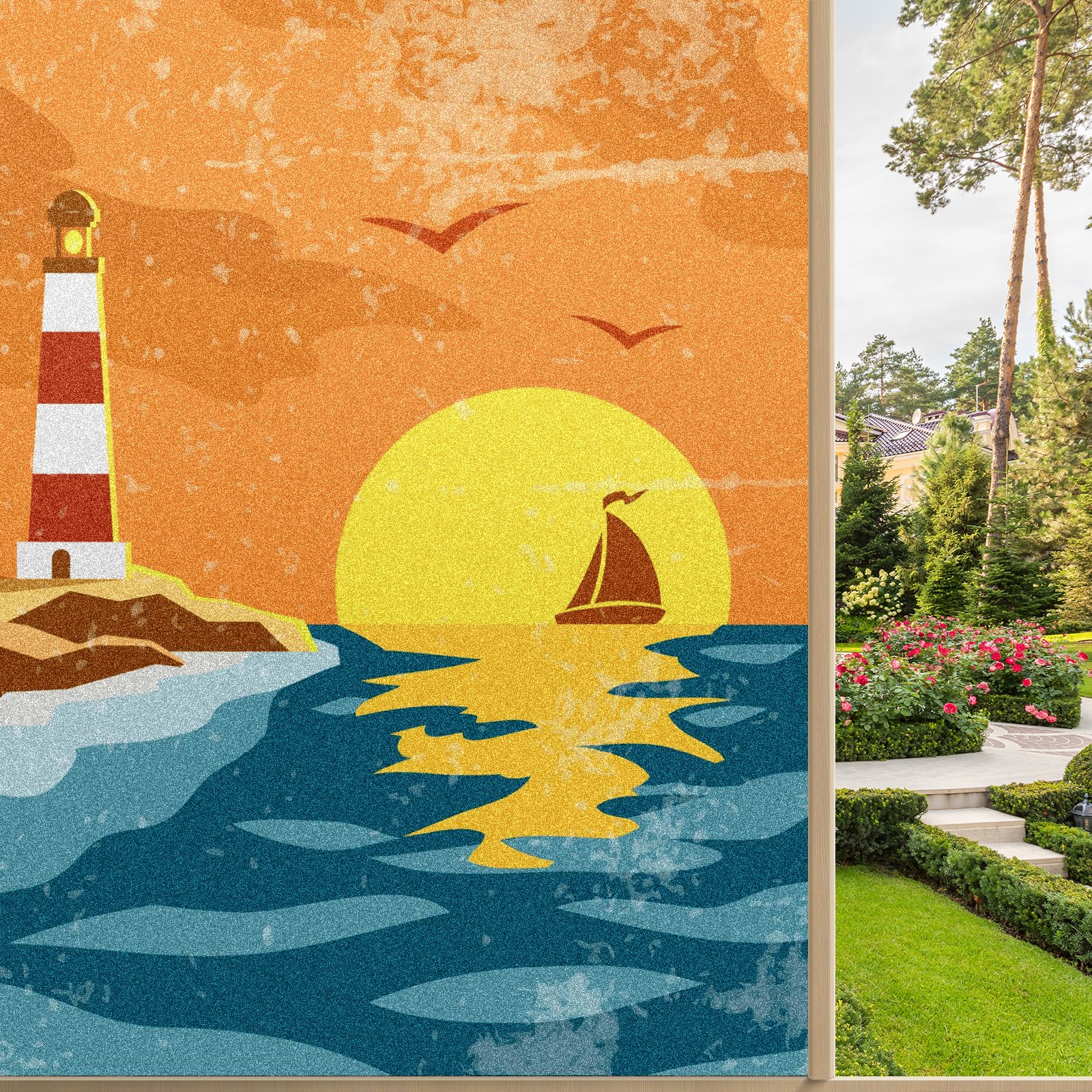 Static Cling Decorative Window Film Frosted Privacy Film Window Clings for Glass Windows No Glue Window Sticker for Bathroom Bedroom Office Sea Lighthouse Retro