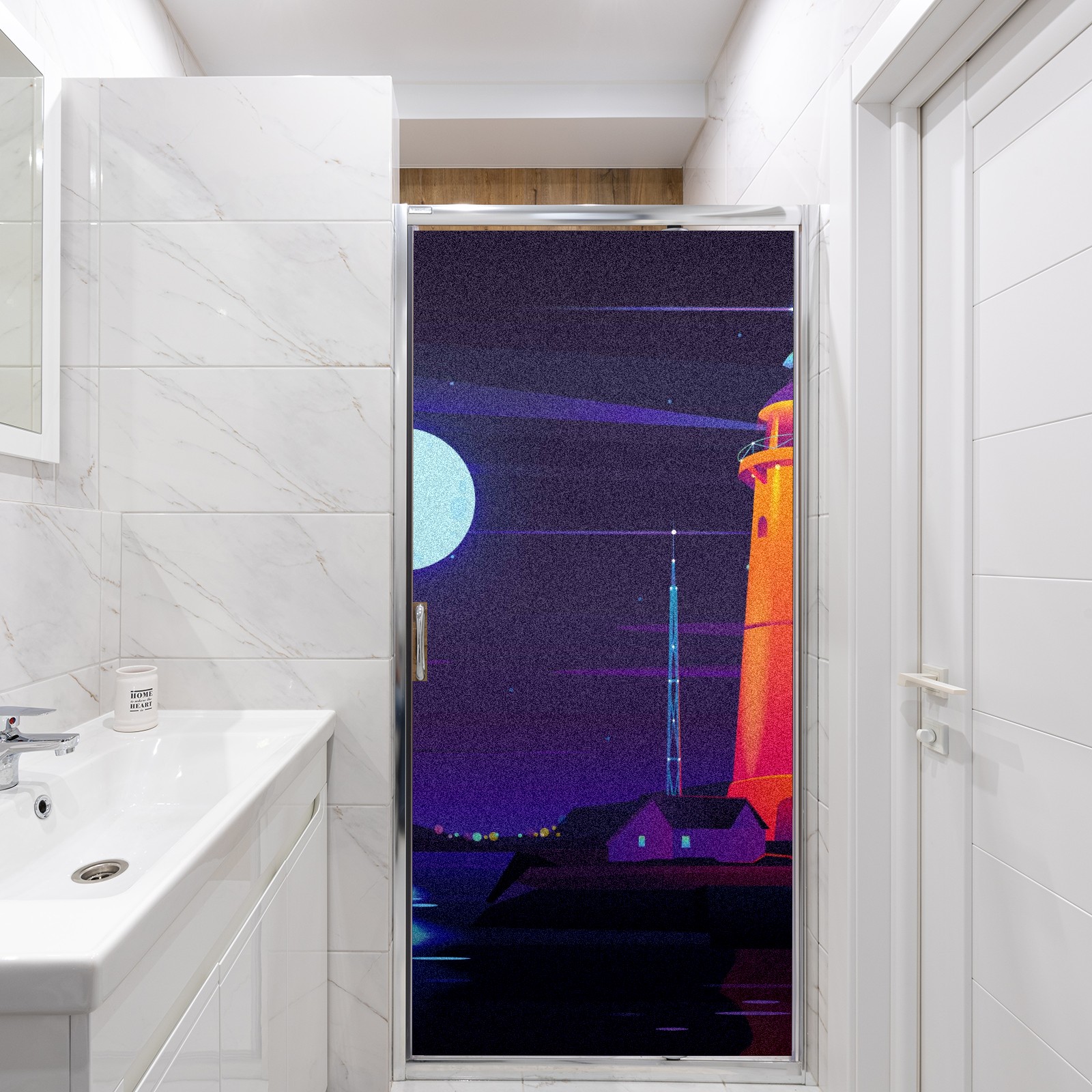 Static Cling Decorative Window Film Frosted Privacy Film Window Clings for Glass Windows No Glue Window Sticker for Bathroom Bedroom Office Lighthouse Beach