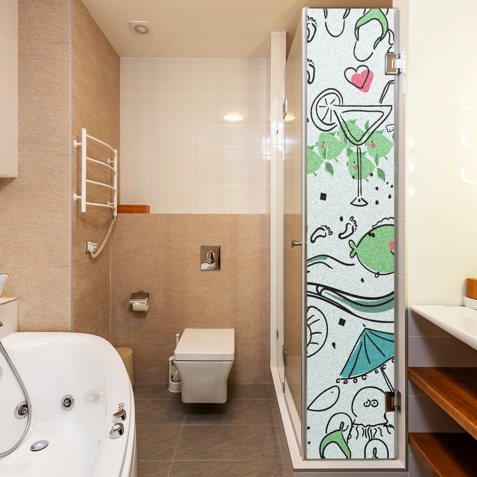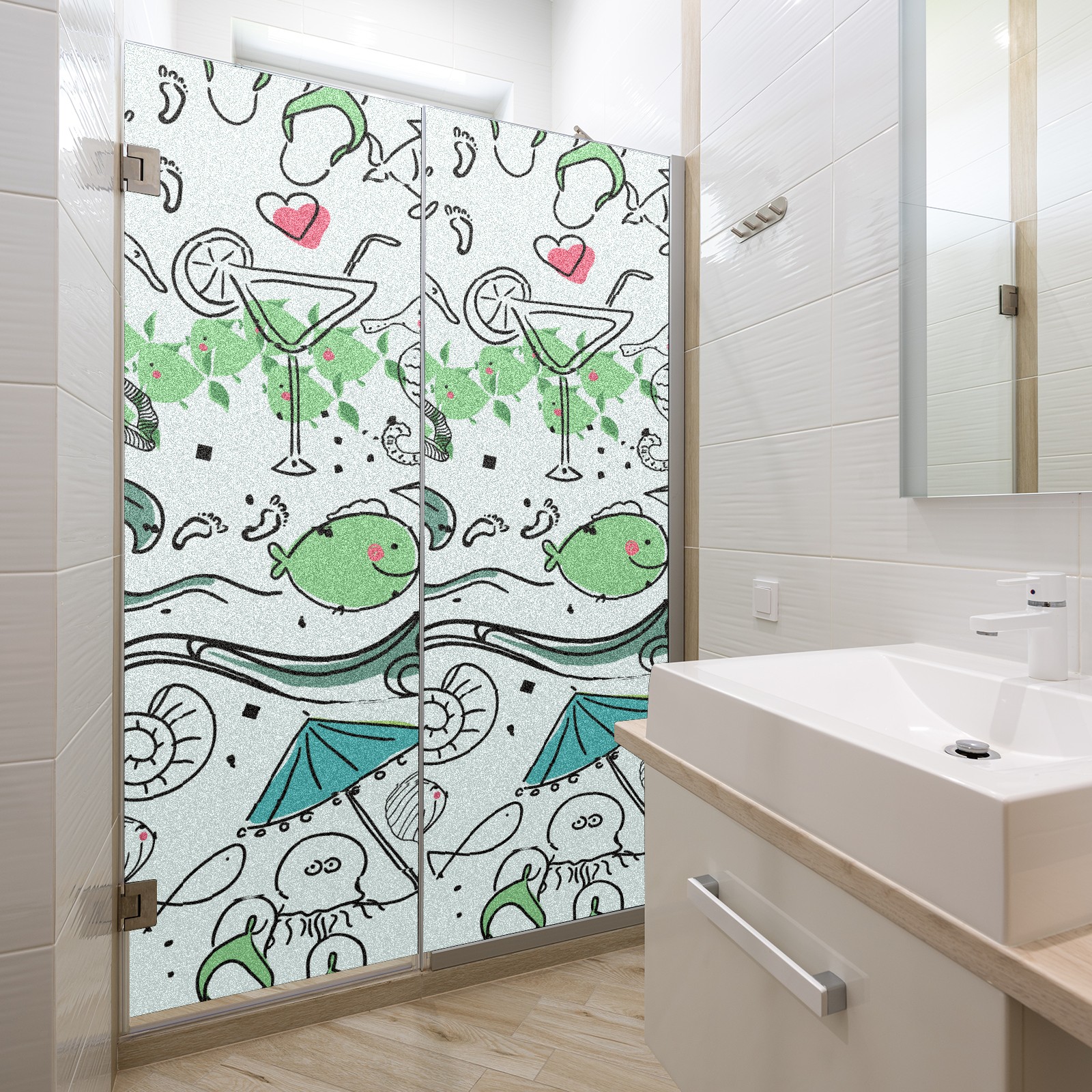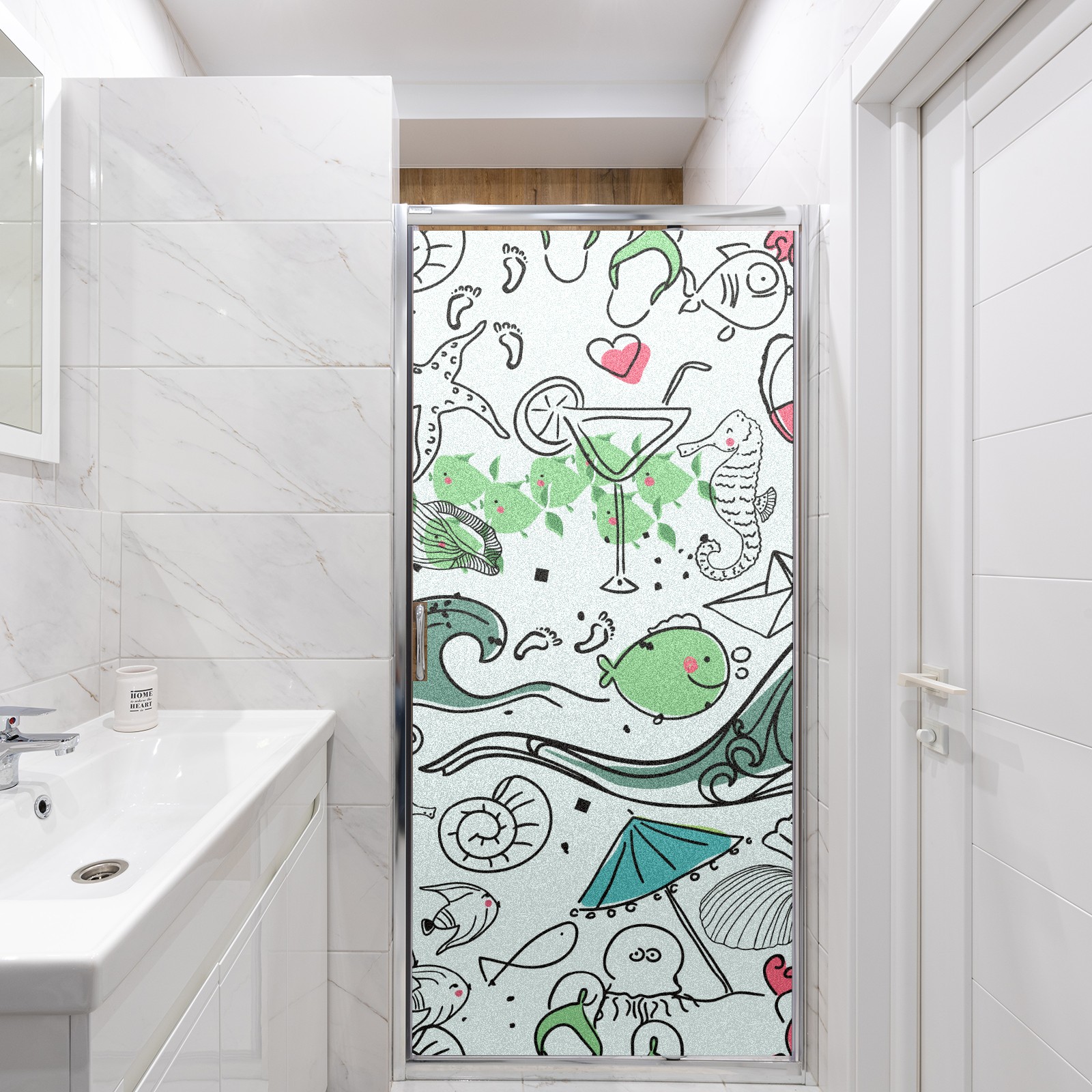 Static Cling Decorative Window Film Frosted Privacy Film Window Clings for Glass Windows No Glue Window Sticker for Bathroom Bedroom Office Lighthouse Seahorse Wave Fish
