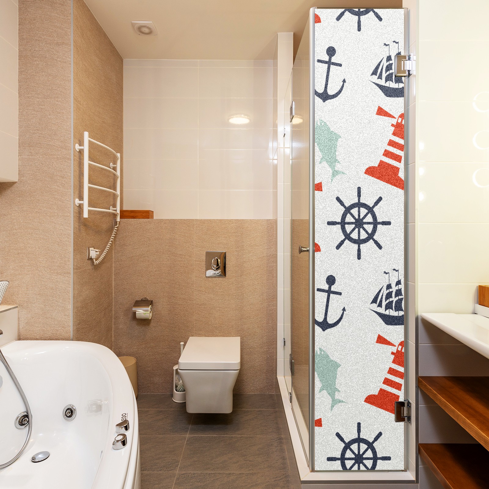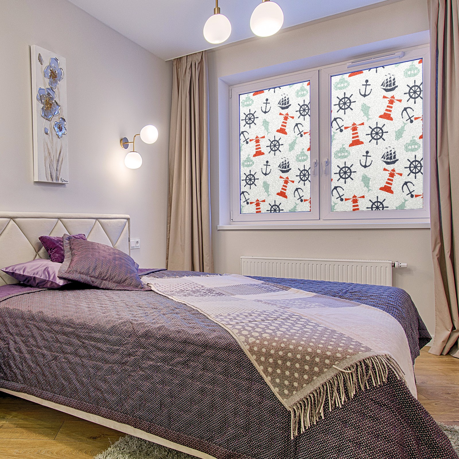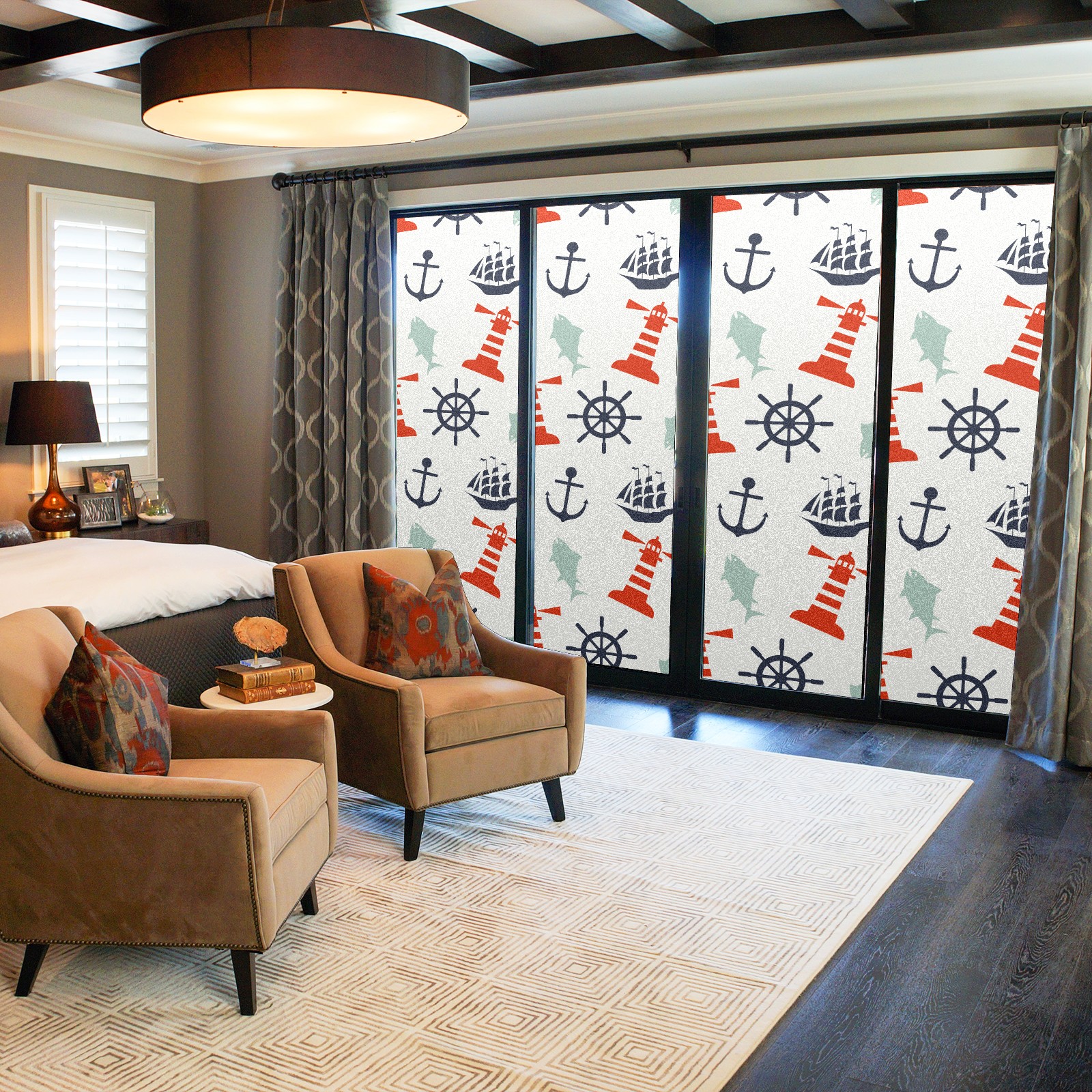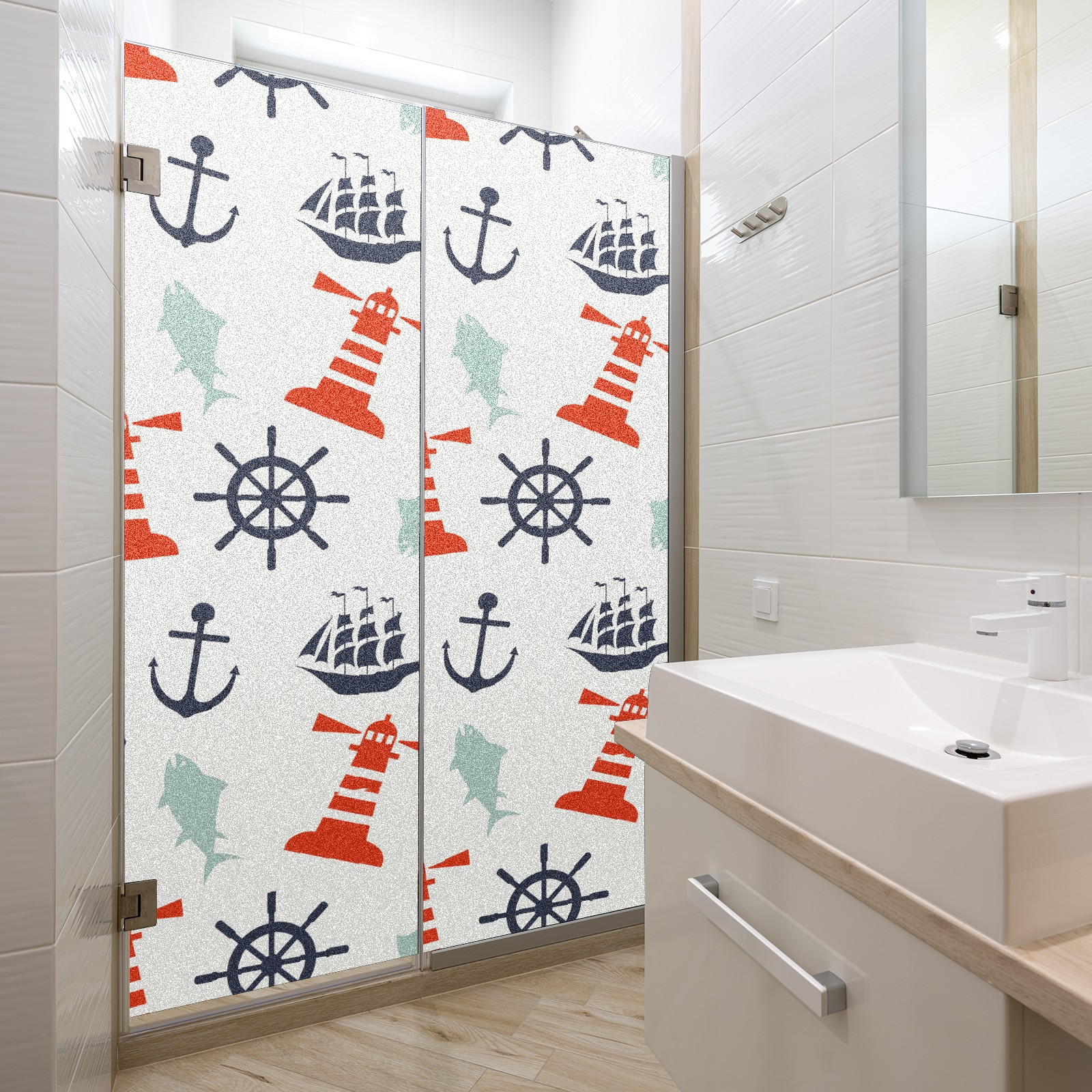 Static Cling Decorative Window Film Frosted Privacy Film Window Clings for Glass Windows No Glue Window Sticker for Bathroom Bedroom Office Lighthouse Rudder Anchor Boat Pattern
