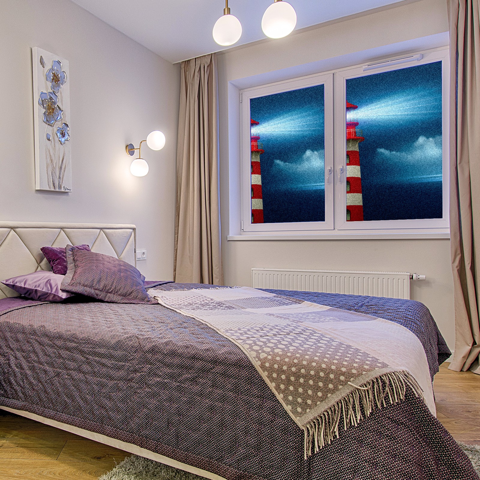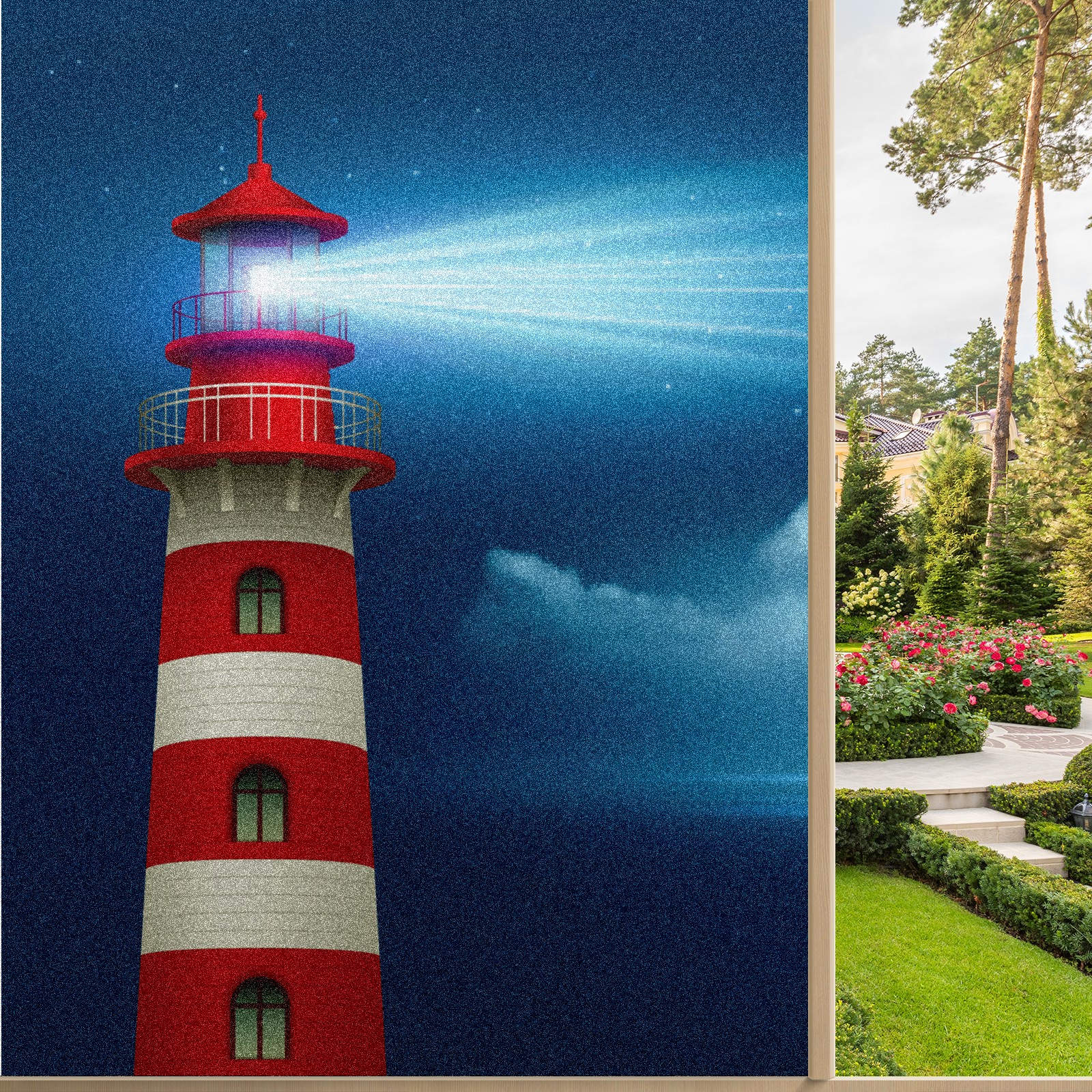 Static Cling Decorative Window Film Frosted Privacy Film Window Clings for Glass Windows No Glue Window Sticker for Bathroom Bedroom Office Ocean Coastal Lighthouse