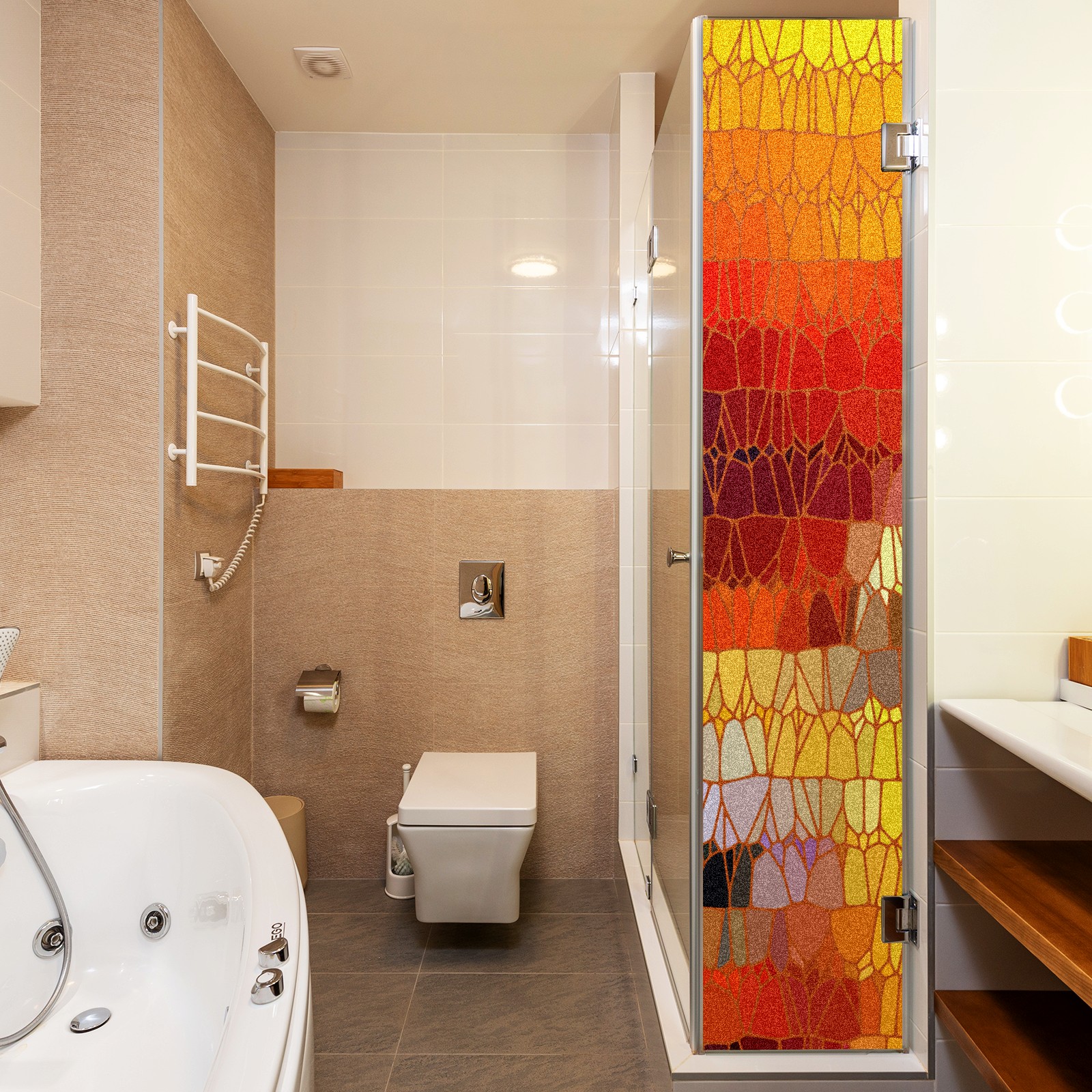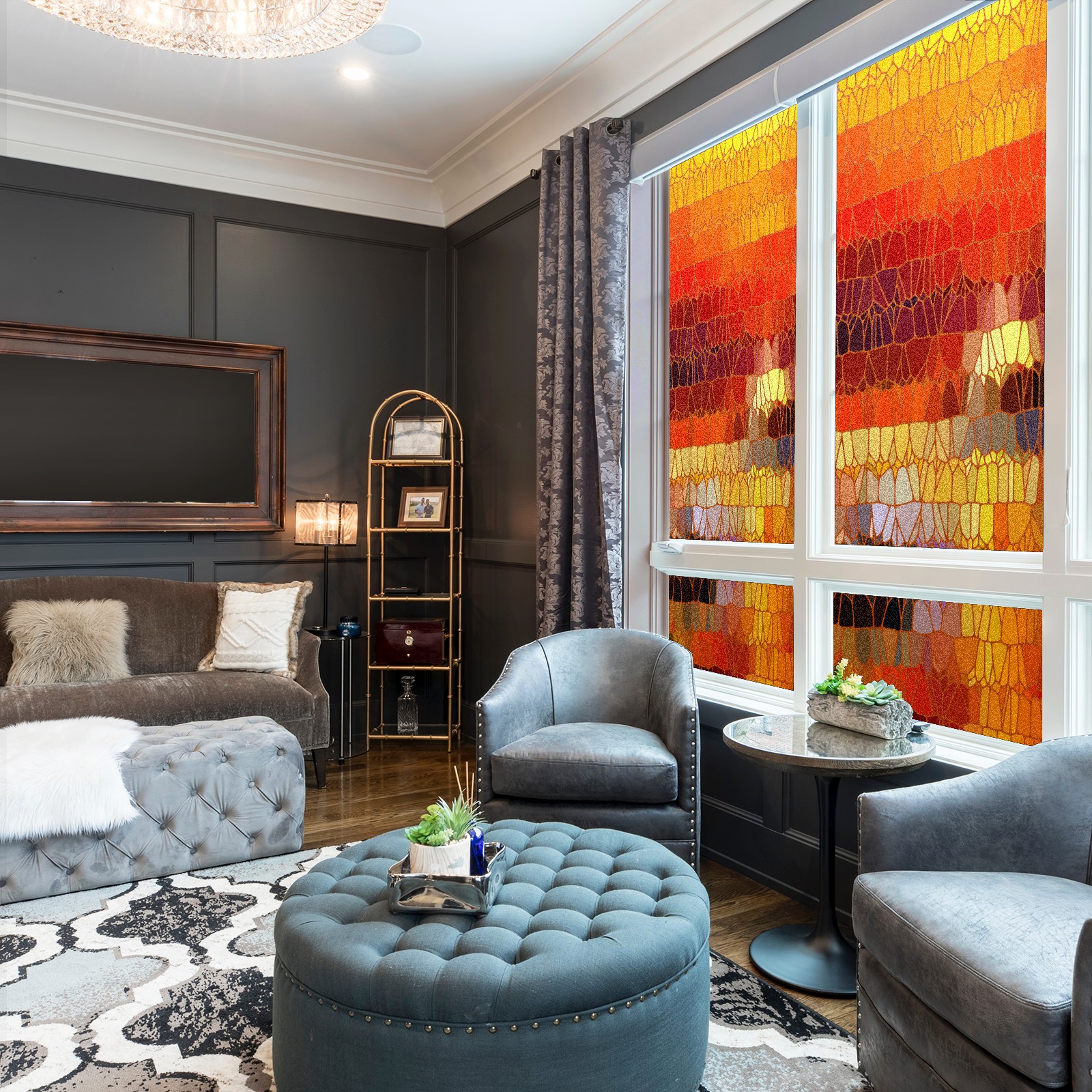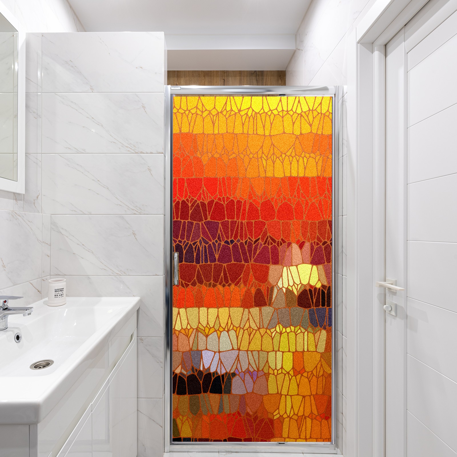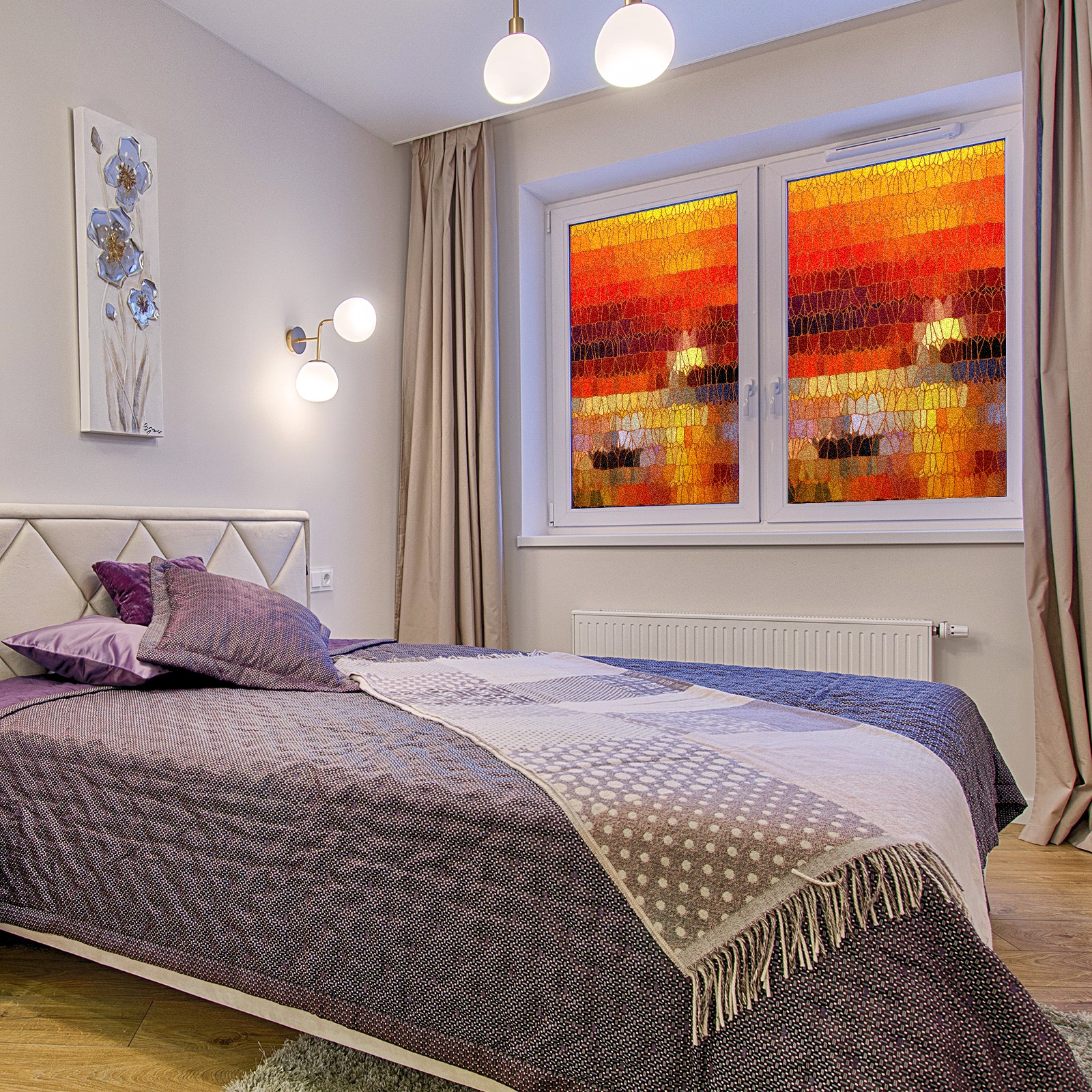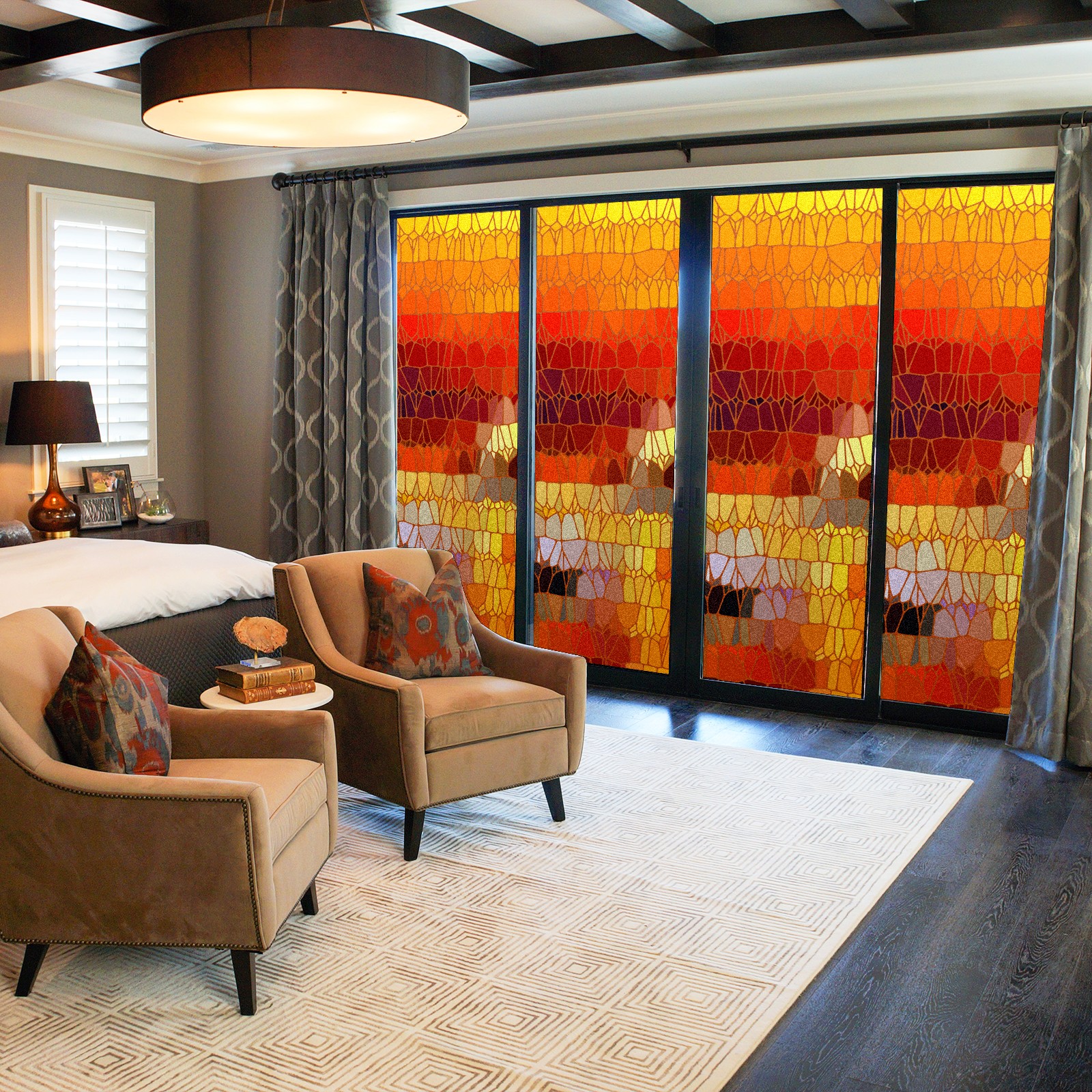 Static Cling Decorative Window Film Frosted Privacy Film Window Clings for Glass Windows No Glue Window Sticker for Bathroom Bedroom Office Vintage Stained Glass Sunset