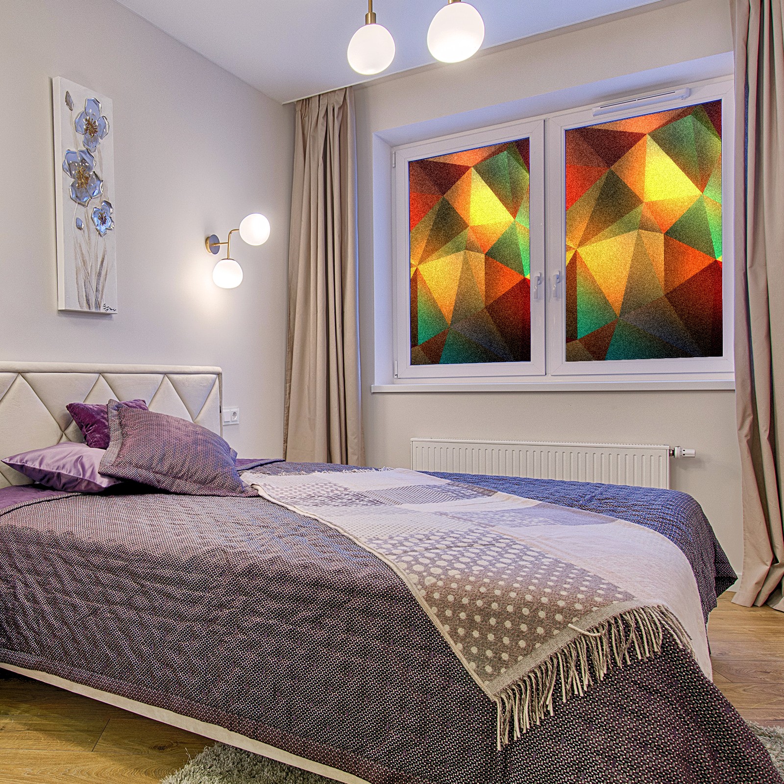 Static Cling Decorative Window Film Frosted Privacy Film Window Clings for Glass Windows No Glue Window Sticker for Bathroom Bedroom Office Colorful Stained Glass