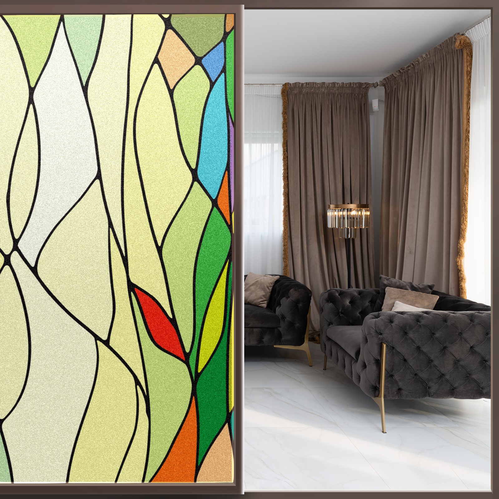 Transform Your House to Home with BRTURLAIR Frosted Glass Window Film! ●BRTURLAIR Window Film with Graphic Printings, Bright and Vivid Color, Our Window Clings are Great Home Decoration. ●This one-way window tint offers excellent sun blocking capabilities, effectively reducing heat and glare, while still allowing natural light into your space. ●With its non-adhesive static cling technology, installation is a breeze. ●Plus, it’s reusable, making it perfect for renters. Installation Tips: Before installation, please make sure the window surface, edges and corners are clean enough without any dust; during installation, please spray a lot of water both on the window surface and window film back for effective attachment; after installation, please trim the margins and leave edge gaps to squeeze out air bubbles easily.