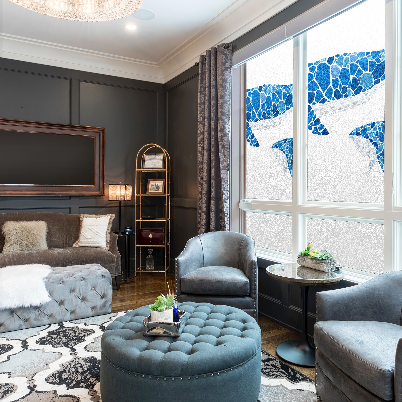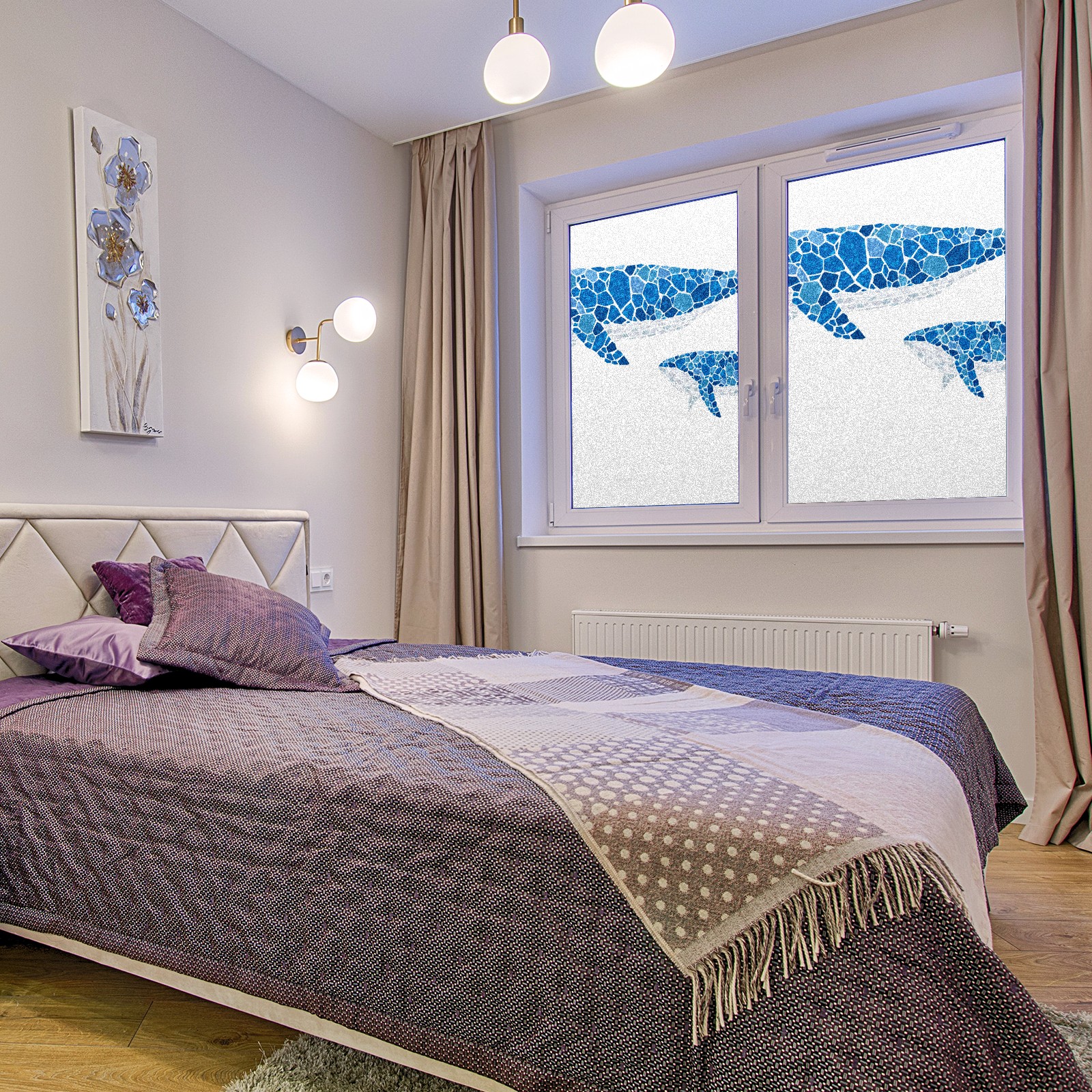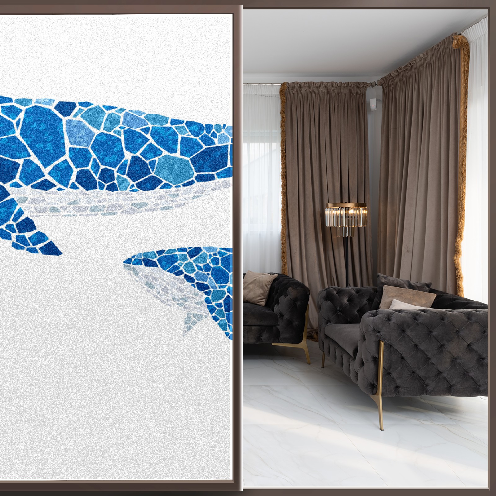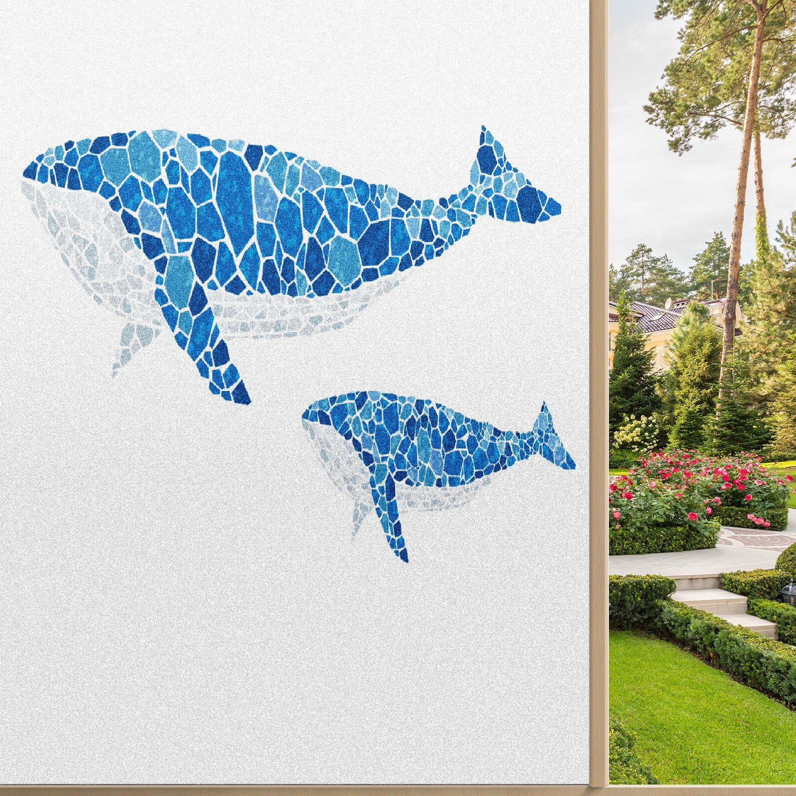 Static Cling Decorative Window Film Frosted Privacy Film Window Clings for Glass Windows No Glue Window Sticker for Bathroom Bedroom Office Stained Glass Whale