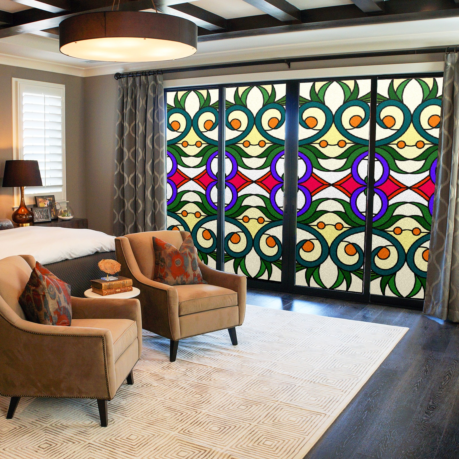 Static Cling Decorative Window Film Frosted Privacy Film Window Clings for Glass Windows No Glue Window Sticker for Bathroom Bedroom Office Stained Glass Flower Leaves