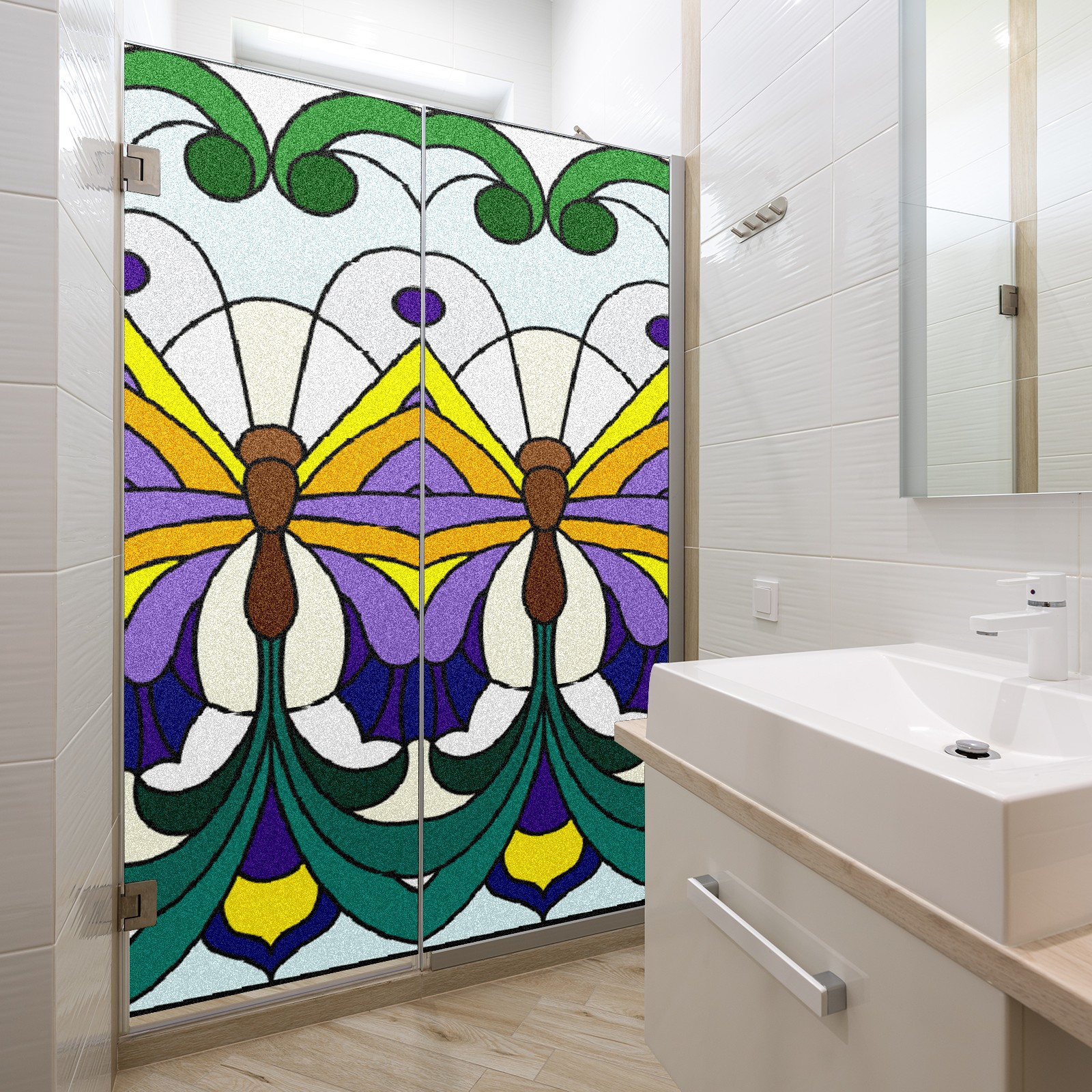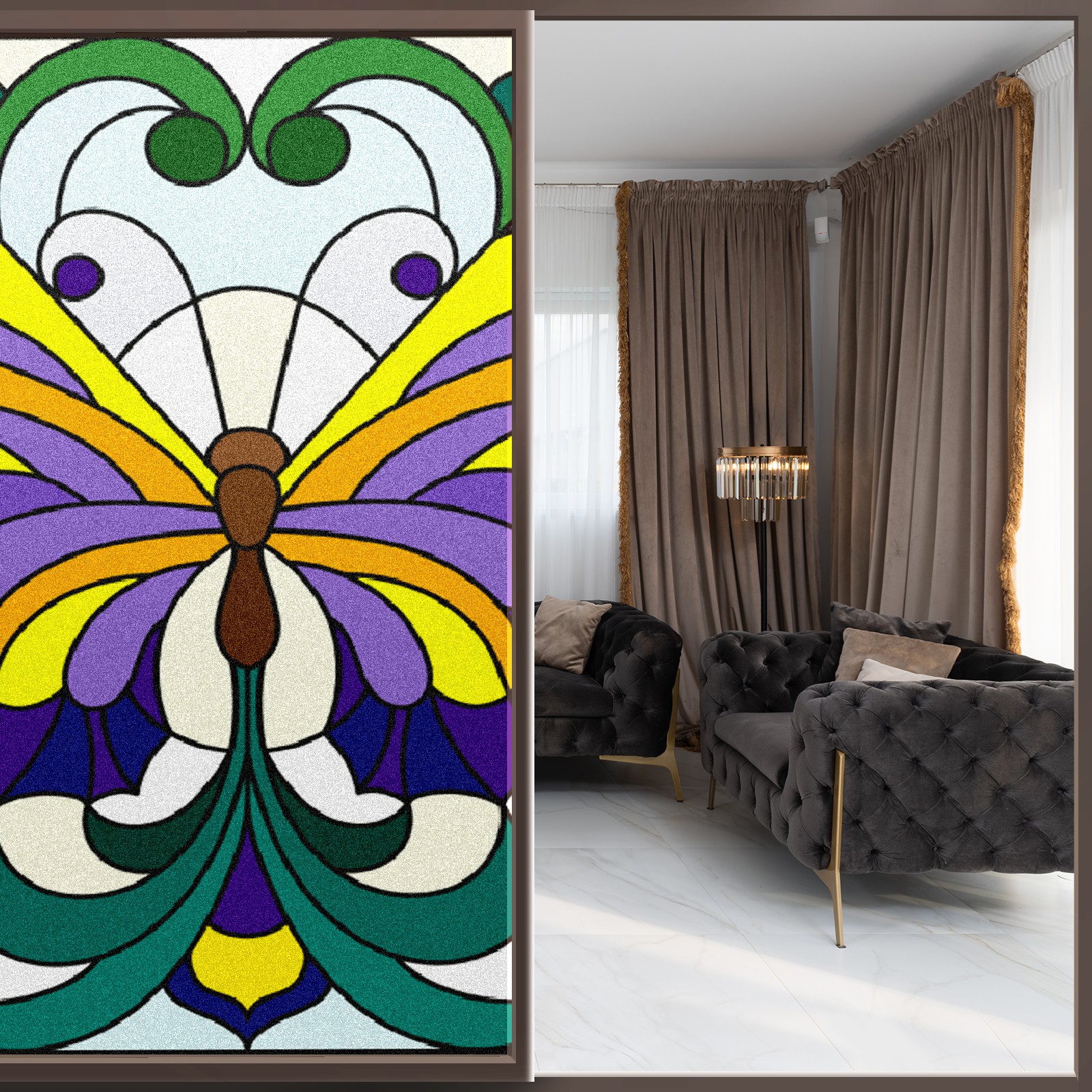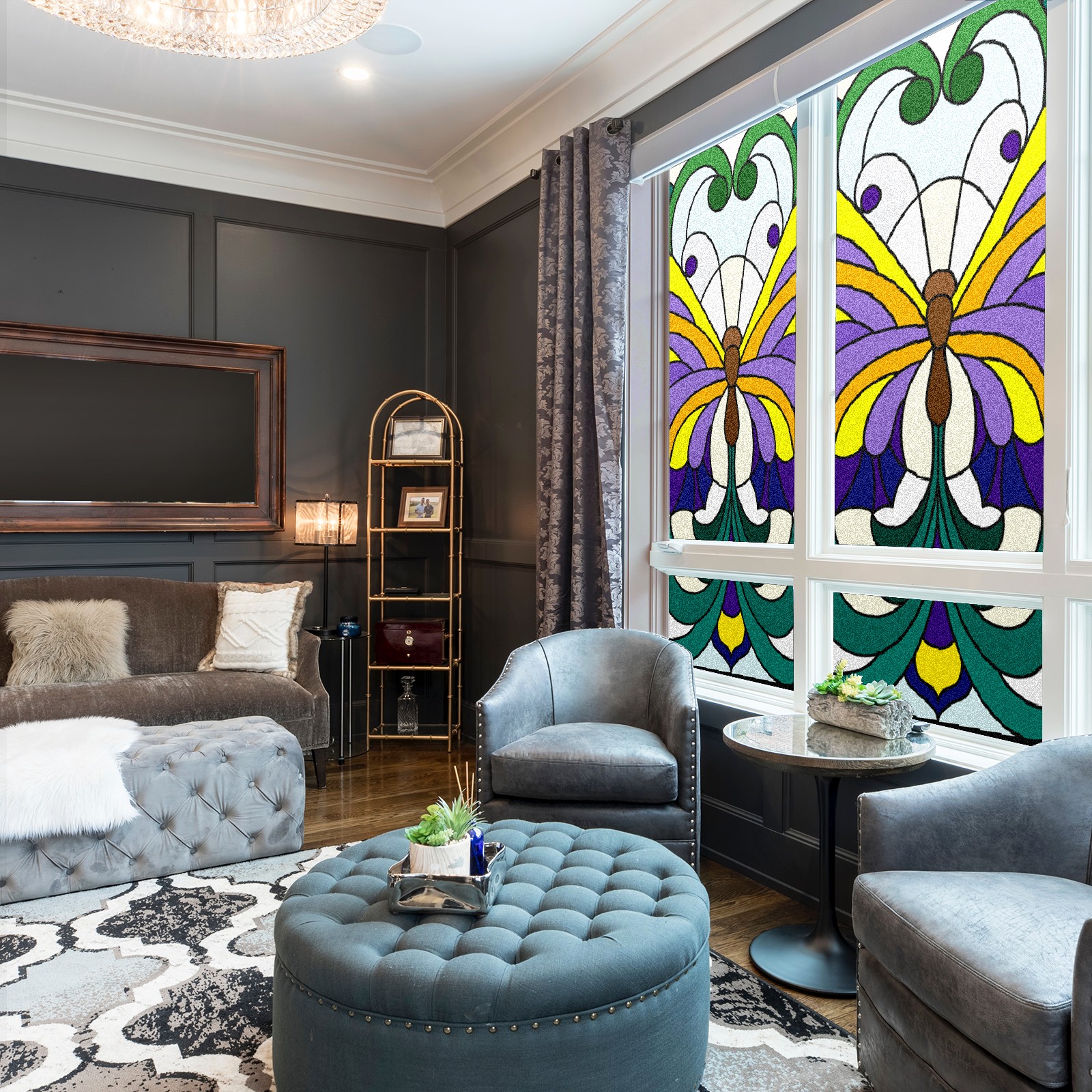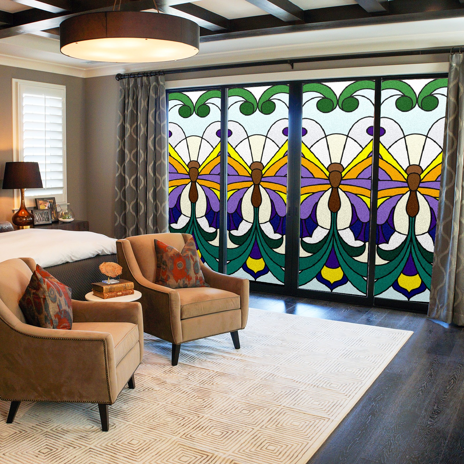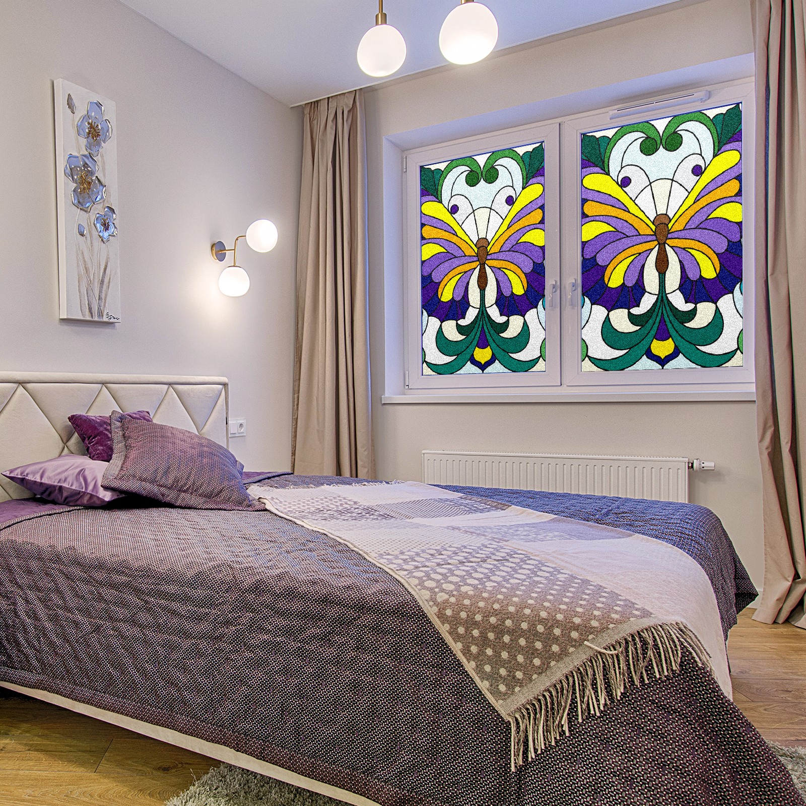Static Cling Decorative Window Film Frosted Privacy Film Window Clings for Glass Windows No Glue Window Sticker for Bathroom Bedroom Office Stained Glass Butterfly