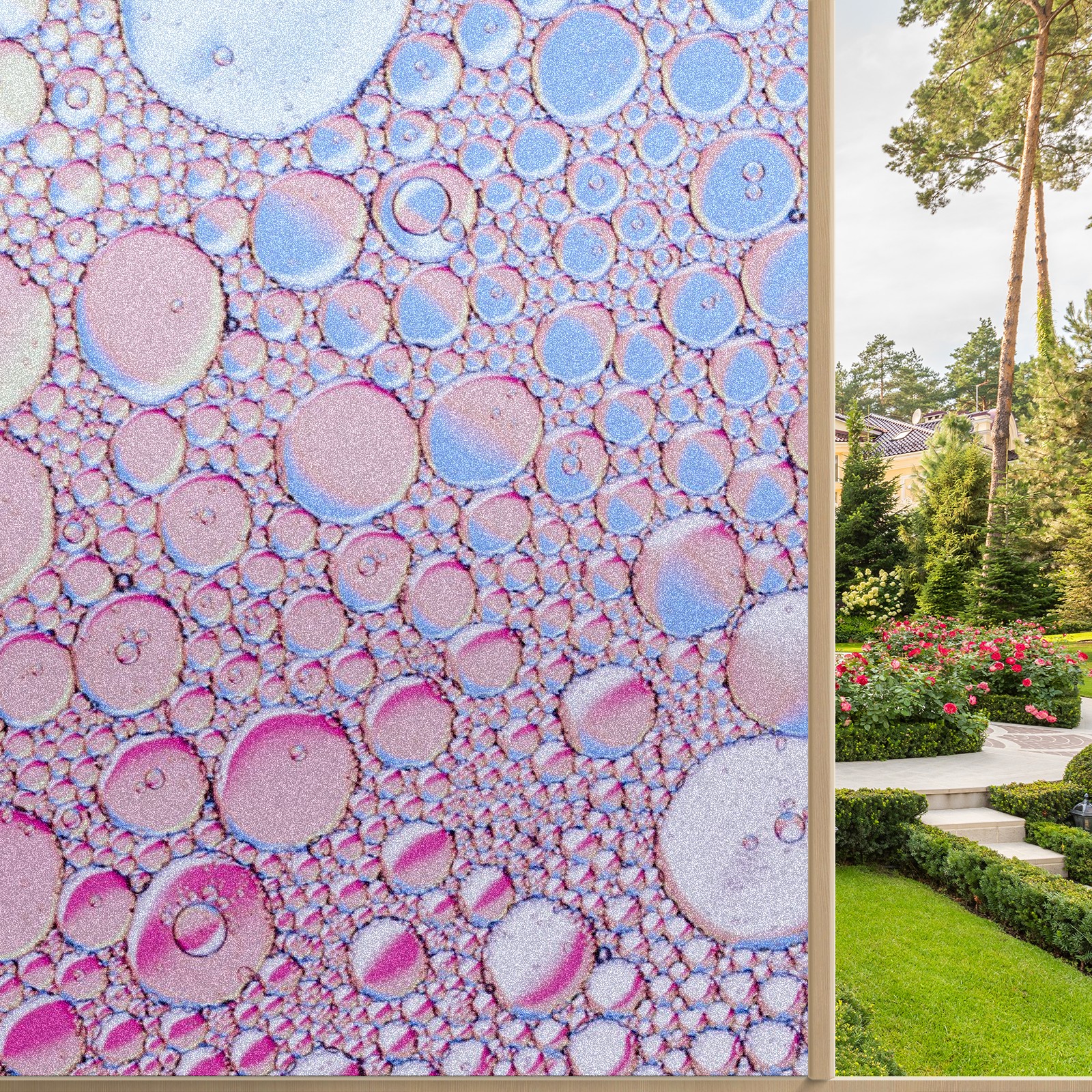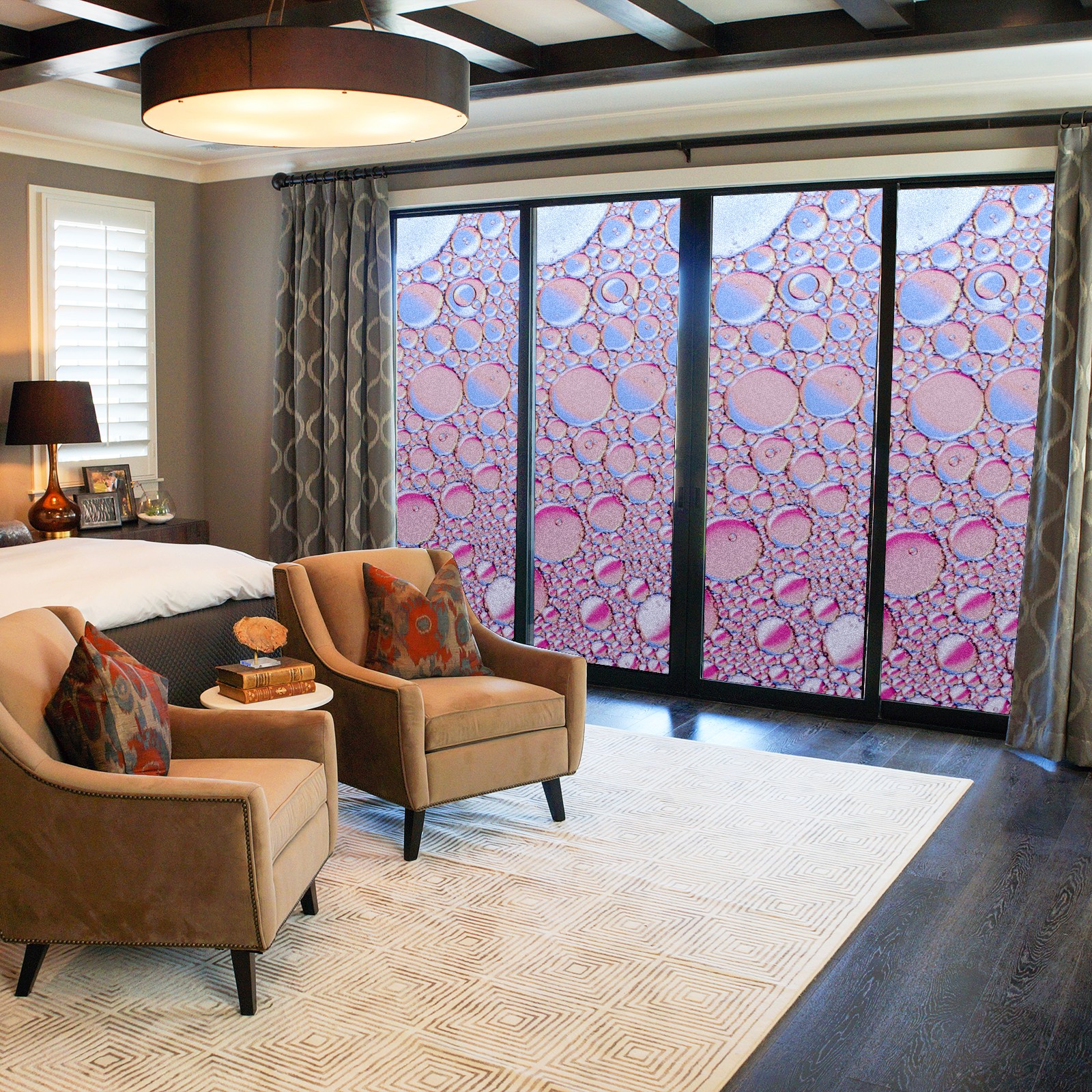 Static Cling Decorative Window Film Frosted Privacy Film Window Clings for Glass Windows No Glue Window Sticker for Bathroom Bedroom Office Pink Oil Stained Glass