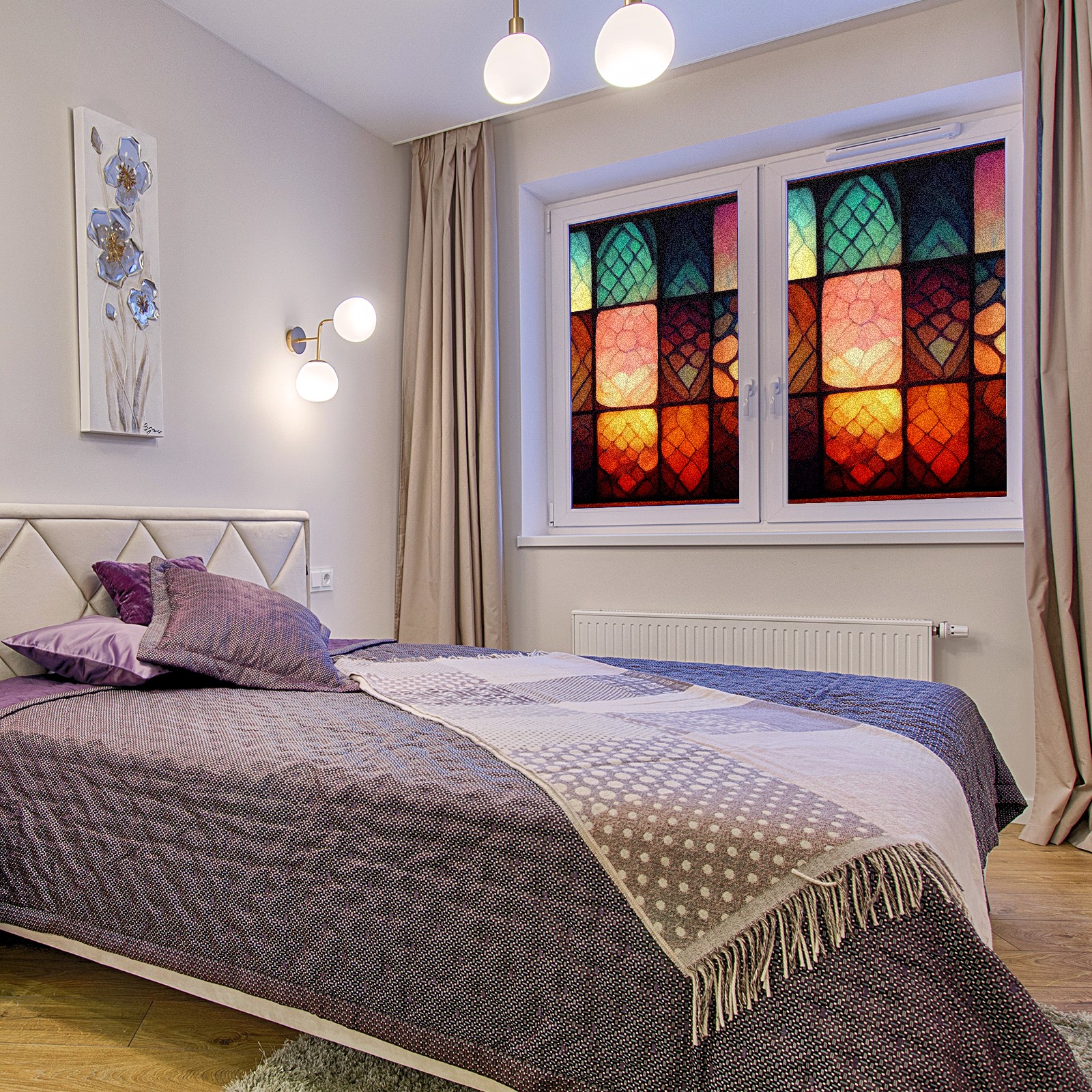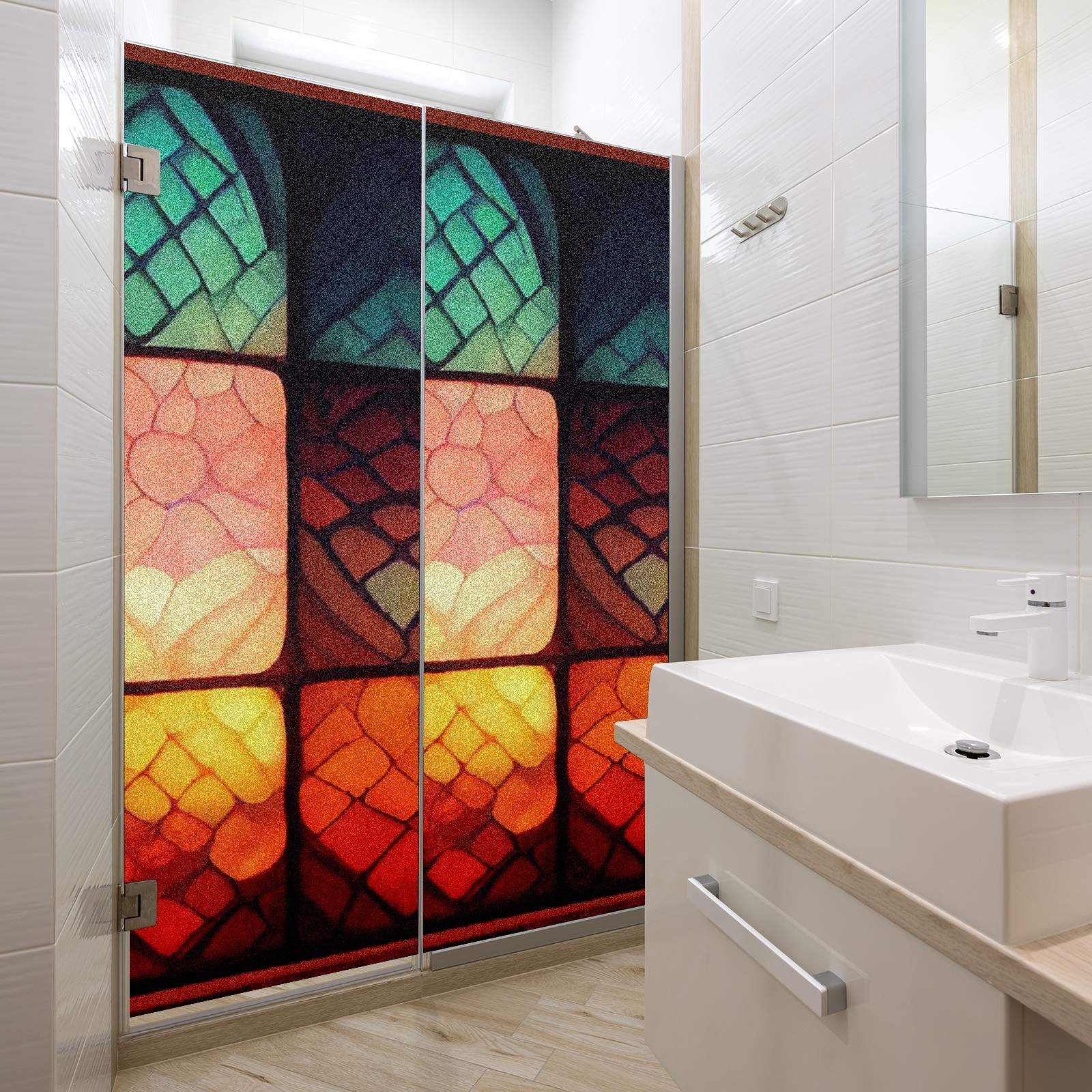Static Cling Decorative Window Film Frosted Privacy Film Window Clings for Glass Windows No Glue Window Sticker for Bathroom Bedroom Office Glowing Stained Glass