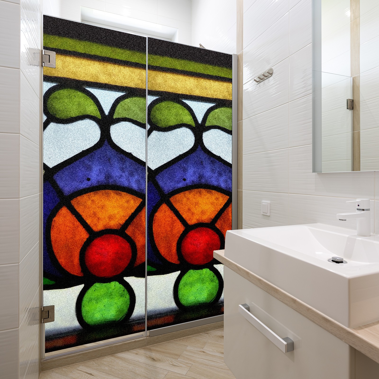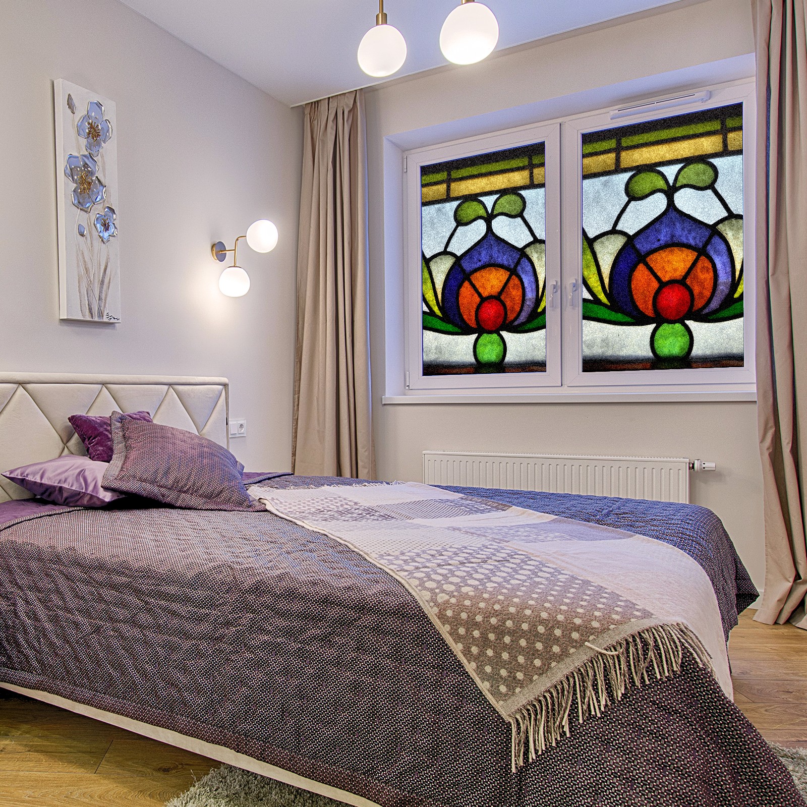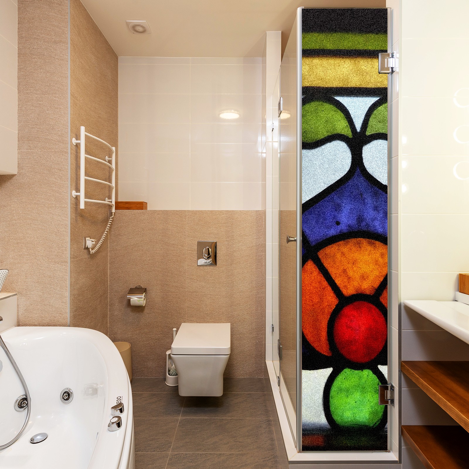 Static Cling Decorative Window Film Frosted Privacy Film Window Clings for Glass Windows No Glue Window Sticker for Bathroom Bedroom Office Colorful Stained Glass Windows