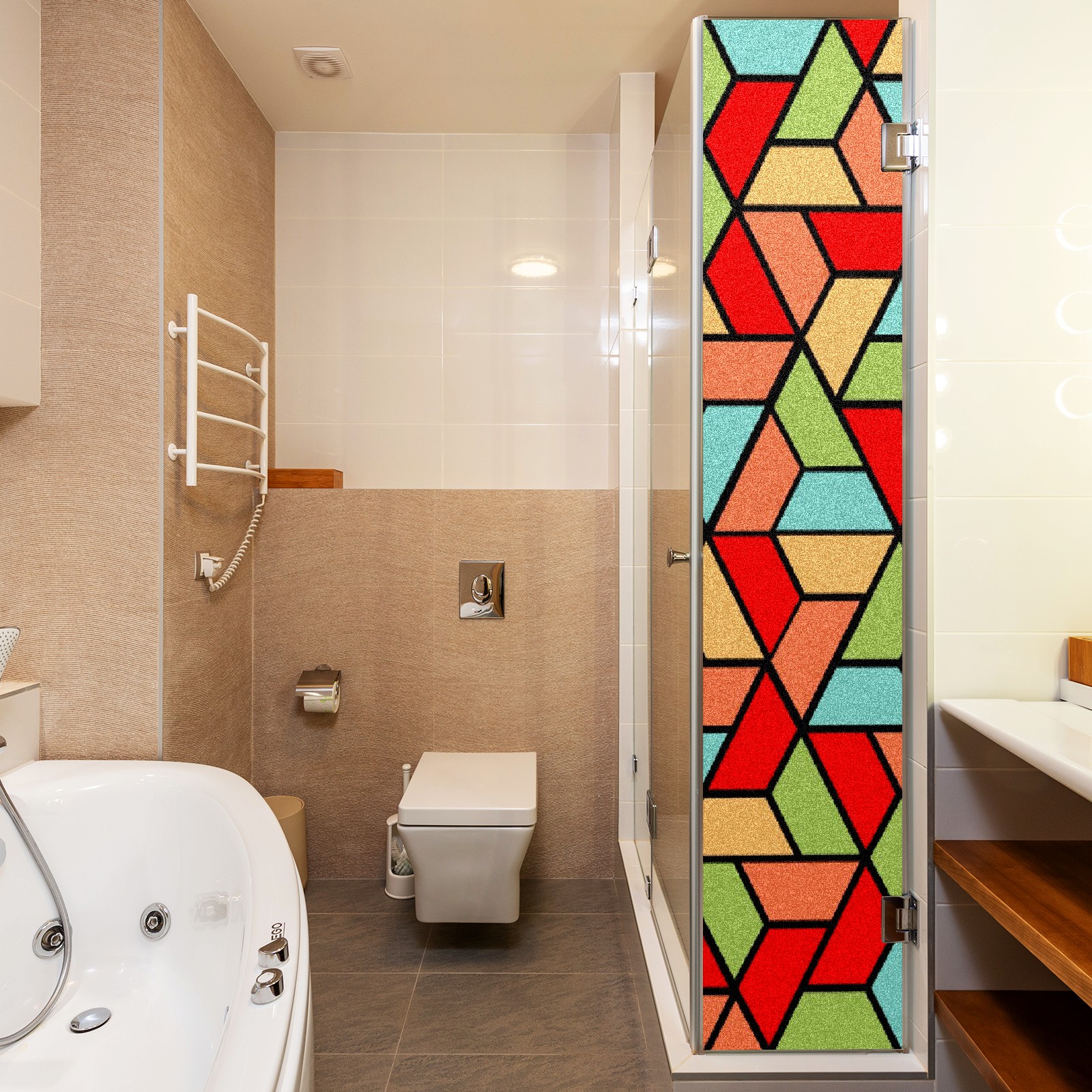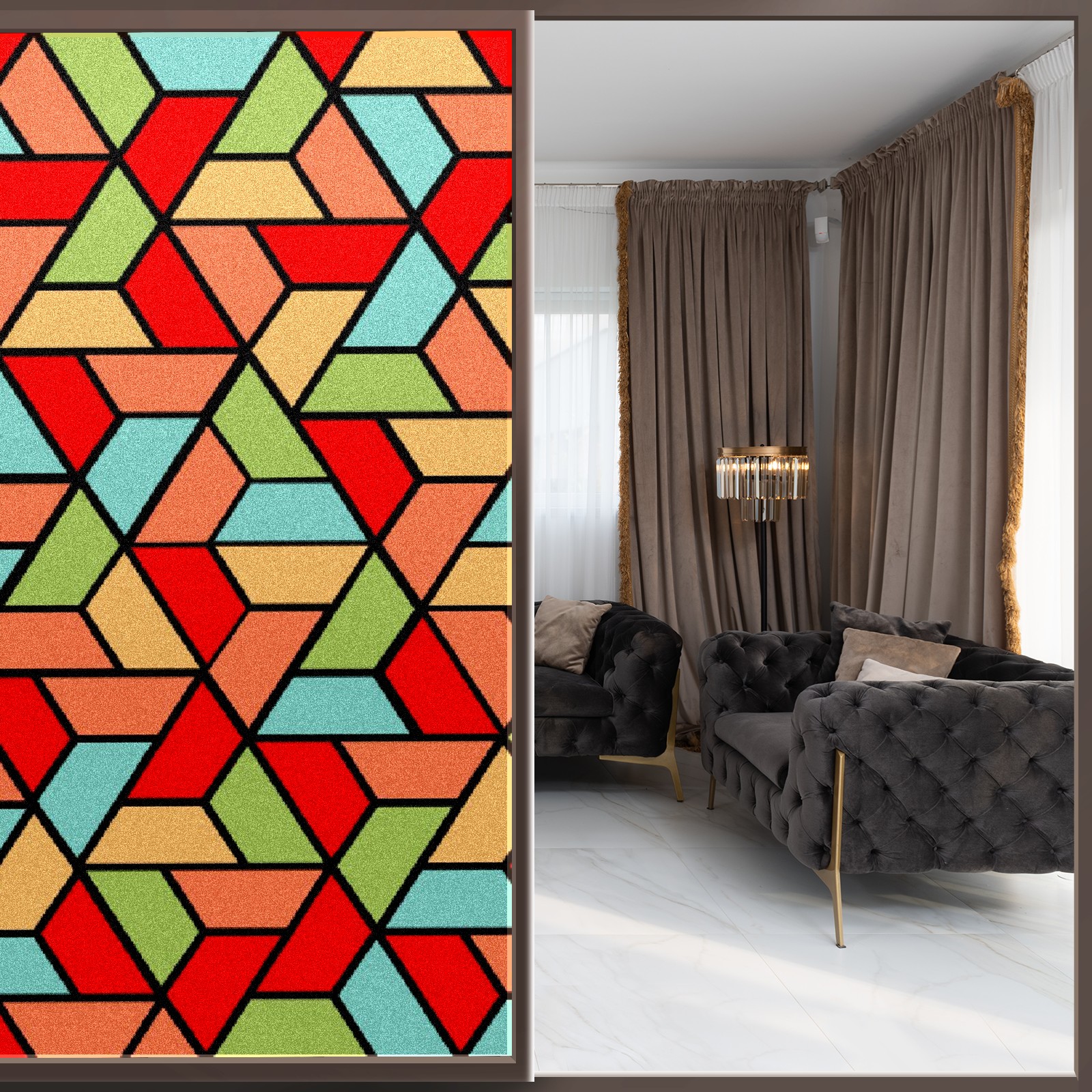 Static Cling Decorative Window Film Frosted Privacy Film Window Clings for Glass Windows No Glue Window Sticker for Bathroom Bedroom Office Stained Glass Geometry Pattern