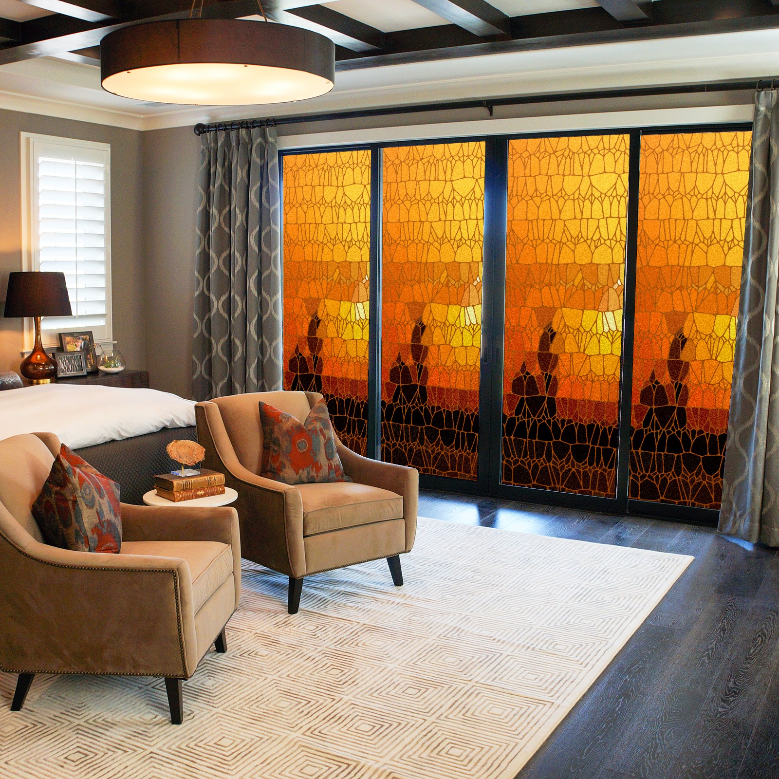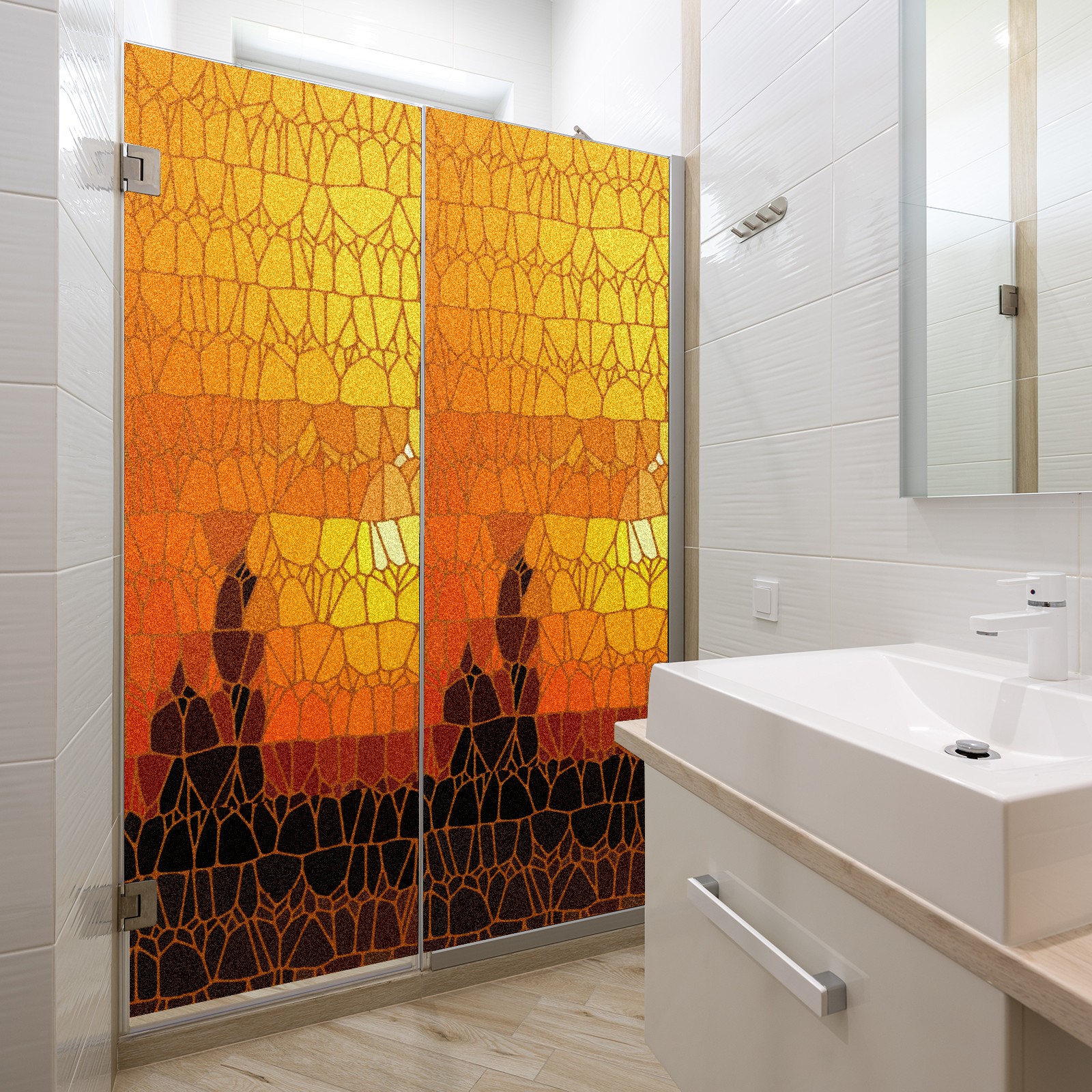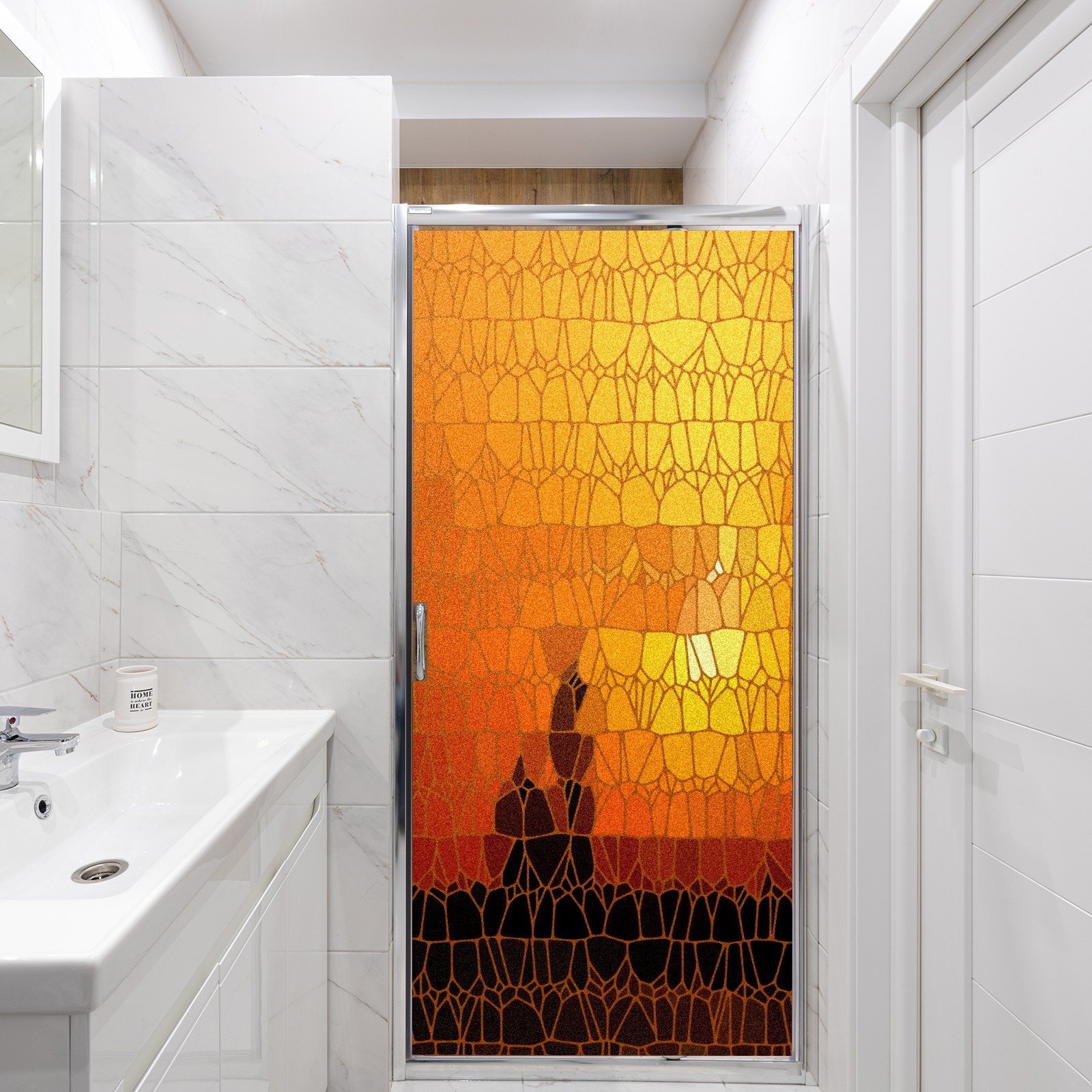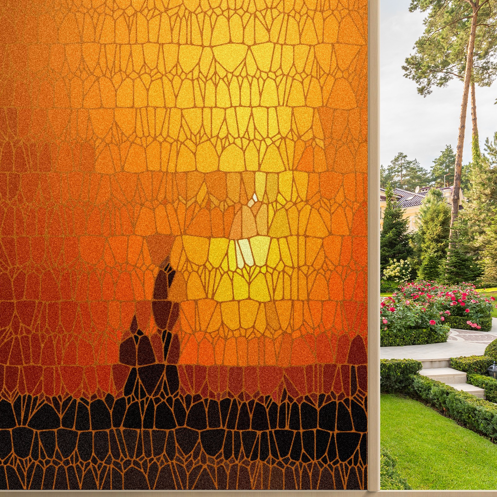 Static Cling Decorative Window Film Frosted Privacy Film Window Clings for Glass Windows No Glue Window Sticker for Bathroom Bedroom Office Stained Glass Sunset
