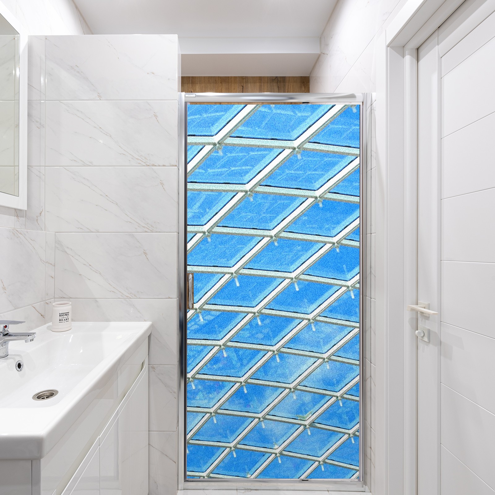 Static Cling Decorative Window Film Frosted Privacy Film Window Clings for Glass Windows No Glue Window Sticker for Bathroom Bedroom Office Blue Sky Stained Glass