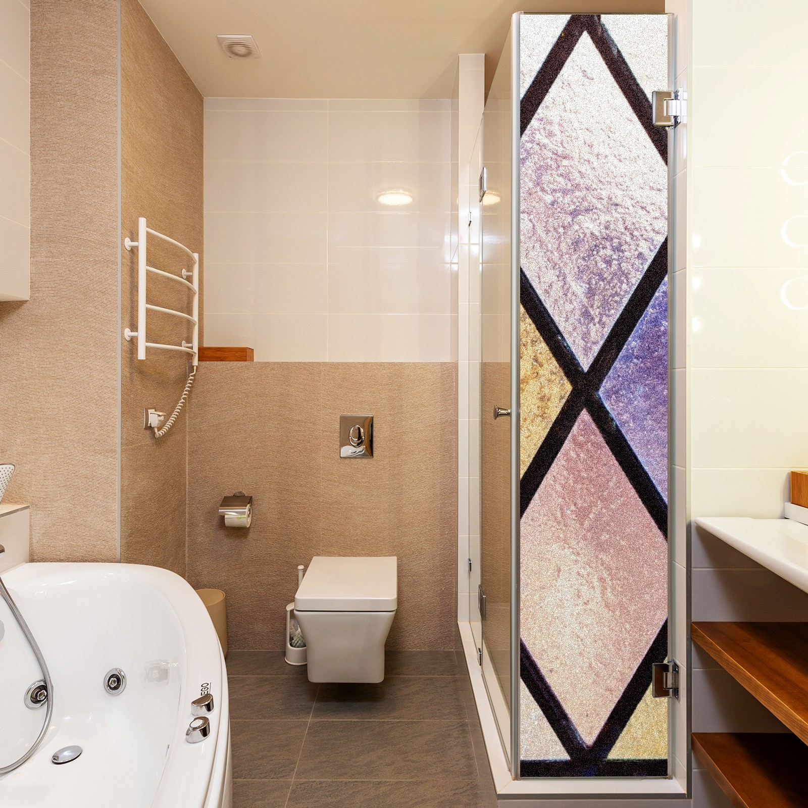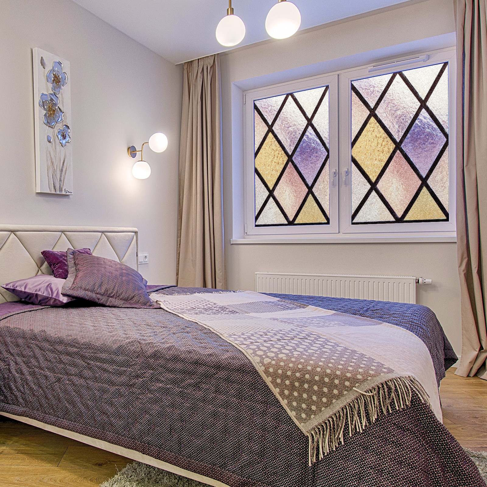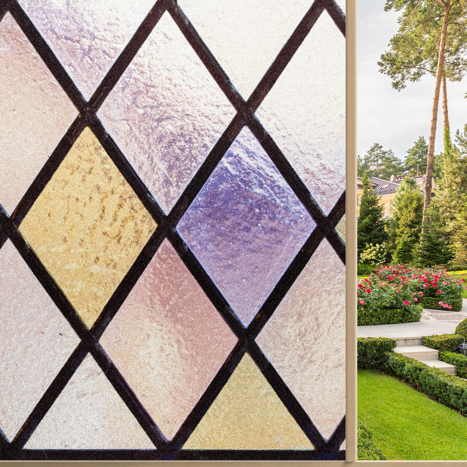 Static Cling Decorative Window Film Frosted Privacy Film Window Clings for Glass Windows No Glue Window Sticker for Bathroom Bedroom Office Purple Stained Glass